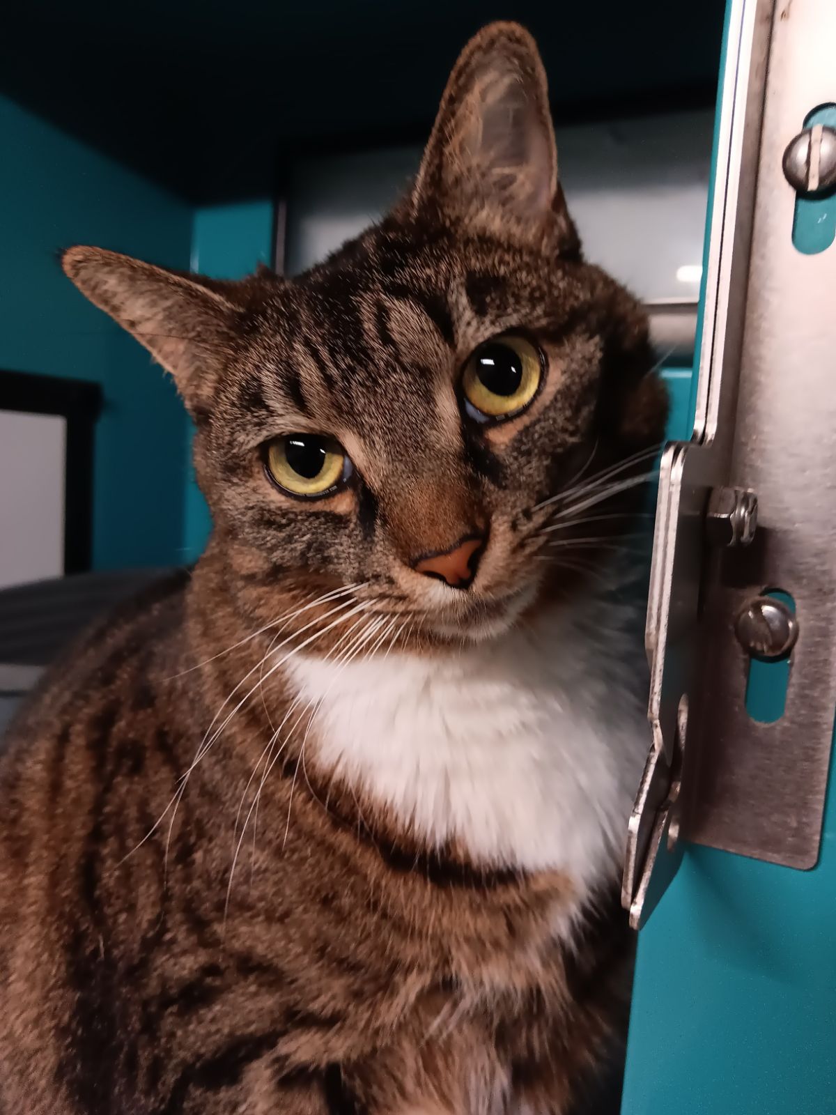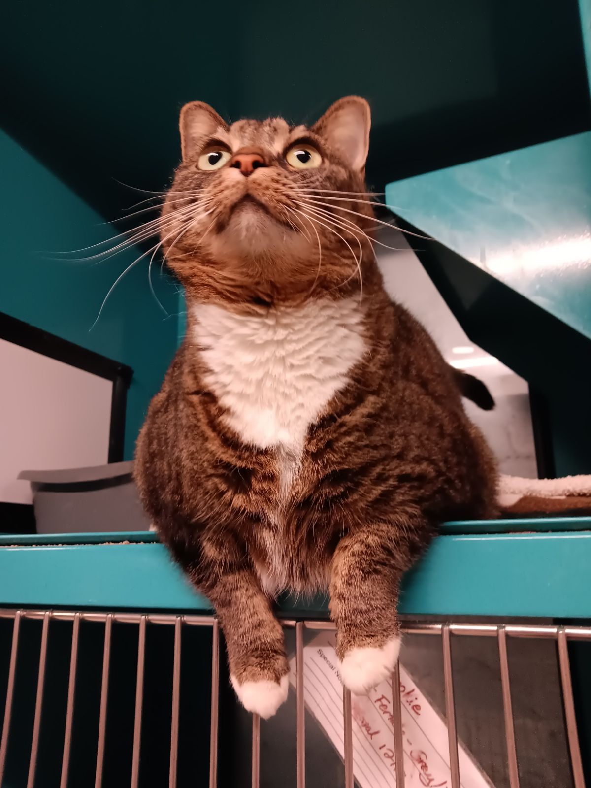 Gwen is the biggest sweetheart we know! She absolutely loves some good pets and has big purrs to show it. She also enjoys some quality brushies. When Gwen wants your attention, she'll tell you about it with the sweetest little meow! We are still getting to know the more playful side of her personality, but so far we know that she loves hunting a mouse toy!