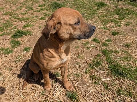 Dog friendly, but will guard her food bowl from others in the kennels next to her.