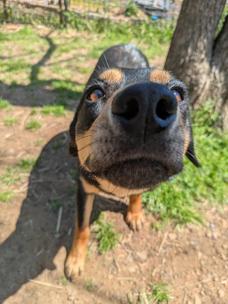 Extremely sweet, but can be a little timid in person when outside of the kennel. It doesn't take him long though and he comes around !