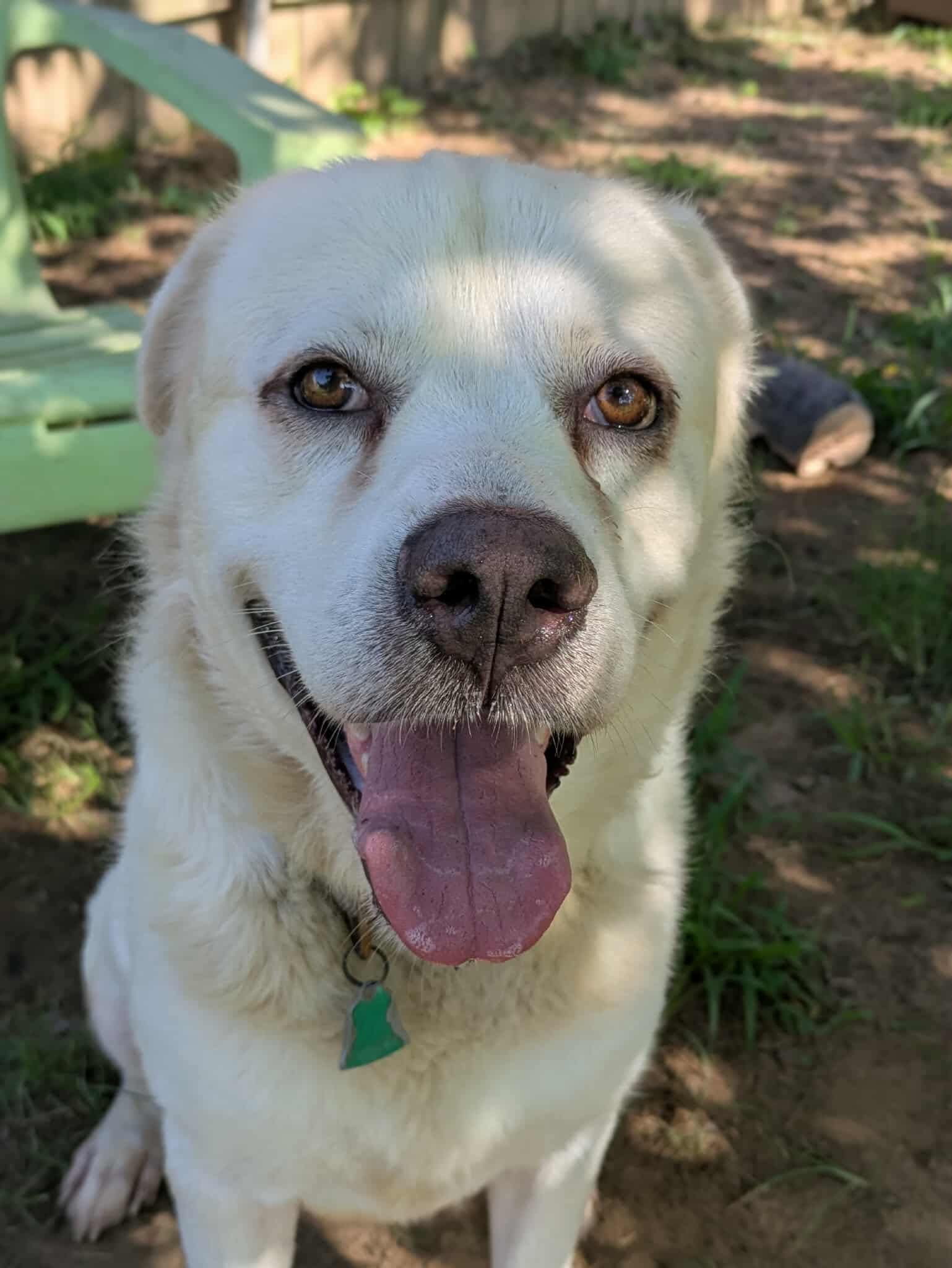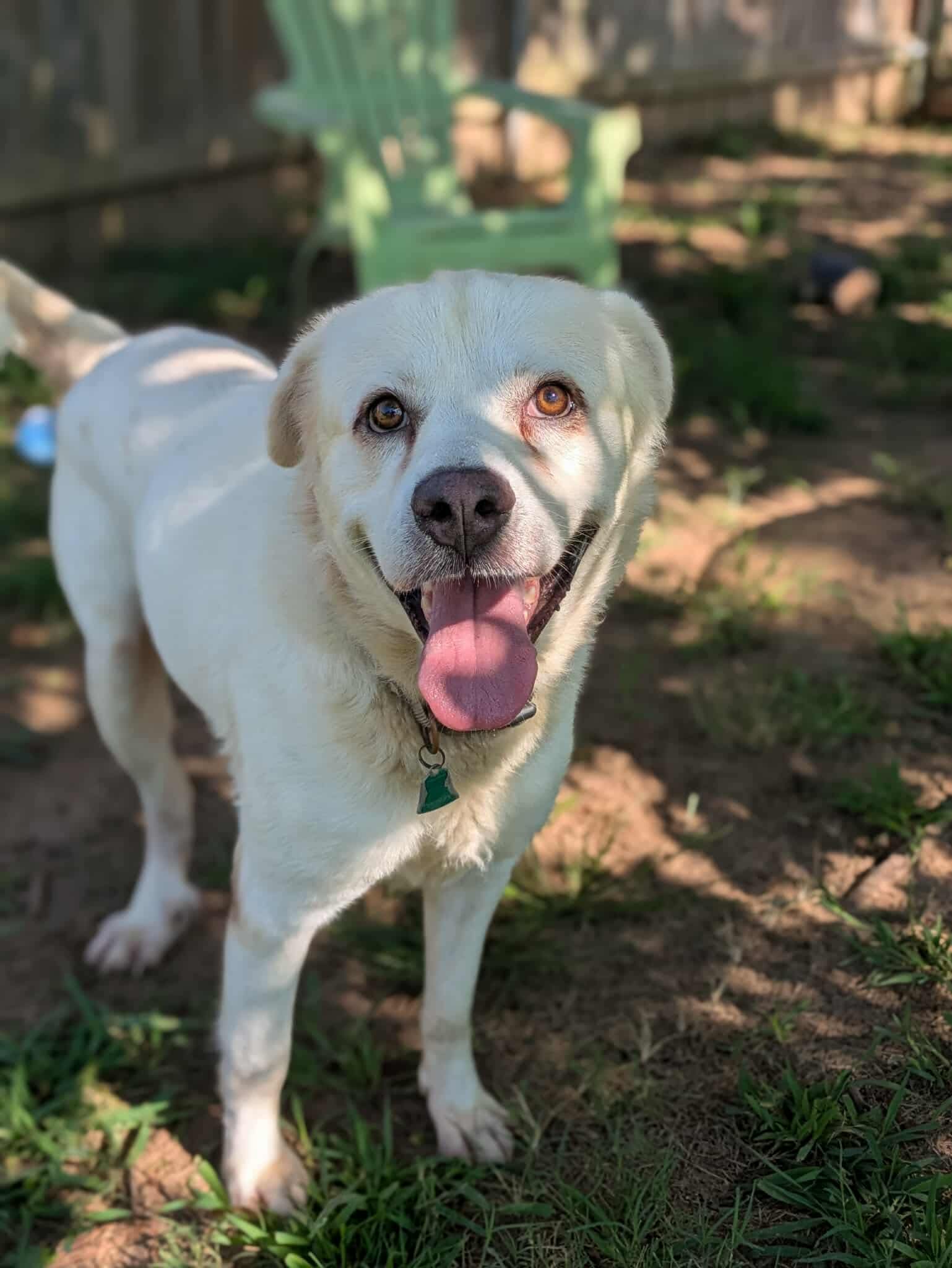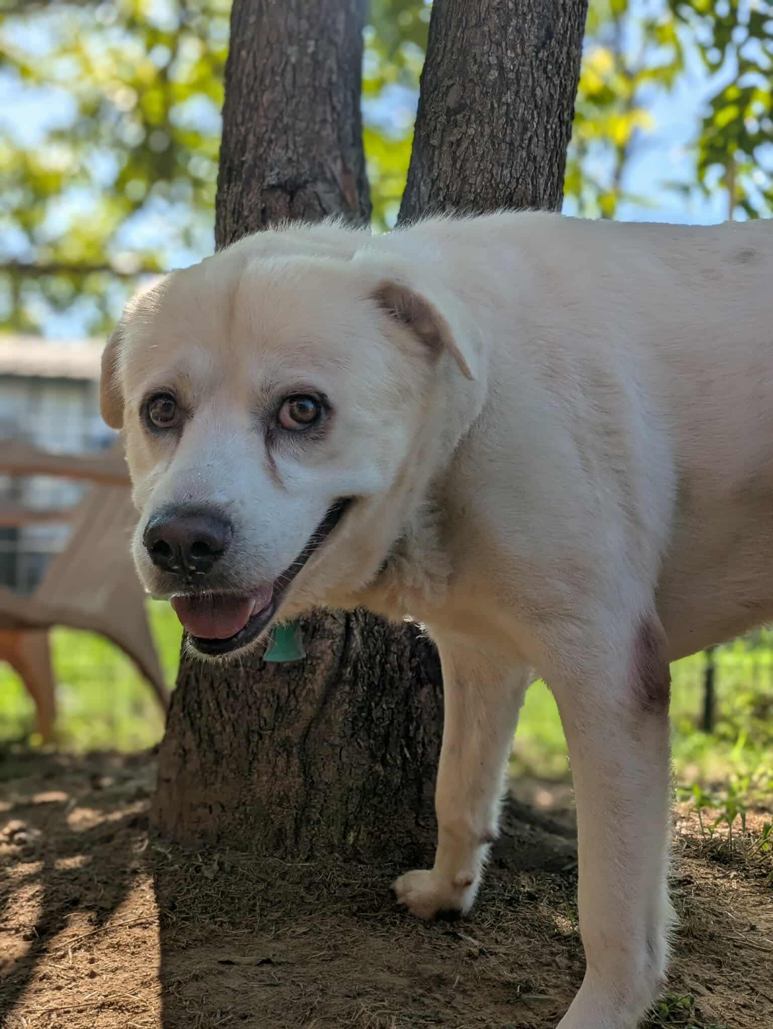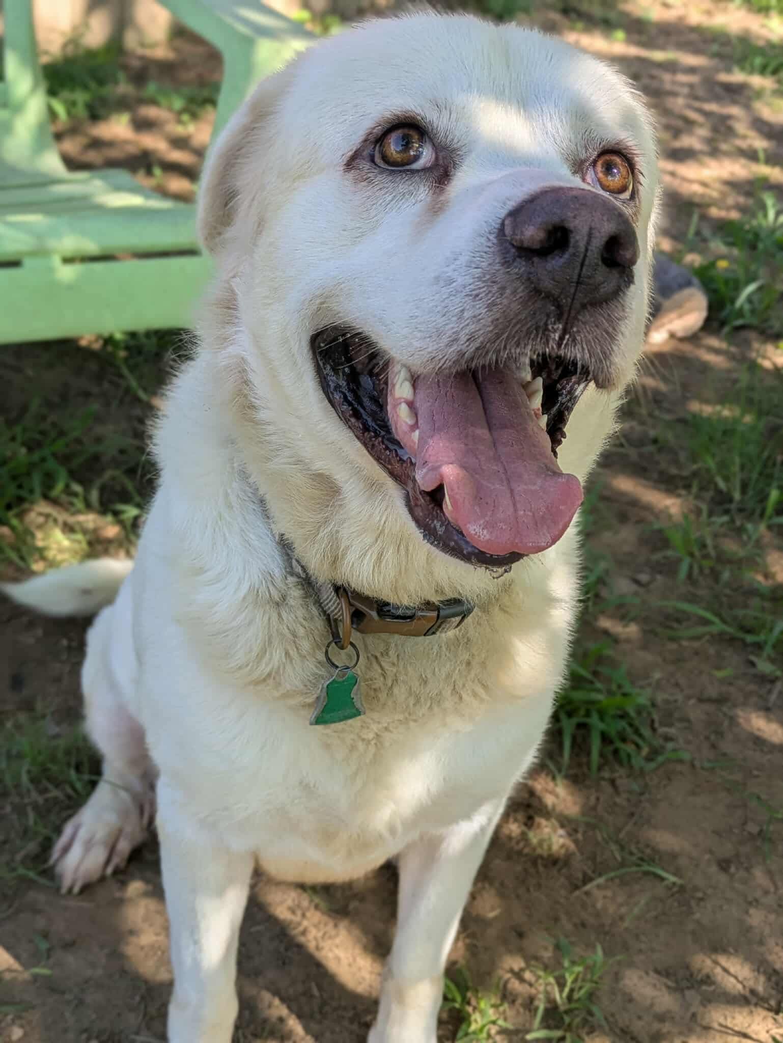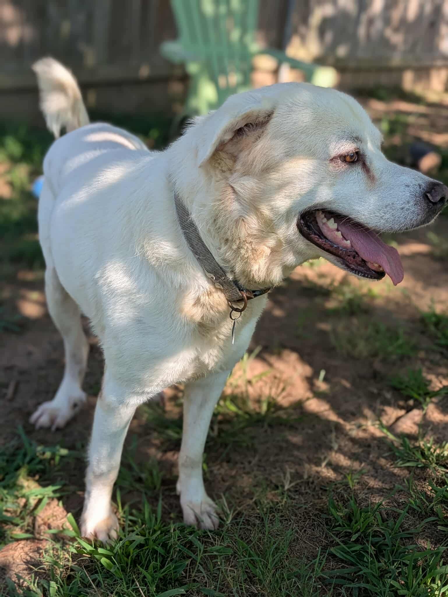 Definitely a Great Pyrenees mix. He has a thick coat of fur, and a SWEET personality!