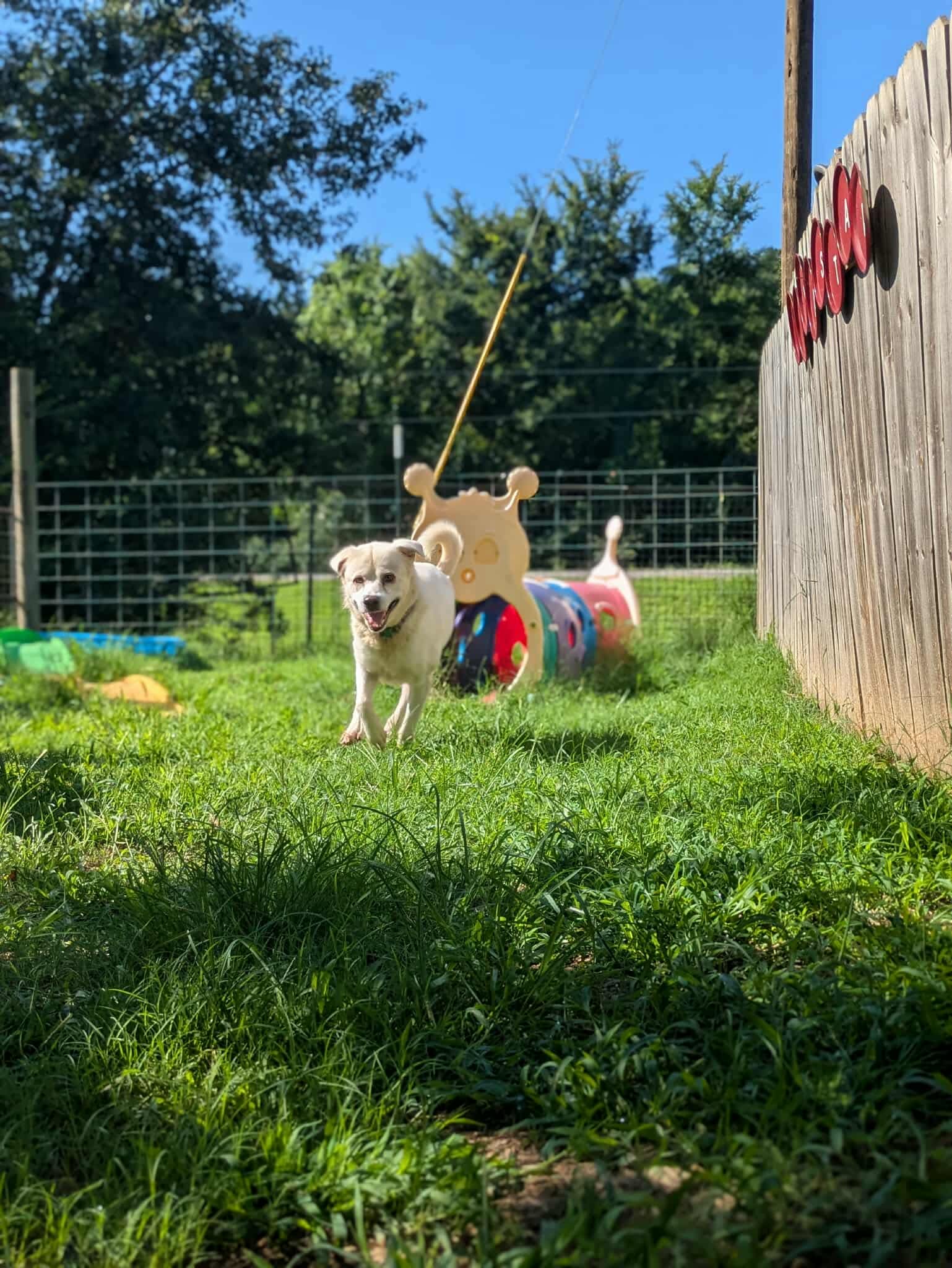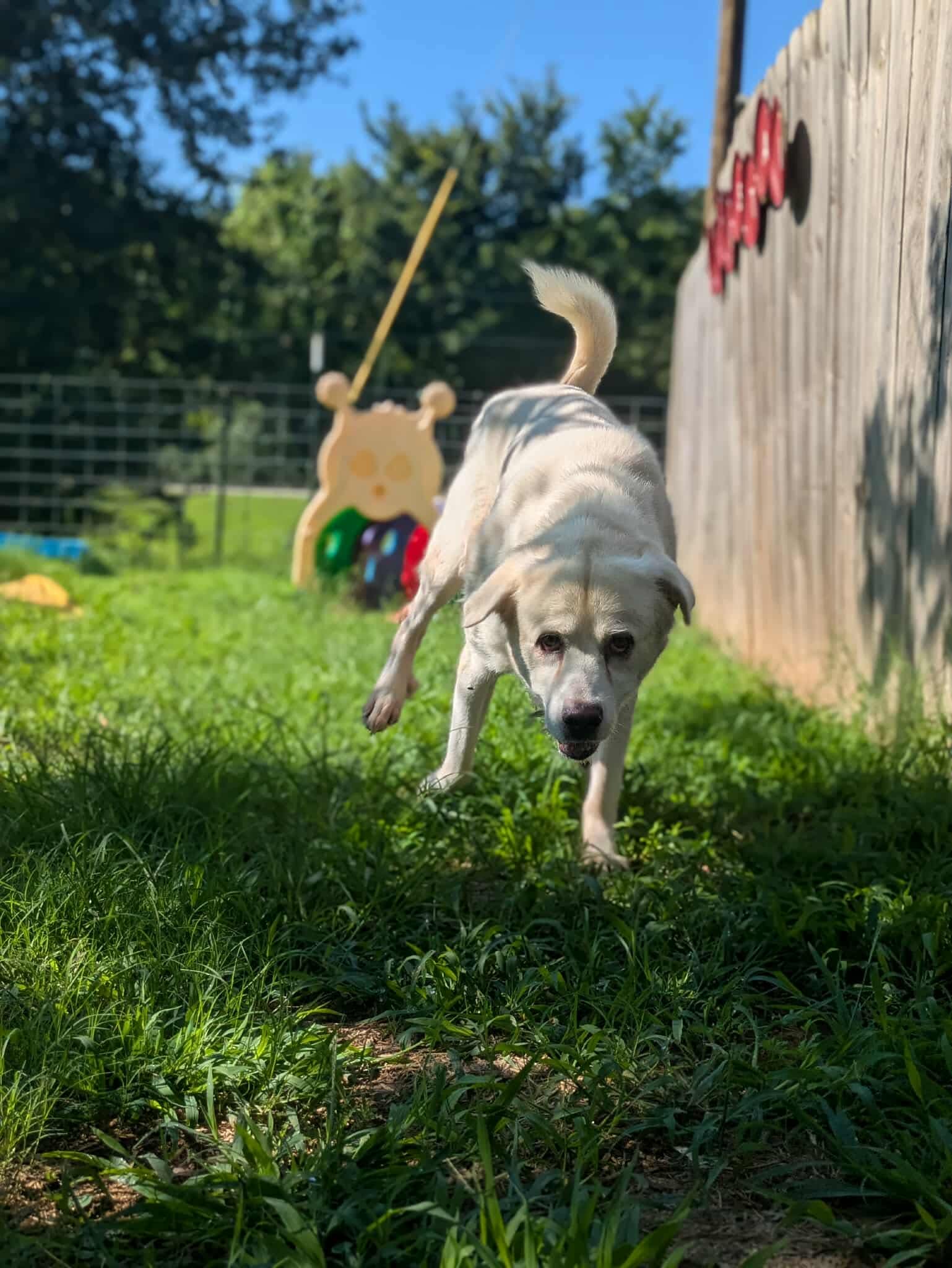 Super outgoing and friendly. He didn't last long before melting into a puddle in the play yard. He walks well on leash, and is gentle!