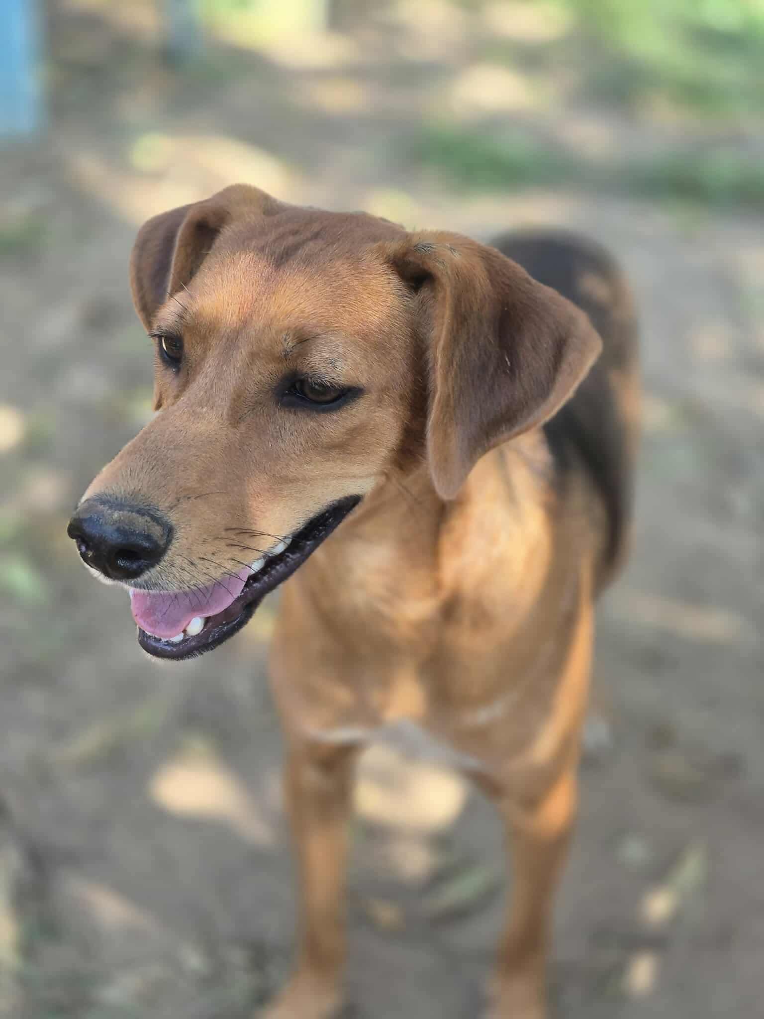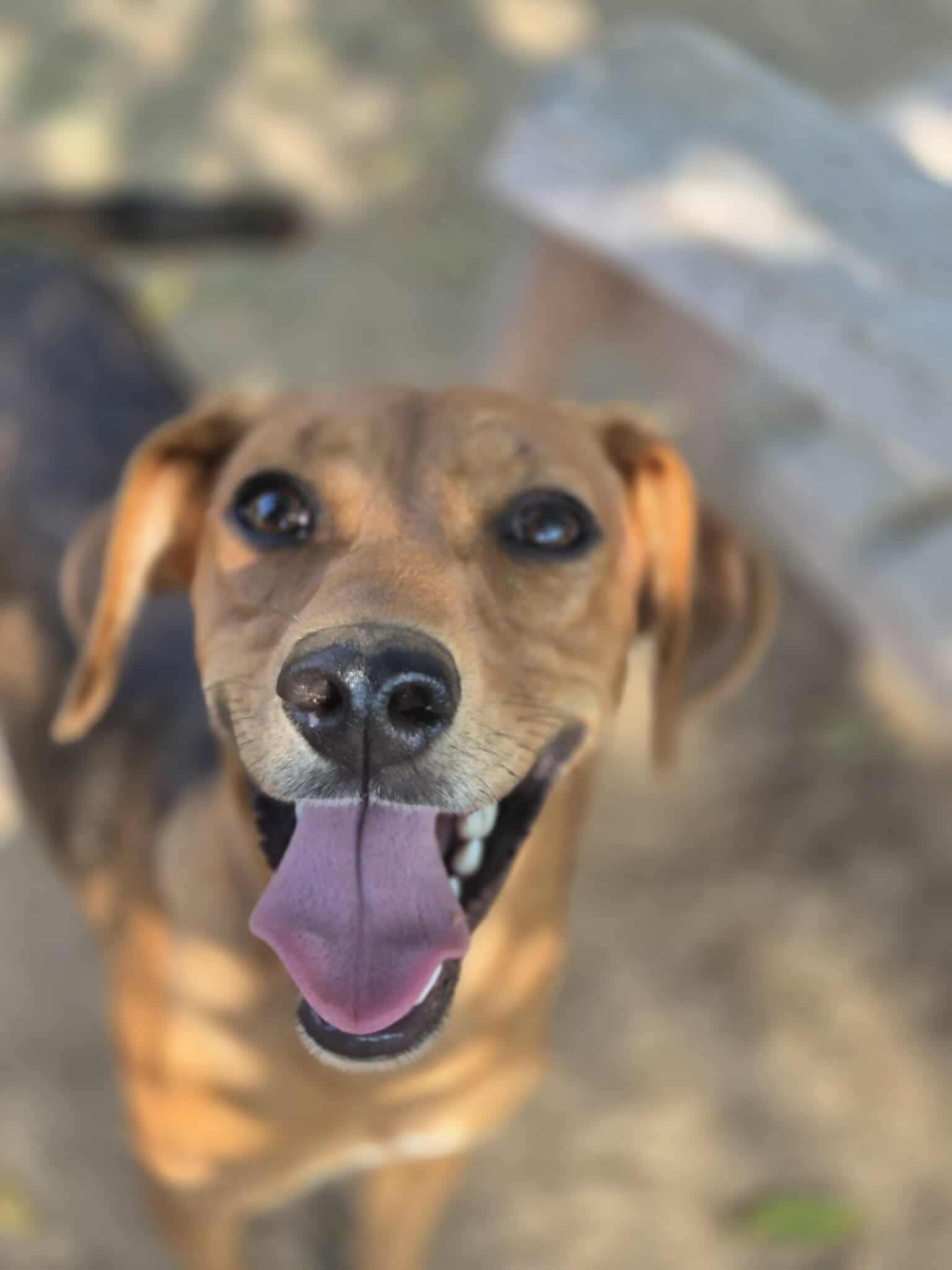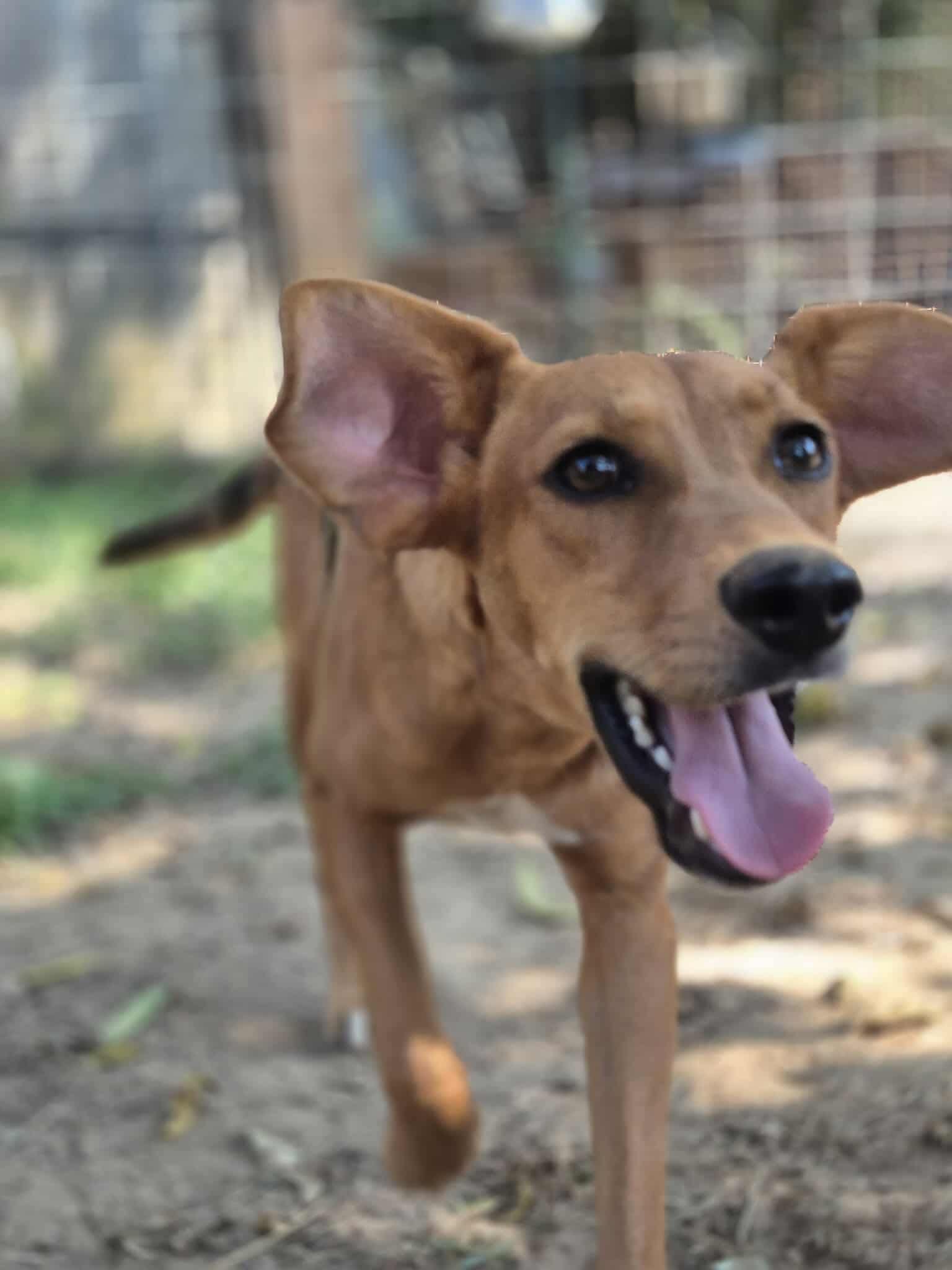 Super outgoing and friendly! Shes got puppy energy, and a puppy heart! She just loves everyone! Shs loved meeting new dogs through the fence, and loved following everyone that walked by her! I think she would do good in a home with kiddos around 8-14 years old.