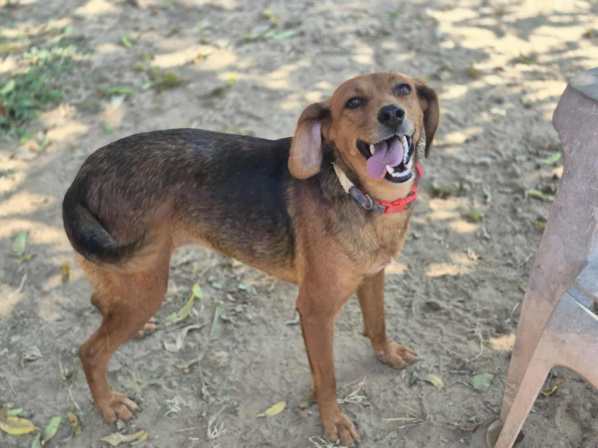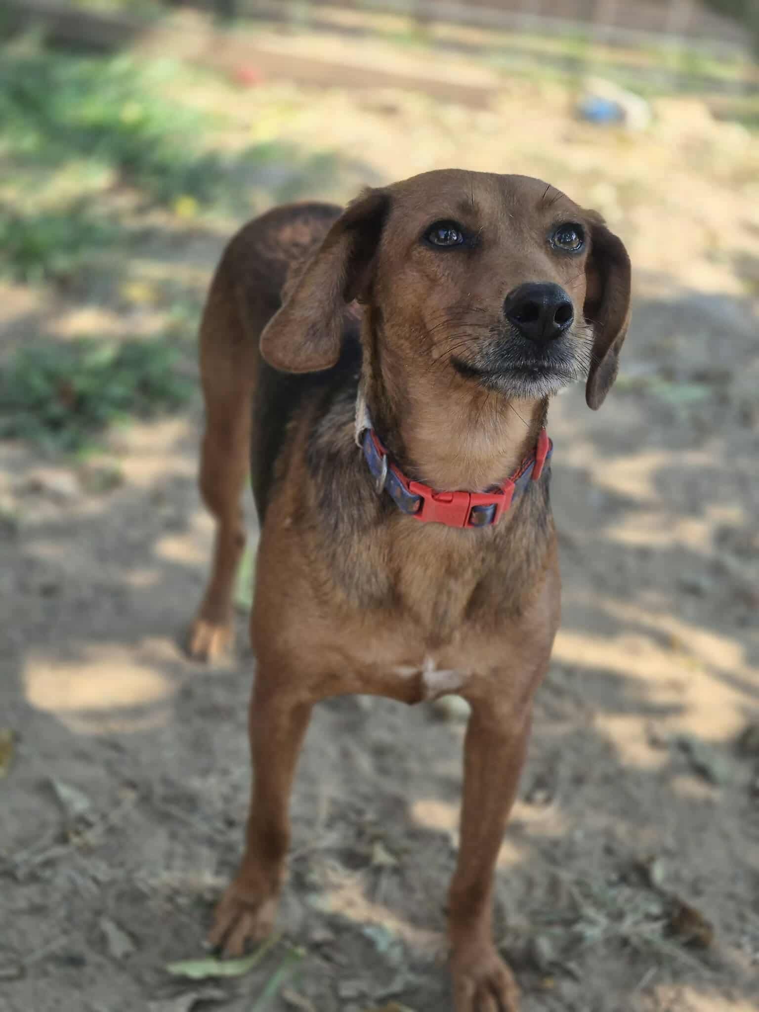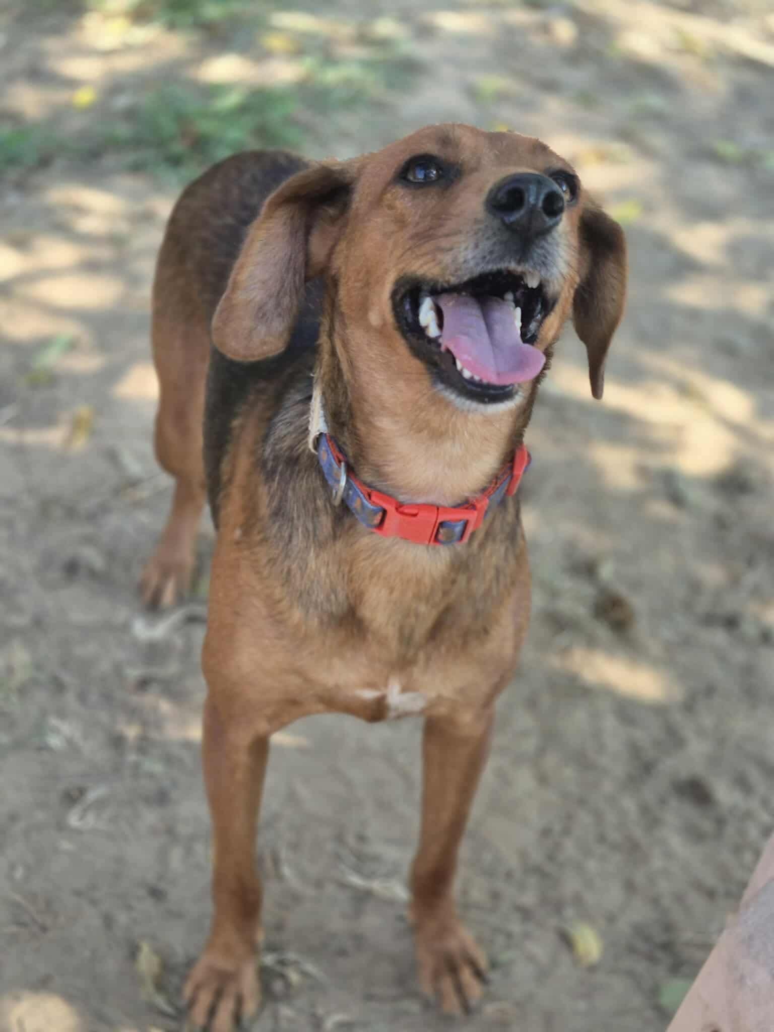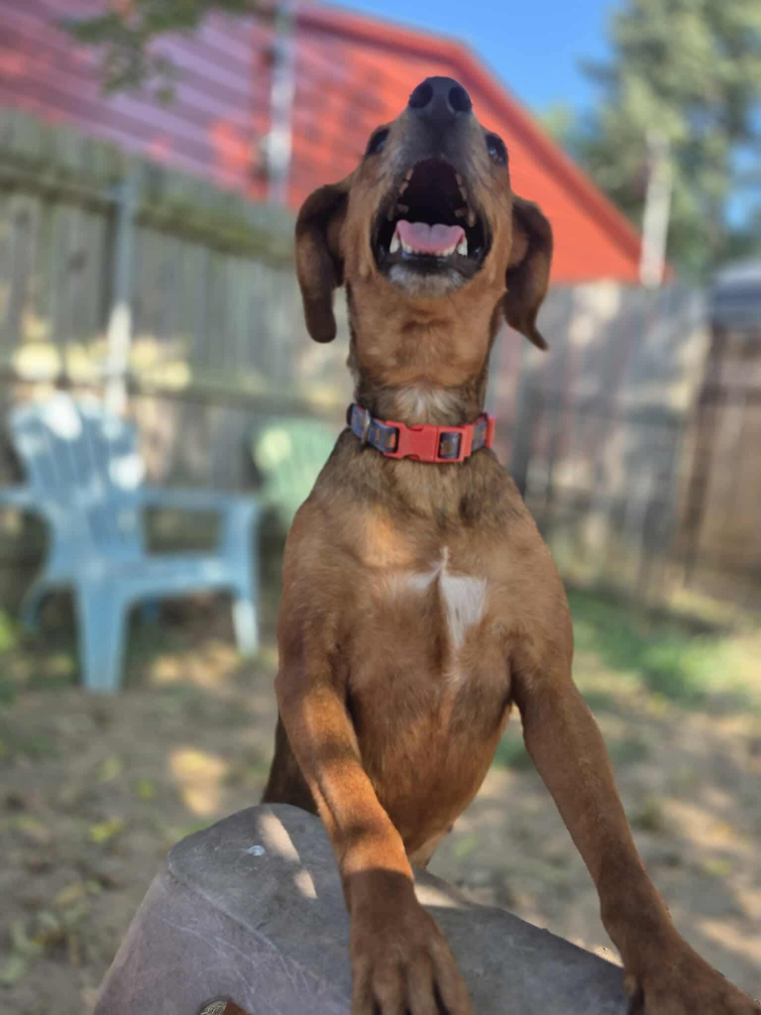 Super shy at first, but when I got her alone in the play yard, she just wanted love. She jumped up on my lap a couple times, then stole my chair 😂 she gave me lots of kisses, and was HIGHLY motivated with food! She a little unsure, but overall is a very sweet girl!