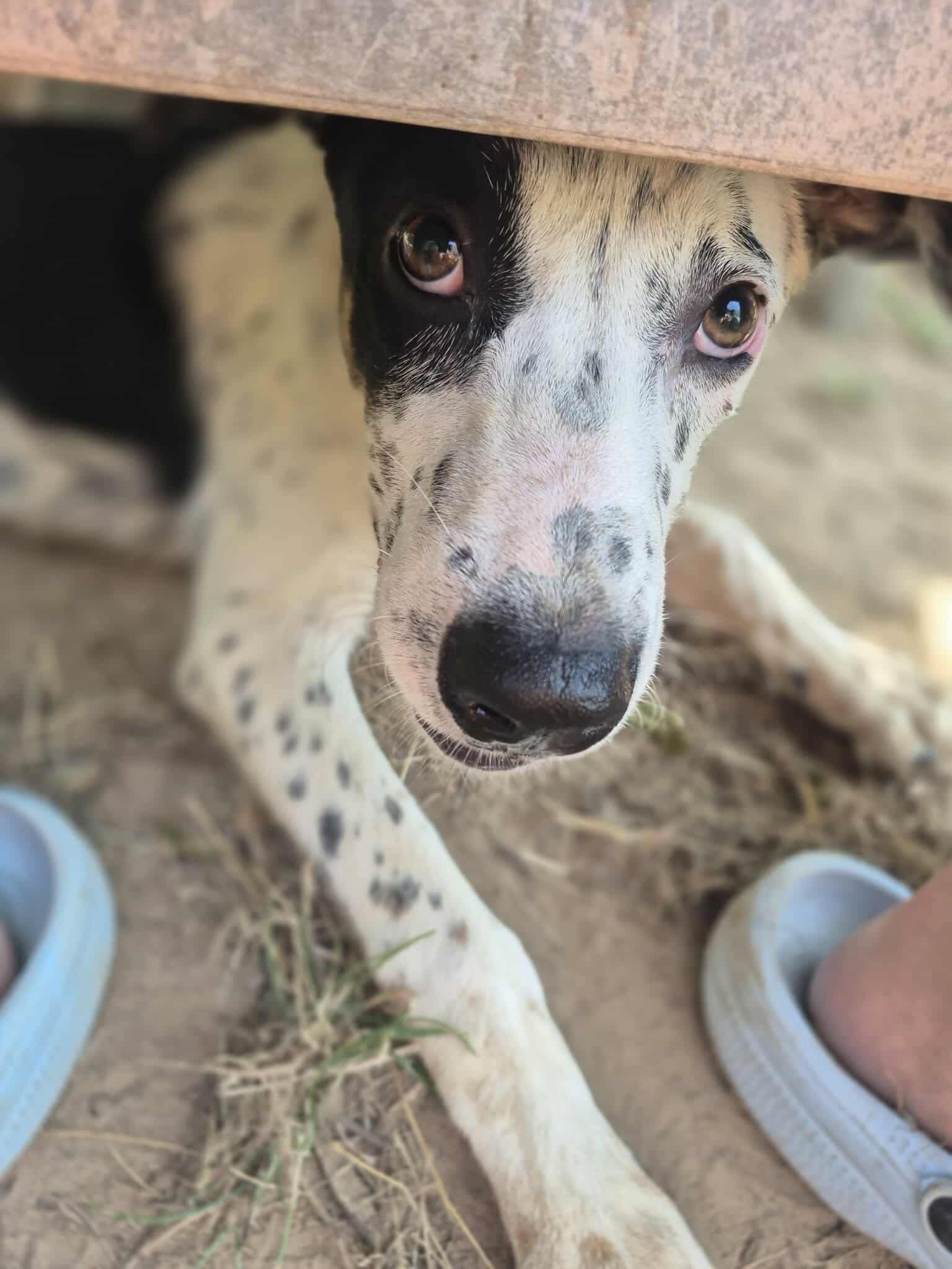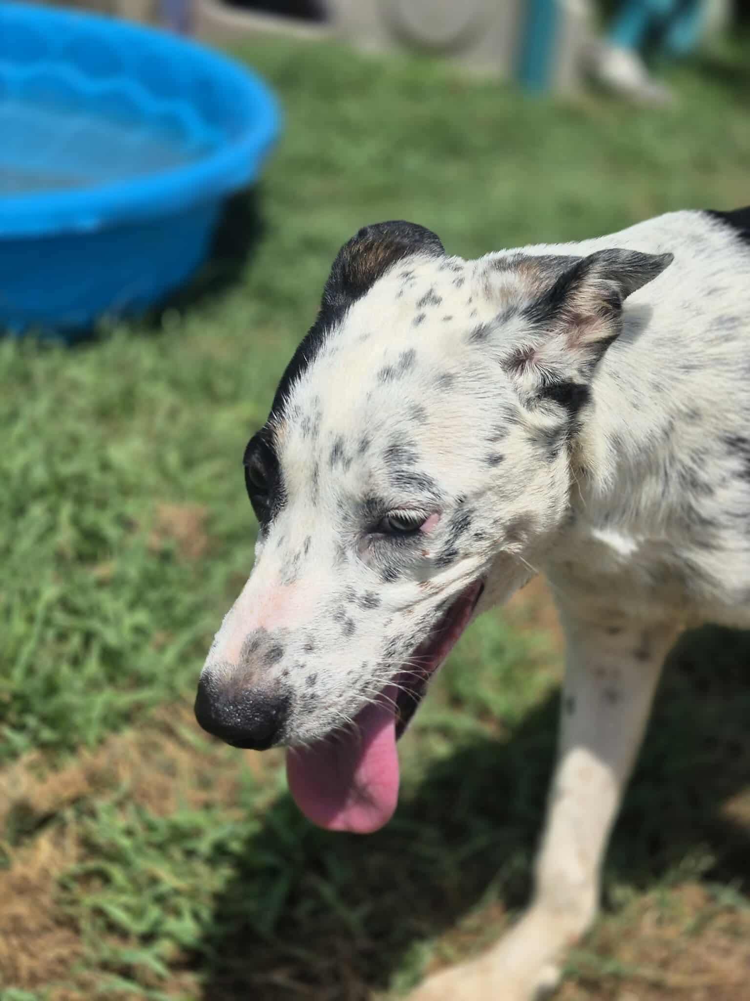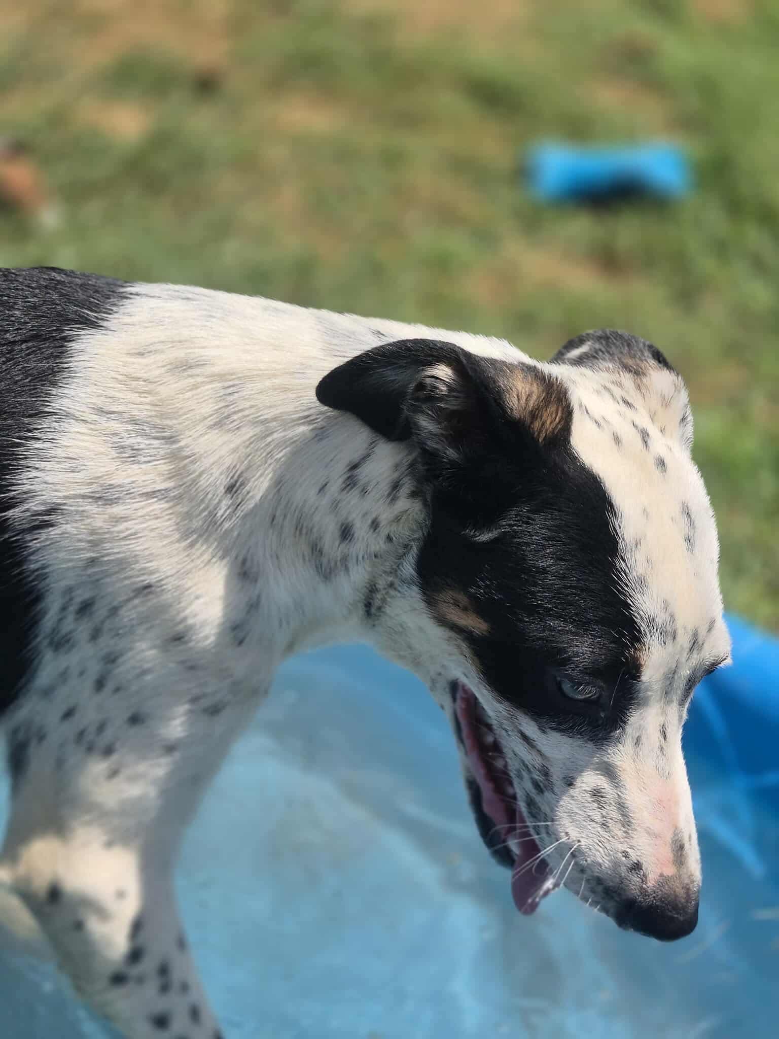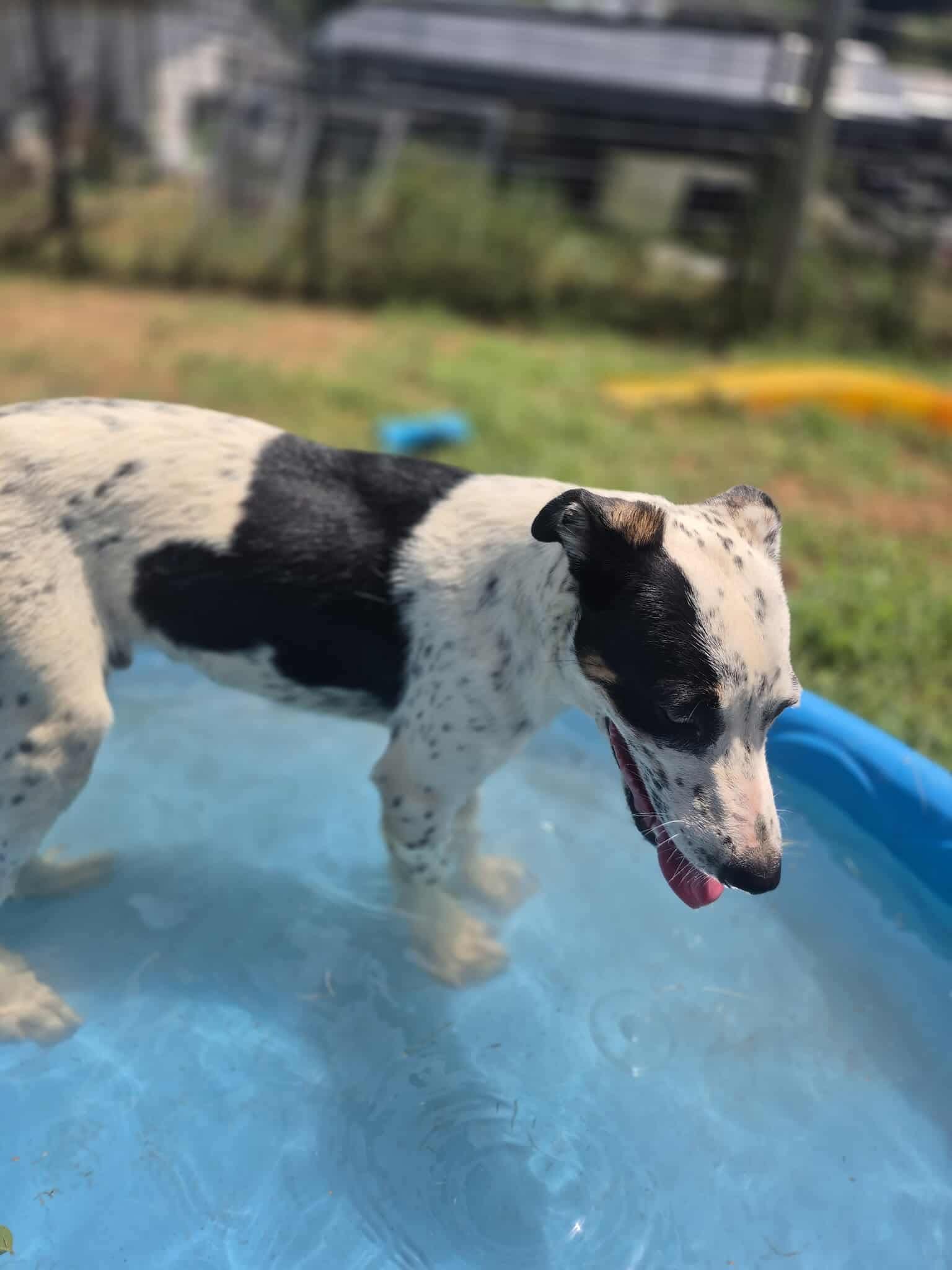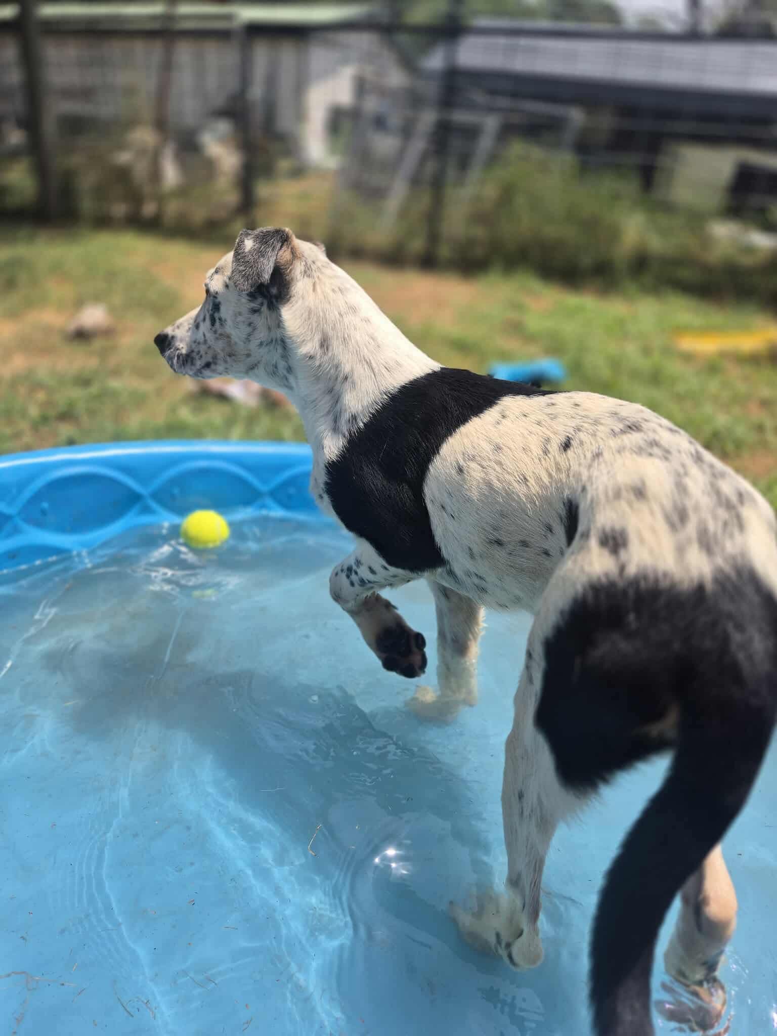 Shy at first but when you show him love, he's all over you! I was able to convince him to get into the water for the first time, and he actually liked it after giving it a try!