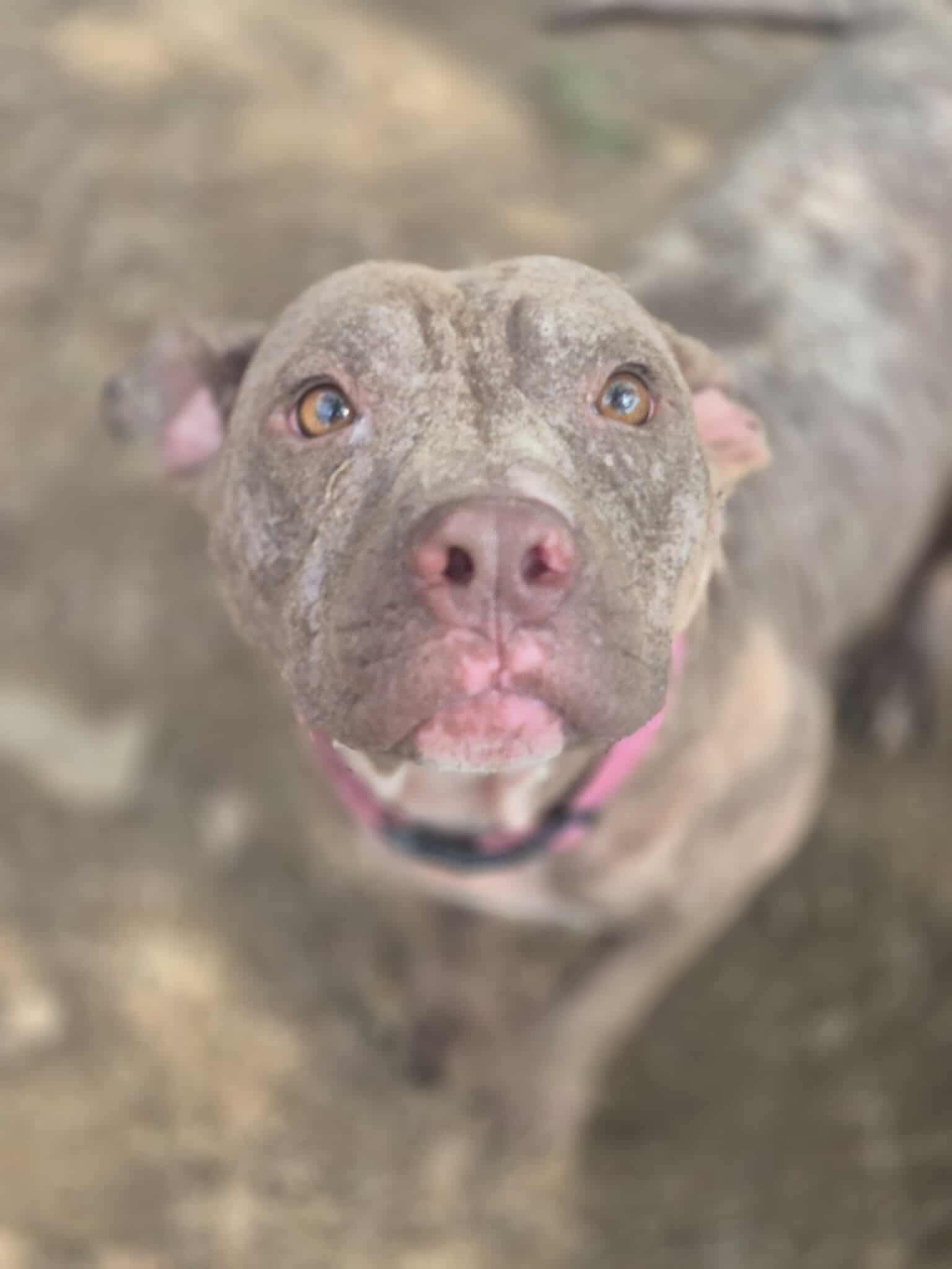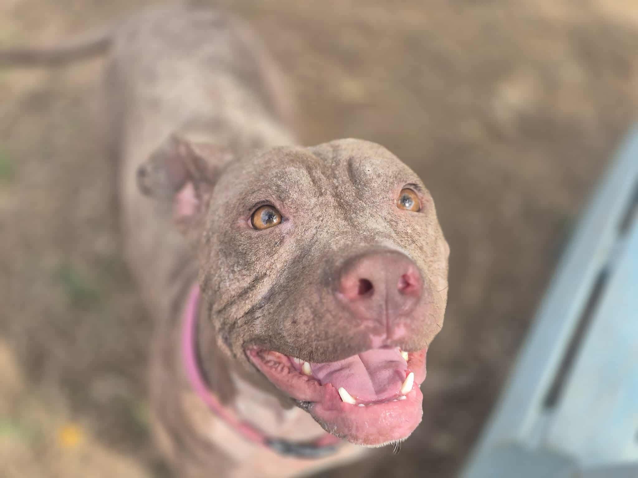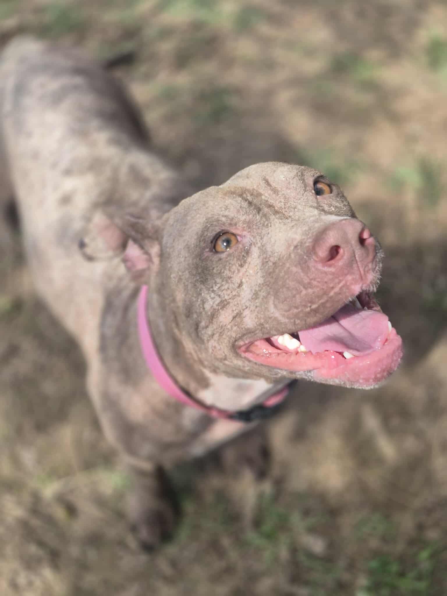 She is still scared, but has come so so far!! She is walking on a leash by herself now, taking treats from people, and giving as many kisses as she can!