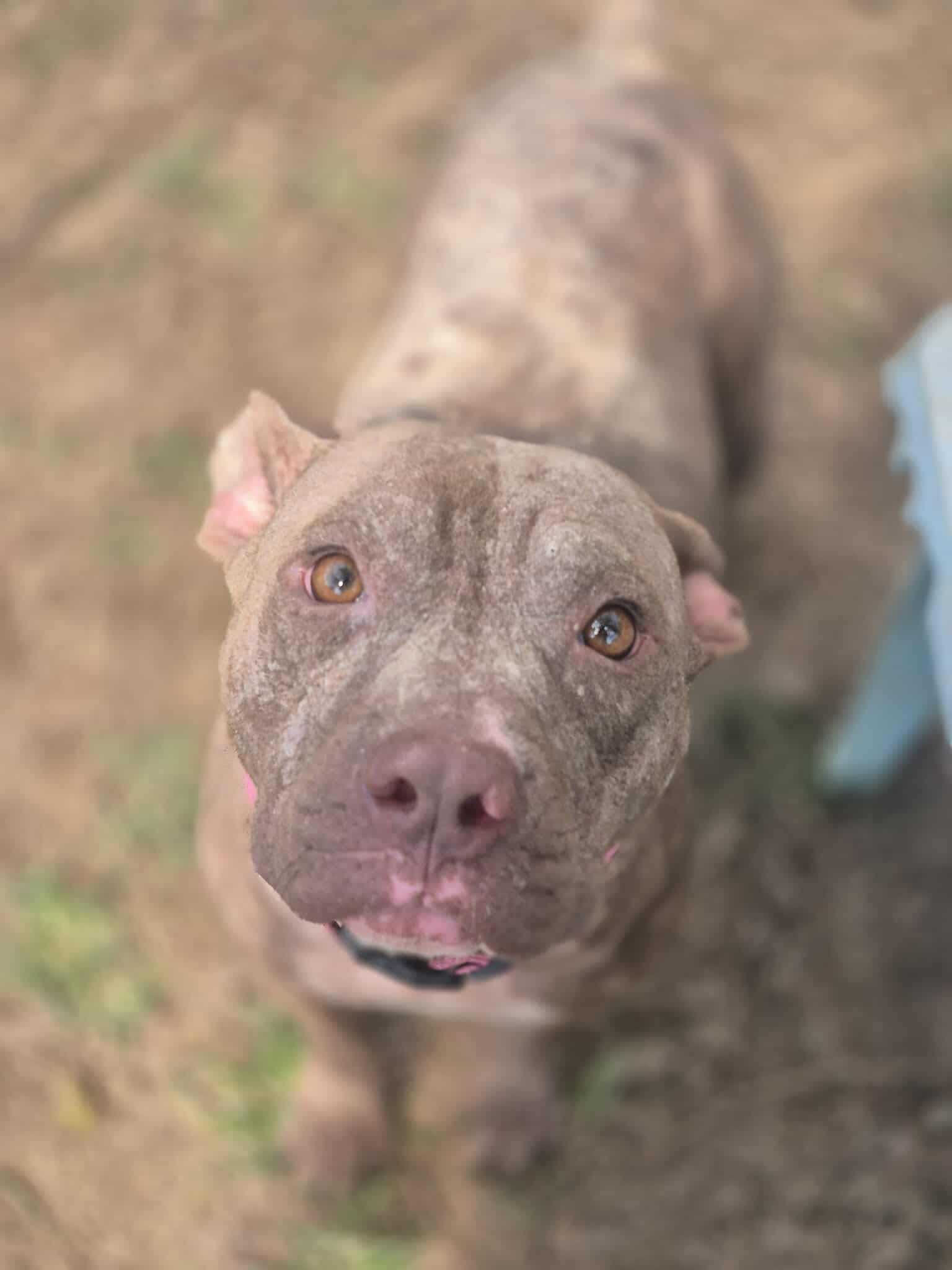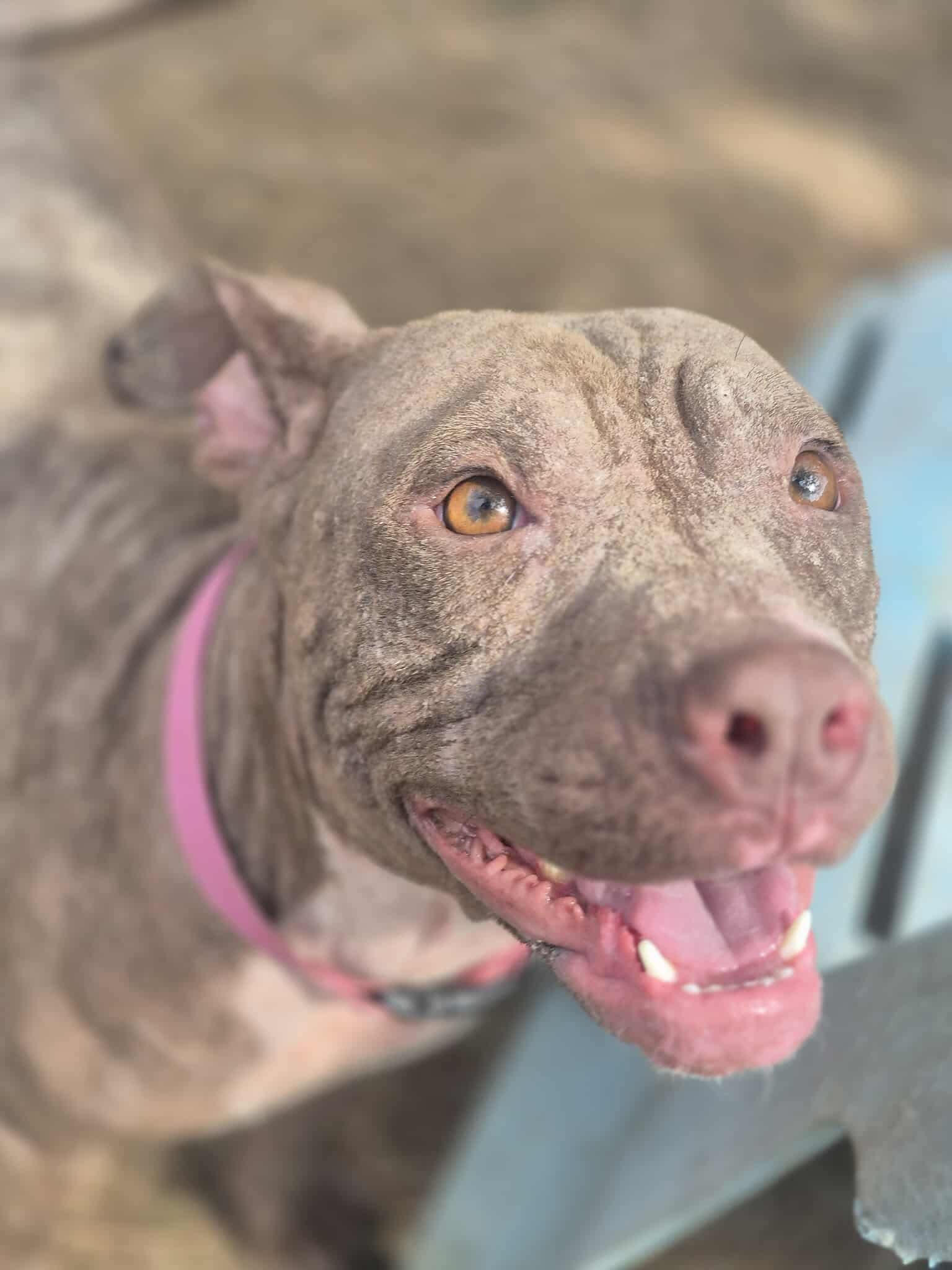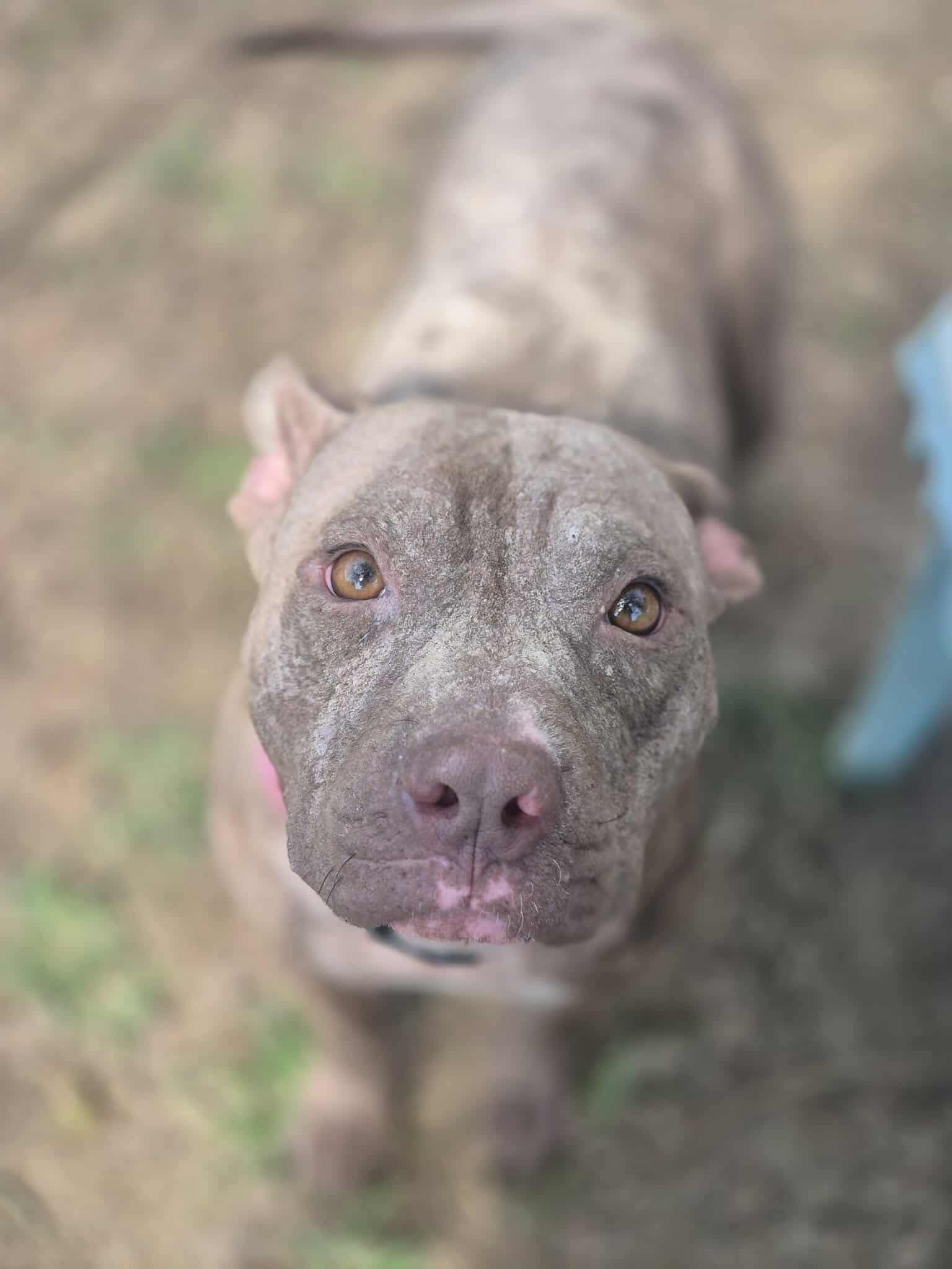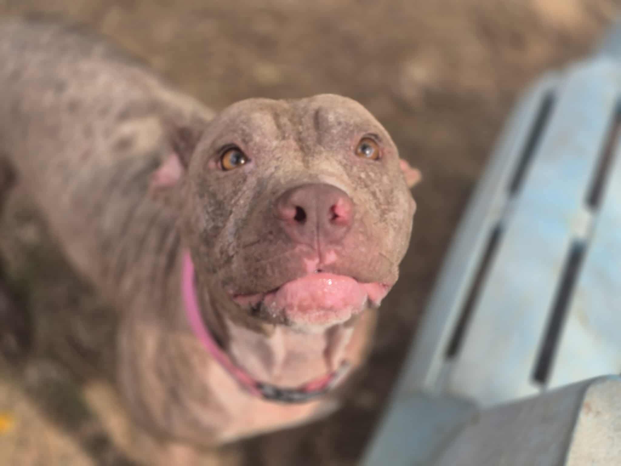 She is still scared, but has come so so far!! She is walking on a leash by herself now, taking treats from people, and giving as many kisses as she can!