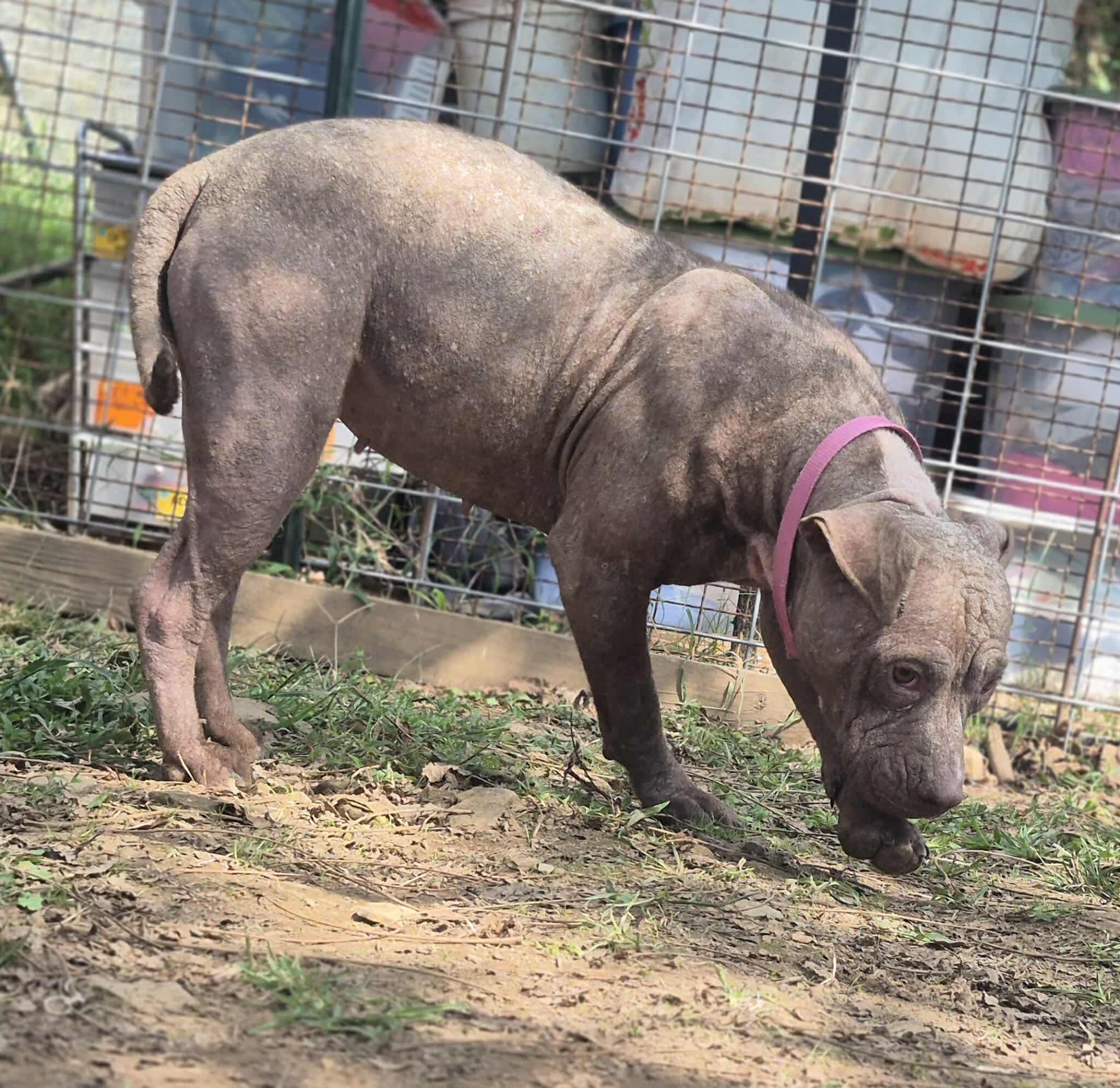 Arabella LOVES for her booty to be scratched, and will turn her head far enough to reach your hand with her tongue. Shes rather small, about knee high. She is so sweet, I completely fell in love with her today!