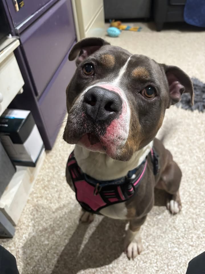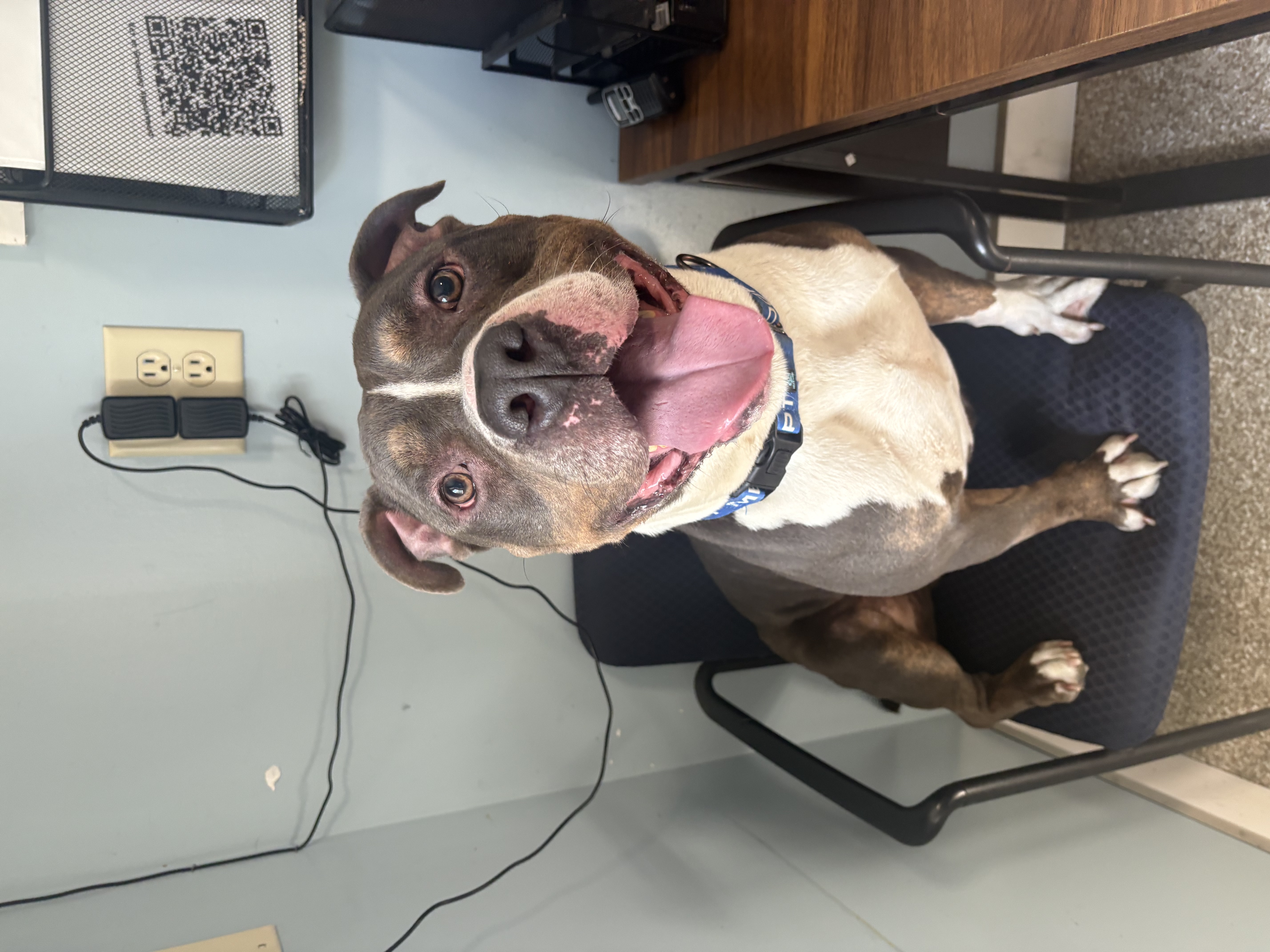 Sup, humans? The name’s Greyson. I’m 4 years old, 70+ pounds of pure muscle, and, yes, ridiculously handsome. Volunteers jokingly call me a hippo, but let’s be real—I’m basically a wriggly, slobbery, four-legged love machine with a PhD in goofiness.