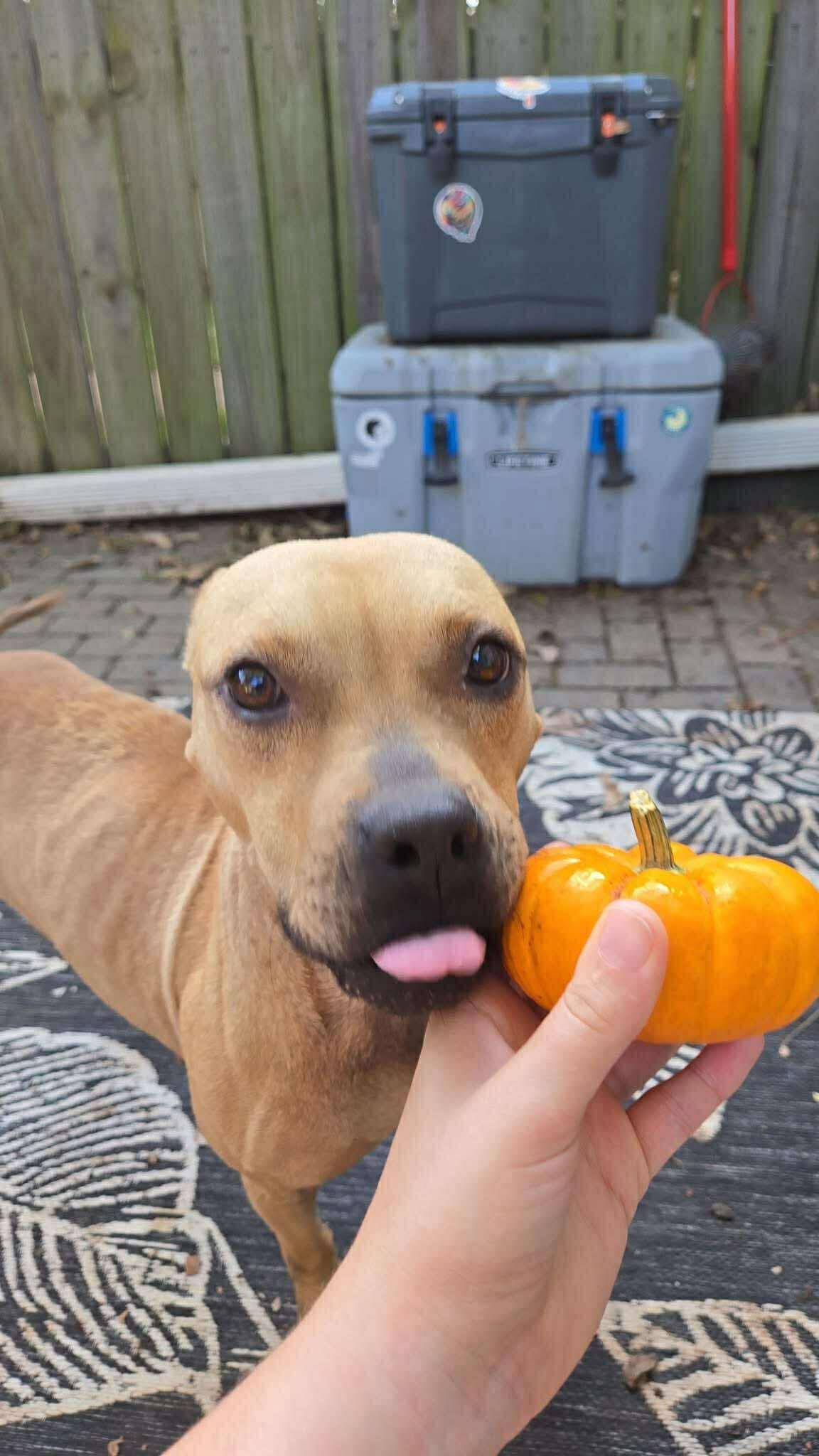 She recently got spayed and found out she is heart worm positive. She is only 27 pounds and has the cutest toothy smile. She is extremely food motivated and gets so excited during meal time.