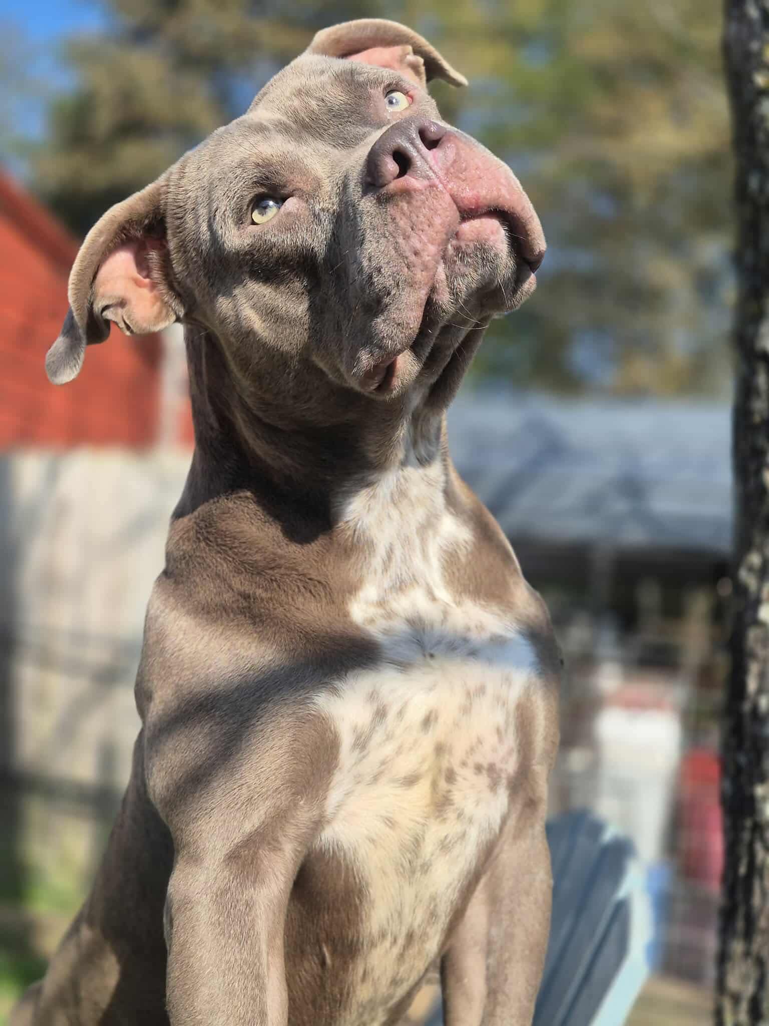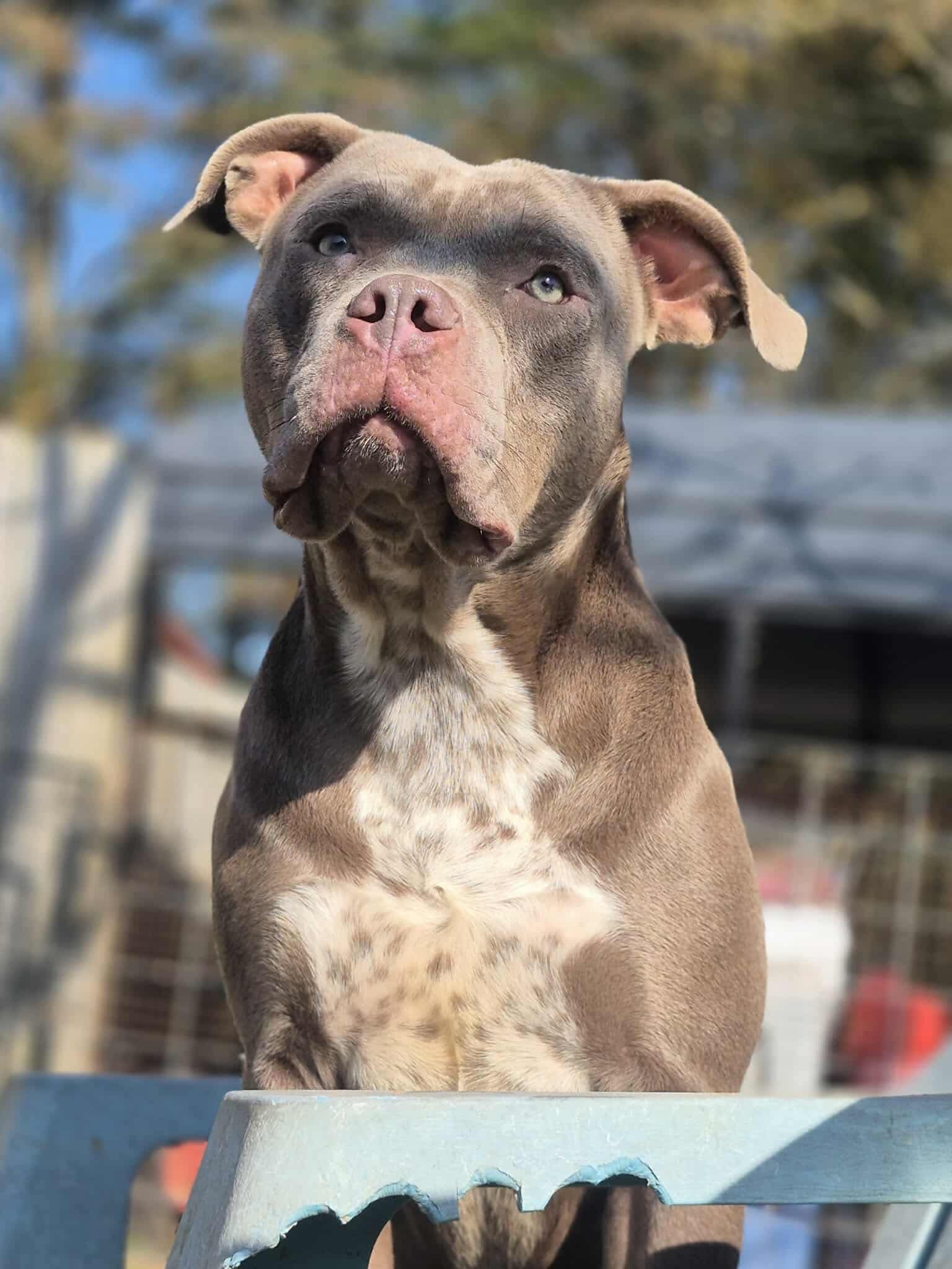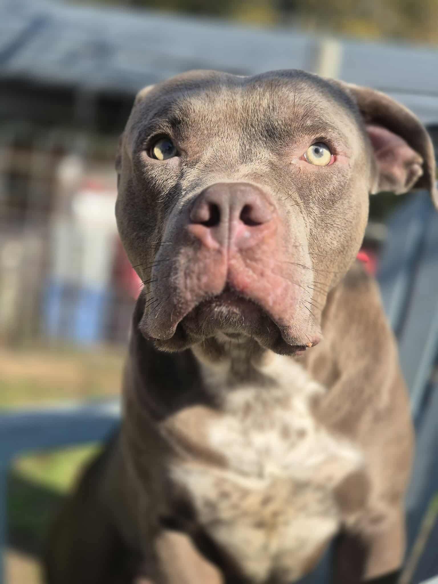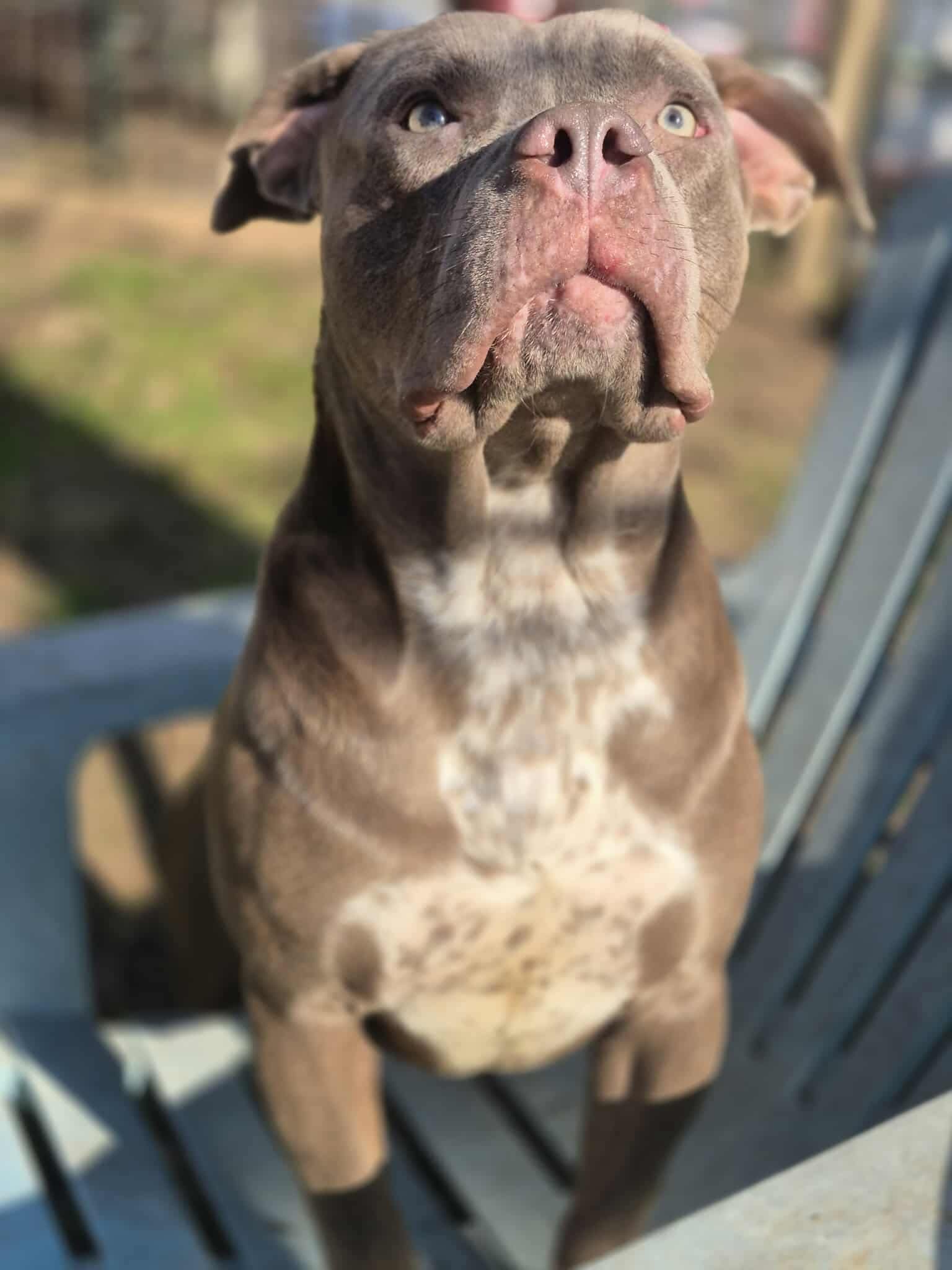 Extremely friendly and outgoing. But he can be a little timid with loud noises or fast movements. He did come out of that as soon as I threw a ball. He is very toy motivated and very food motivated. While he doesnt know how to walk on leash, he does know how to steal your heart... and your chair 😂