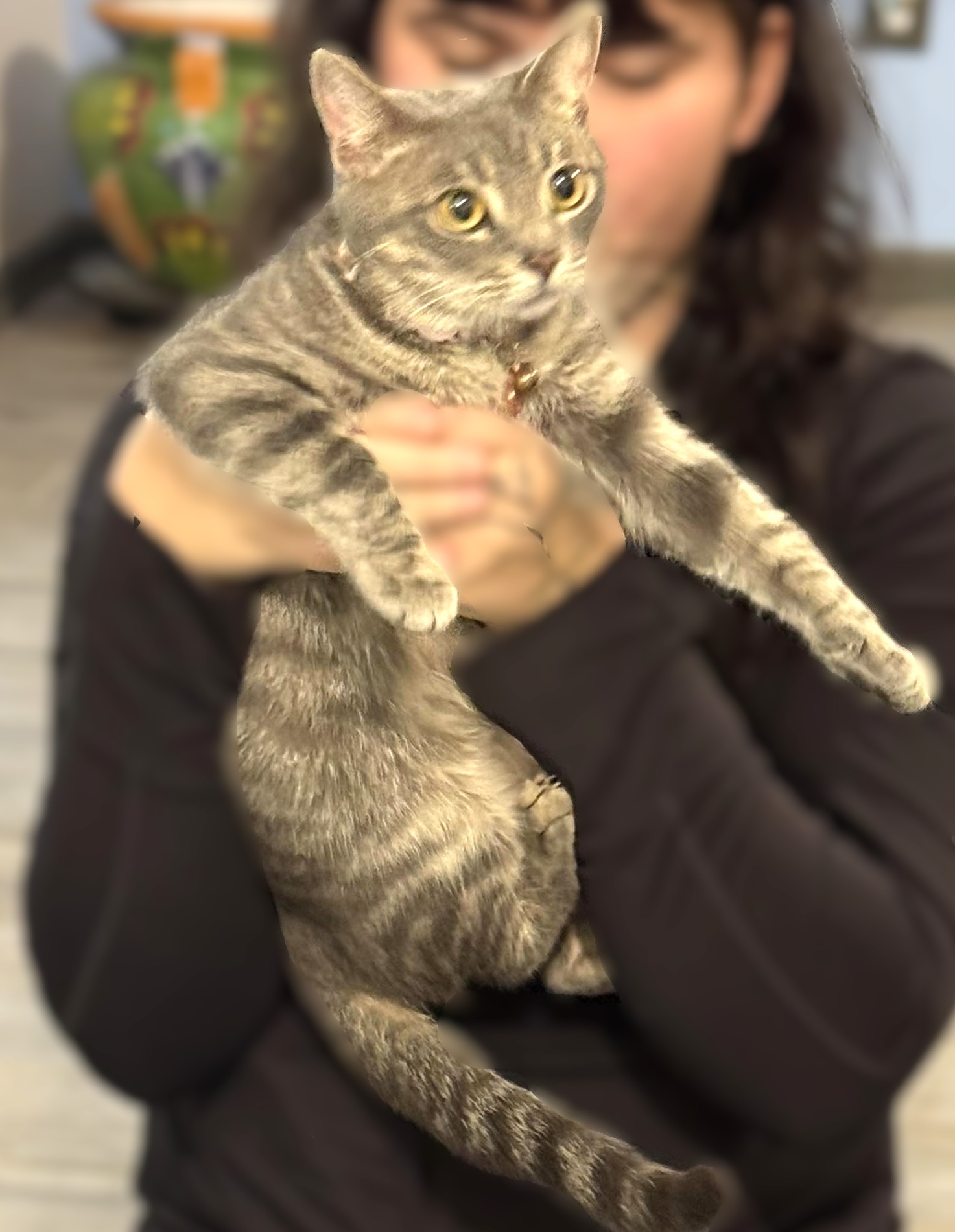 Hazel is a real cuddler. Loves your lap and hangs with my pack of dogs with no care in the world. She is very social, loving and has a gentle demeanor. Hardly meows. She just wants to be in the action care free by your side with lots of love and kneads to give. She’s doing great using her litter box and is honestly the perfect kitty. I don’t say that lightly! If you’re looking for the perfect cat that loves to be held and cuddled and are a new cat owner or maybe looking to adopt one that will get along with yours and fit in great, this is your girl!! Hands down!! I’m betting on it now. We look forward to meeting you!