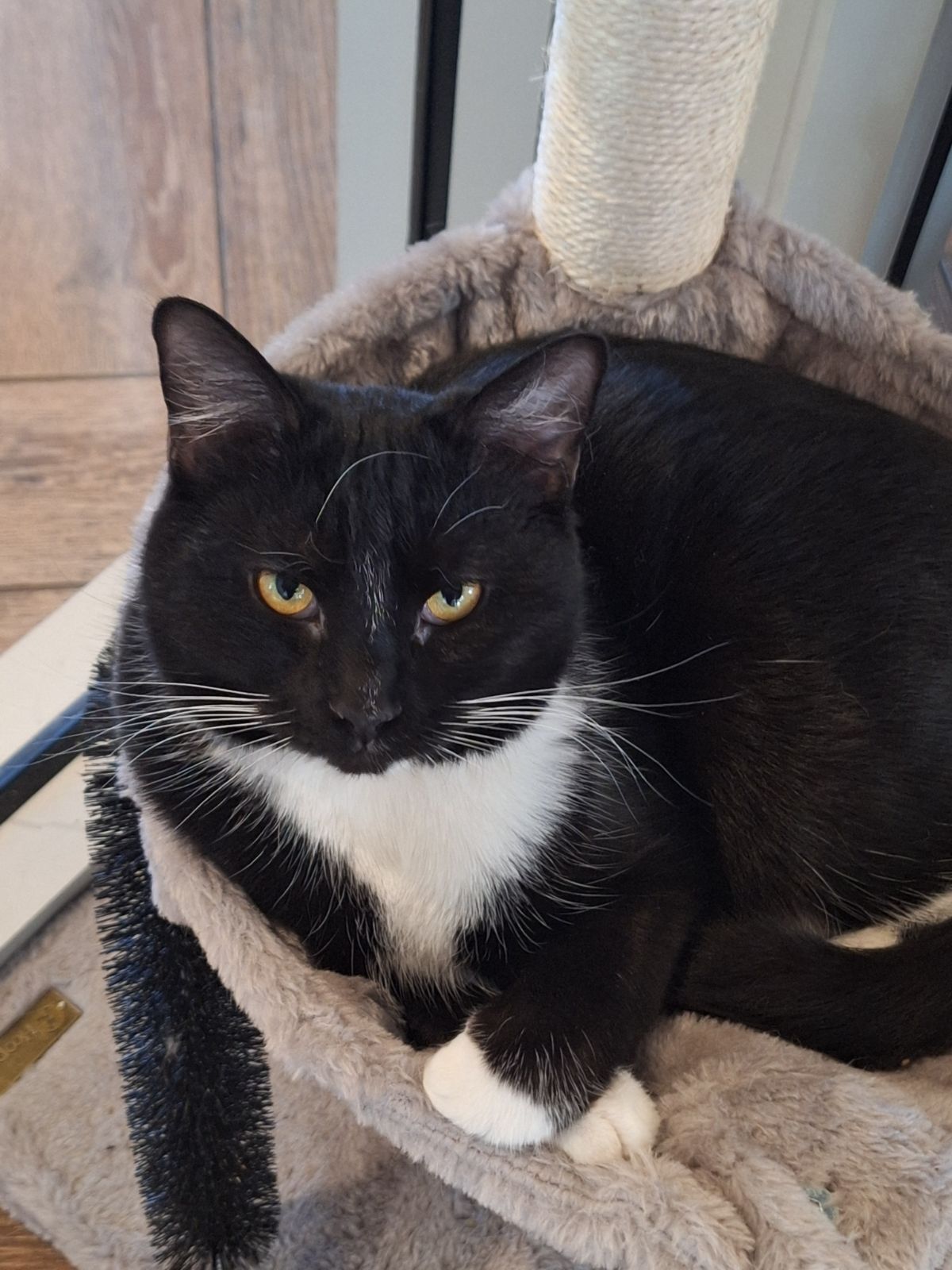 Sox is a stunning tuxedo lady who loves nothing more than a good head pet and snuggle session! She takes a bit of time to warm up to new environments, but she will quickly come around to new people when she realizes they can give her some pets and love. Sox loves nothing more than to play with her toys either by herself of with a friend, but we think in a home she will thrive and even more of her sweet personality will shine.