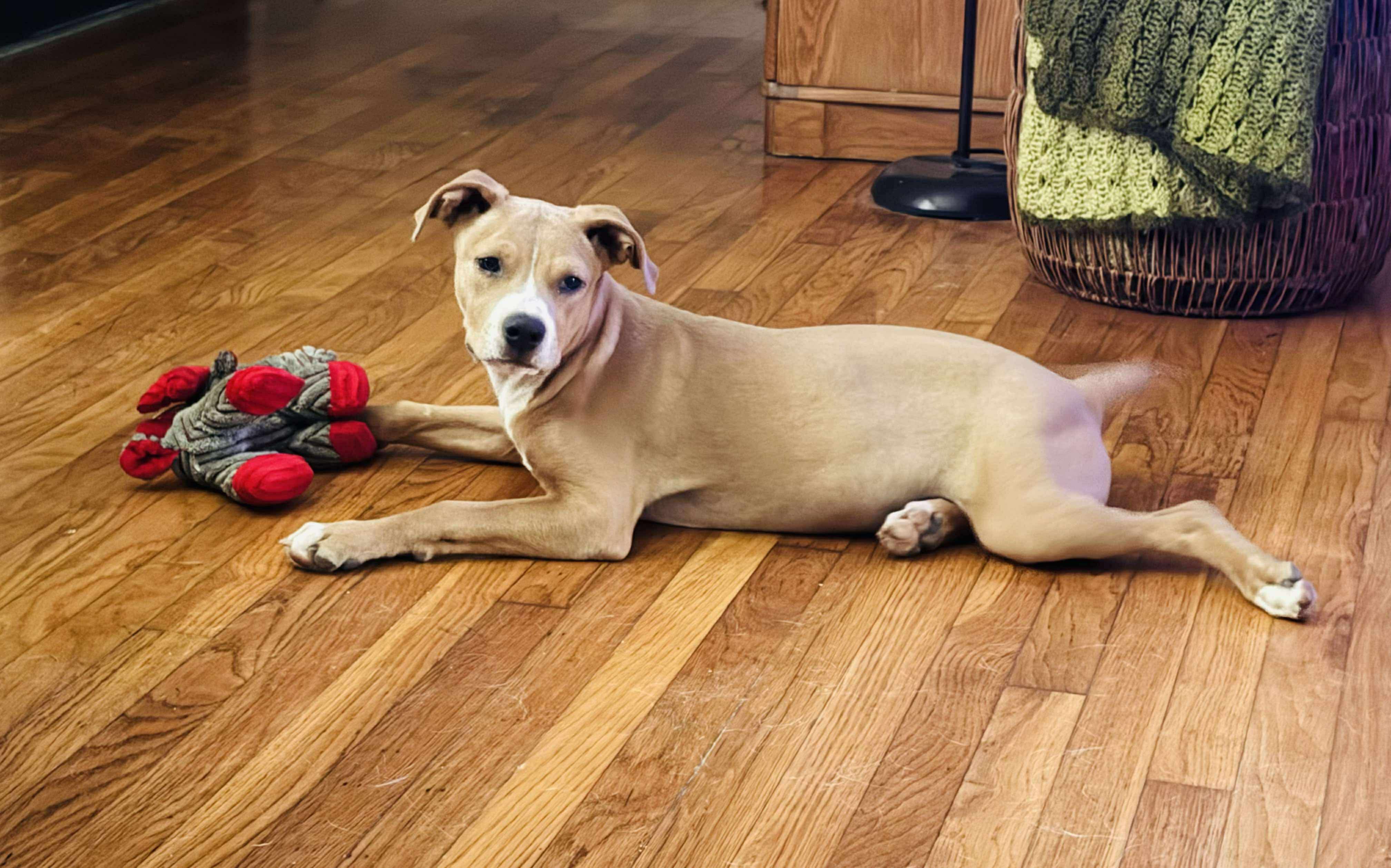 Tommy is very energetic. With patience and more training he is capable of being a wonderful pet. We have taught him sit, down and stay. He is potty trained and enjoys being outside. He gets along with his foster's dogs. He is also kid friendly, he does great with my 8 year old.