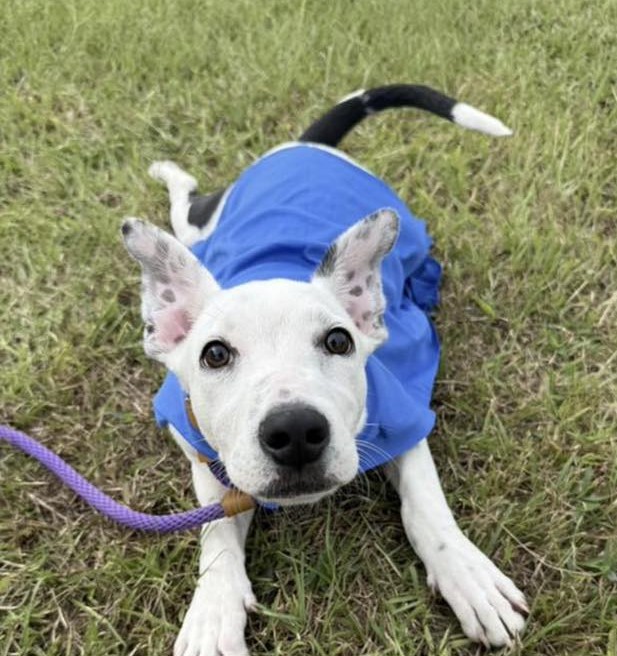 Auggie is such a sweet, playful, happy boy! He loves to play with his dog siblings in his foster home, and he mostly ignores the cats (but would love to play with them if they’d allow it). He is gentle, a little bit clumsy, and he loves to run in the yard. He is working on learning the basics like going outside to potty and walking on a leash, but he’s already doing a really good job so far.
