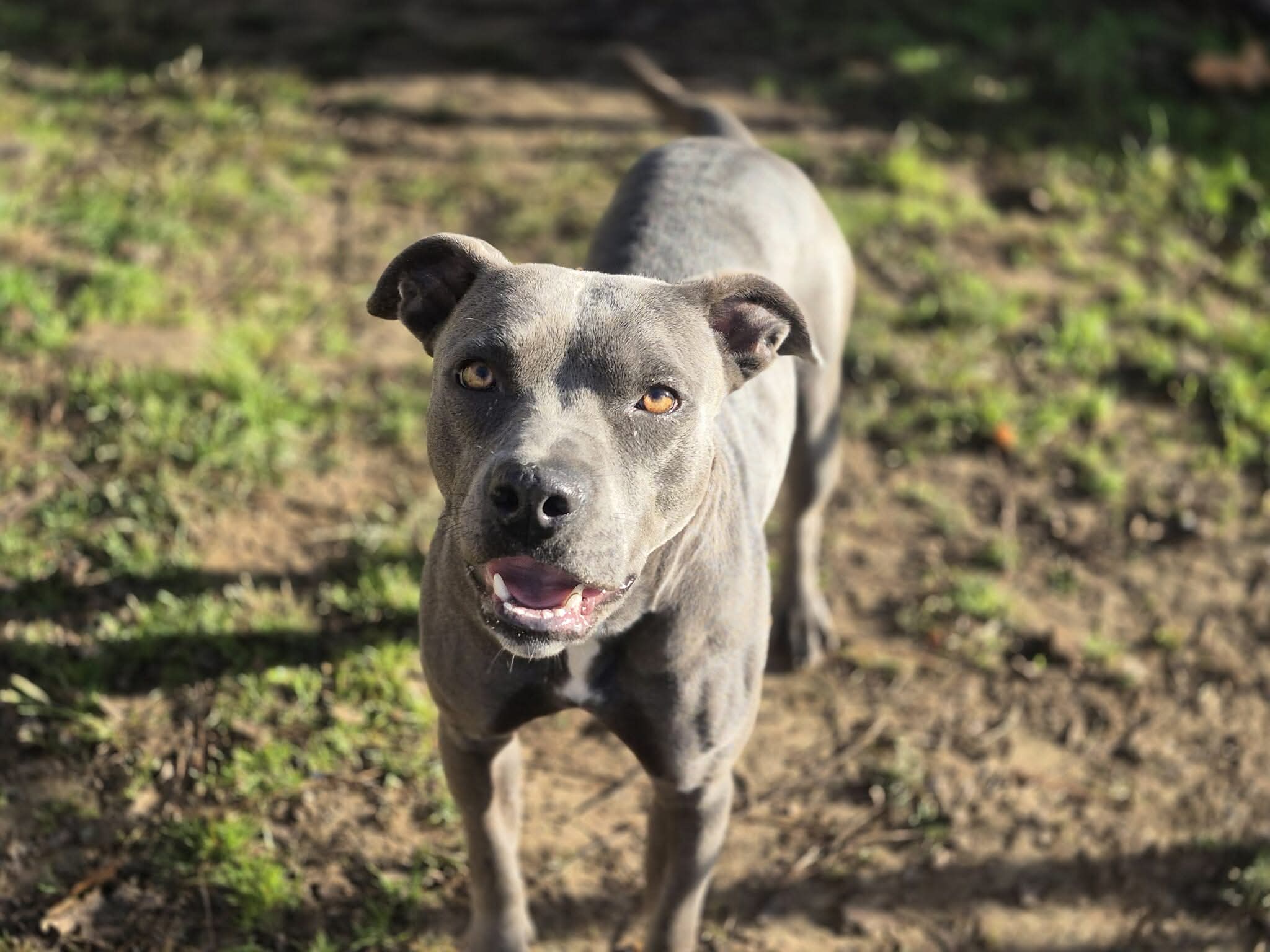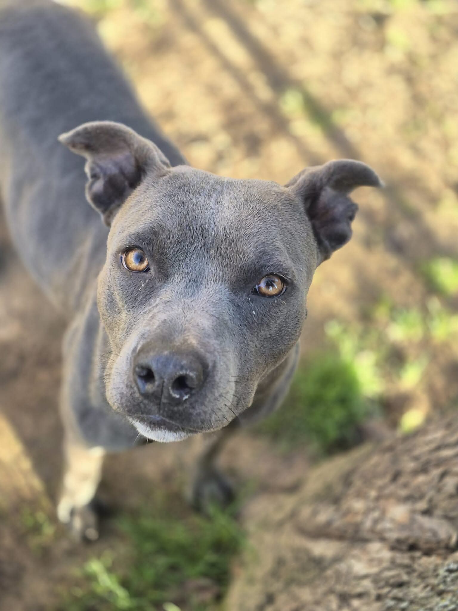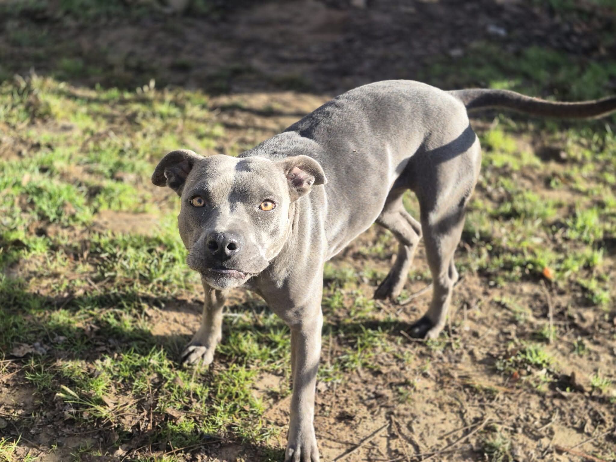 Very outgoing and sweet! She does perfect on leash, and perfect off leash! She has been let out to roam the yard 3 or 4 times, and doesnt cause any issues! She just follows people around, happy to be there with them!
