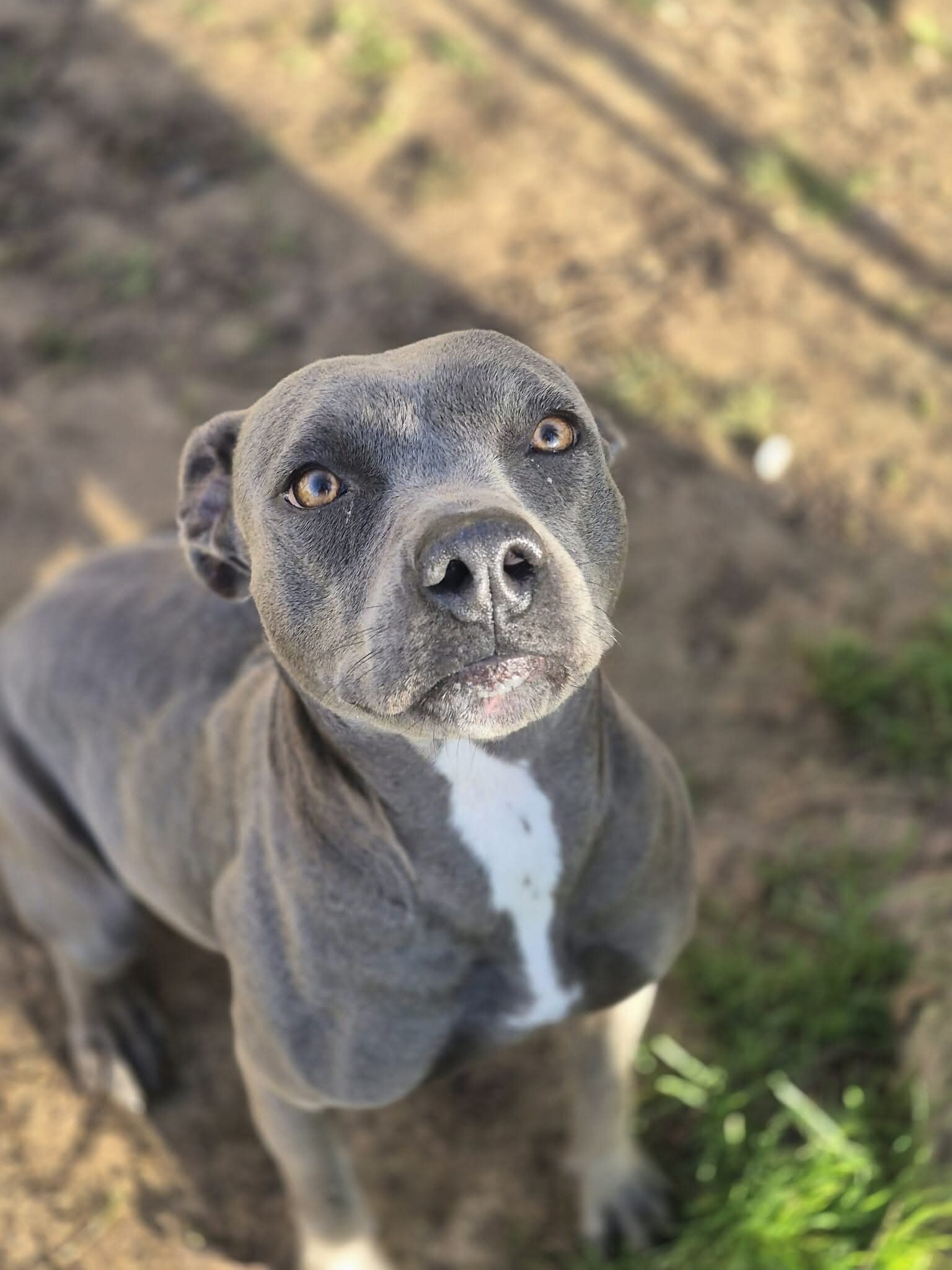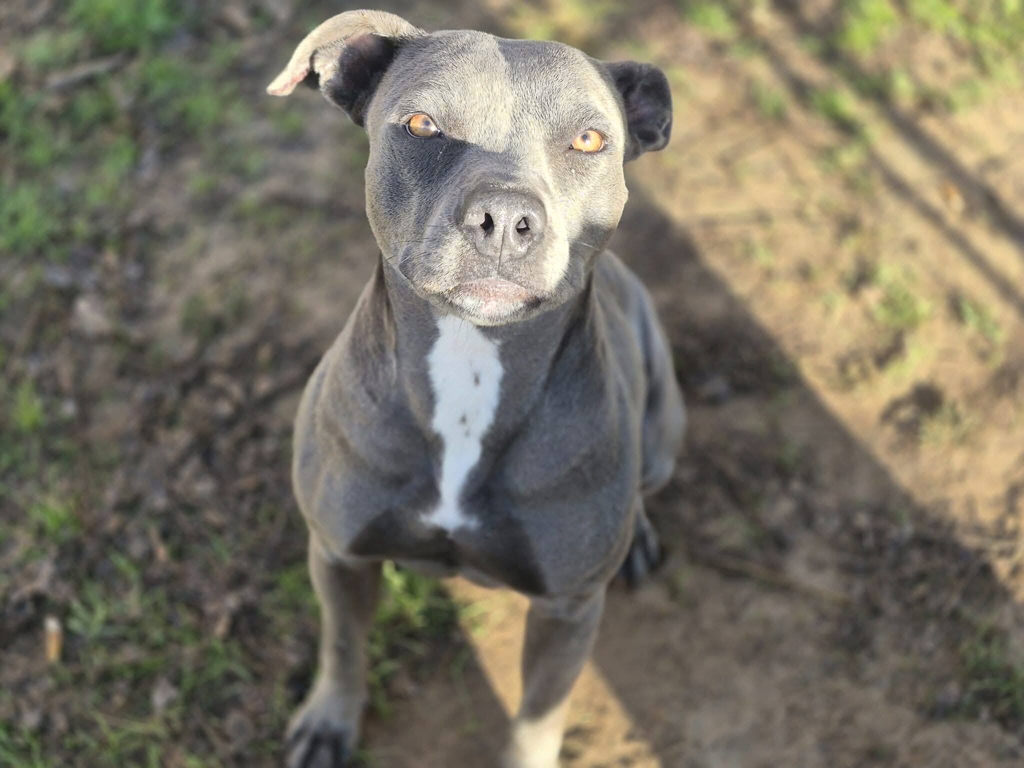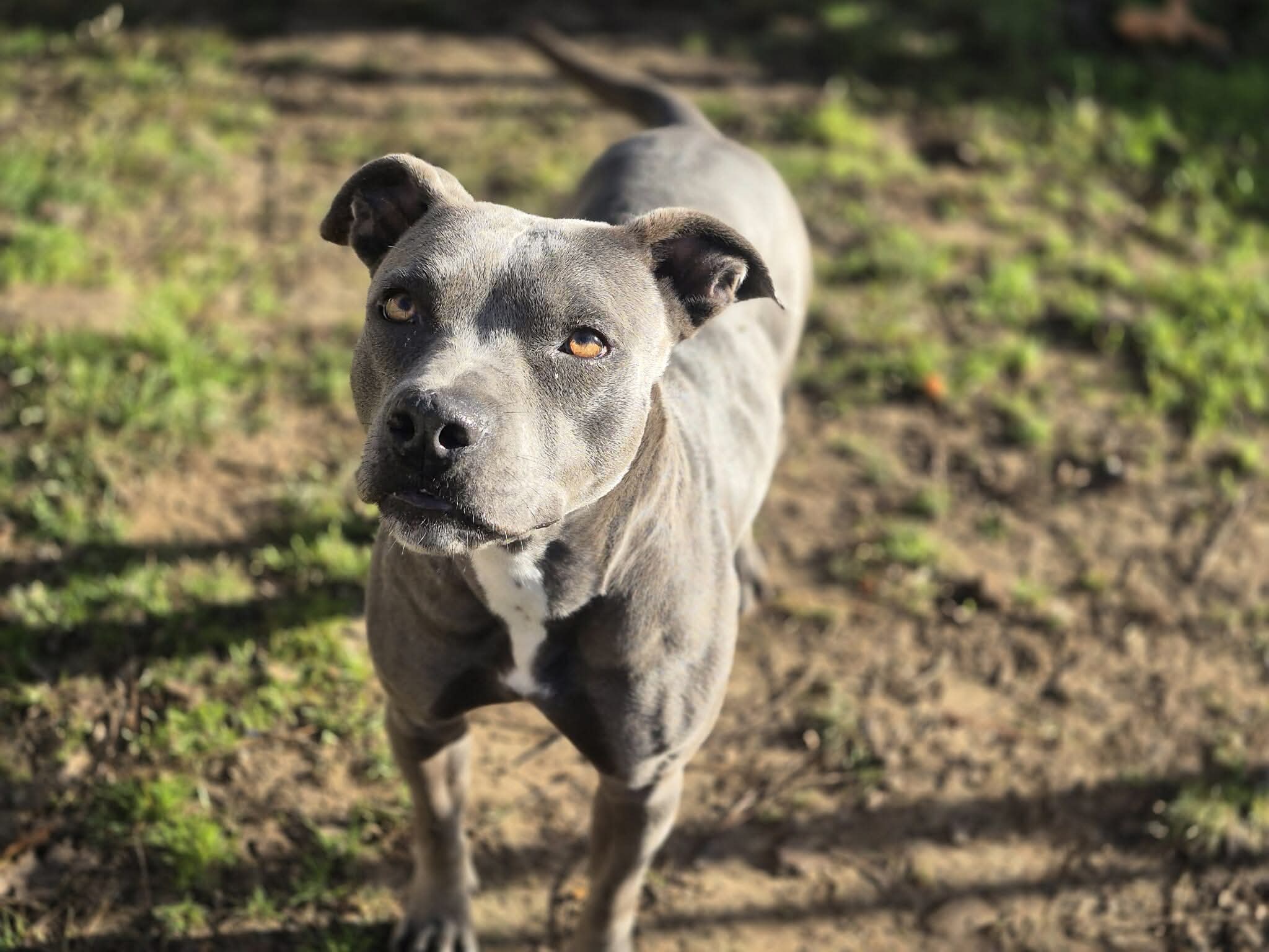 Very outgoing and sweet! She does perfect on leash, and perfect off leash! She has been let out to roam the yard 3 or 4 times, and doesnt cause any issues! She just follows people around, happy to be there with them!