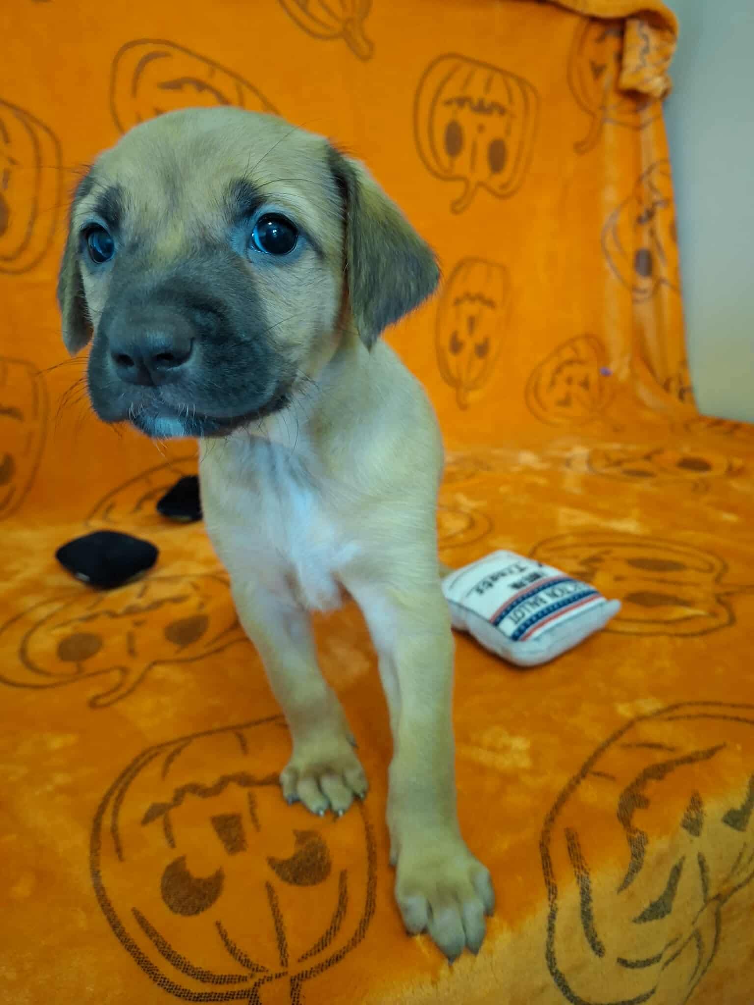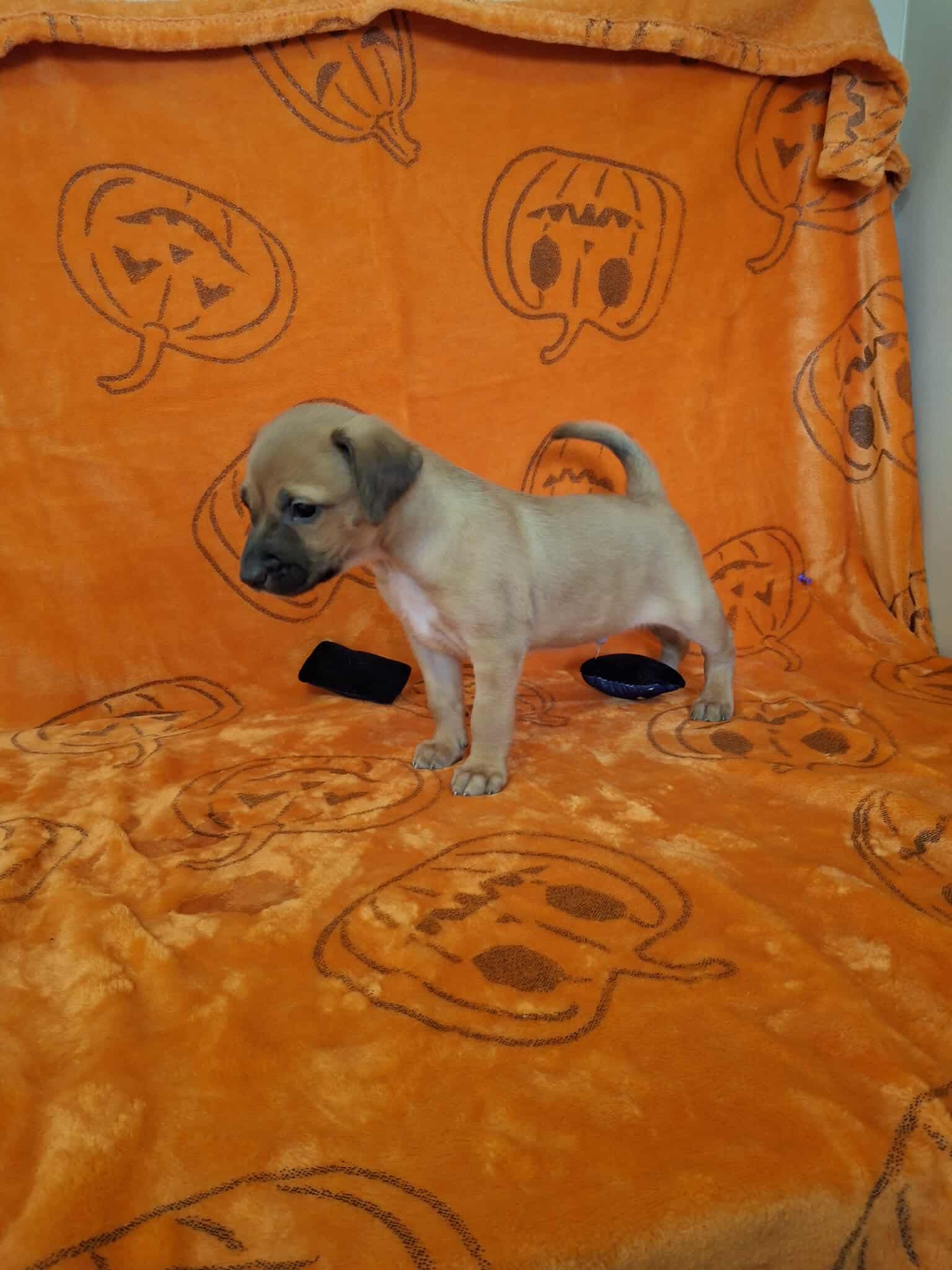 Duke is a happy-go-lucky boy. He's always on the move to run and play. He'll do his thing, then come back to give you kisses. He loves to play with toys, but his favorite thing is drinking mama's milk and roughhousing with his littermates.