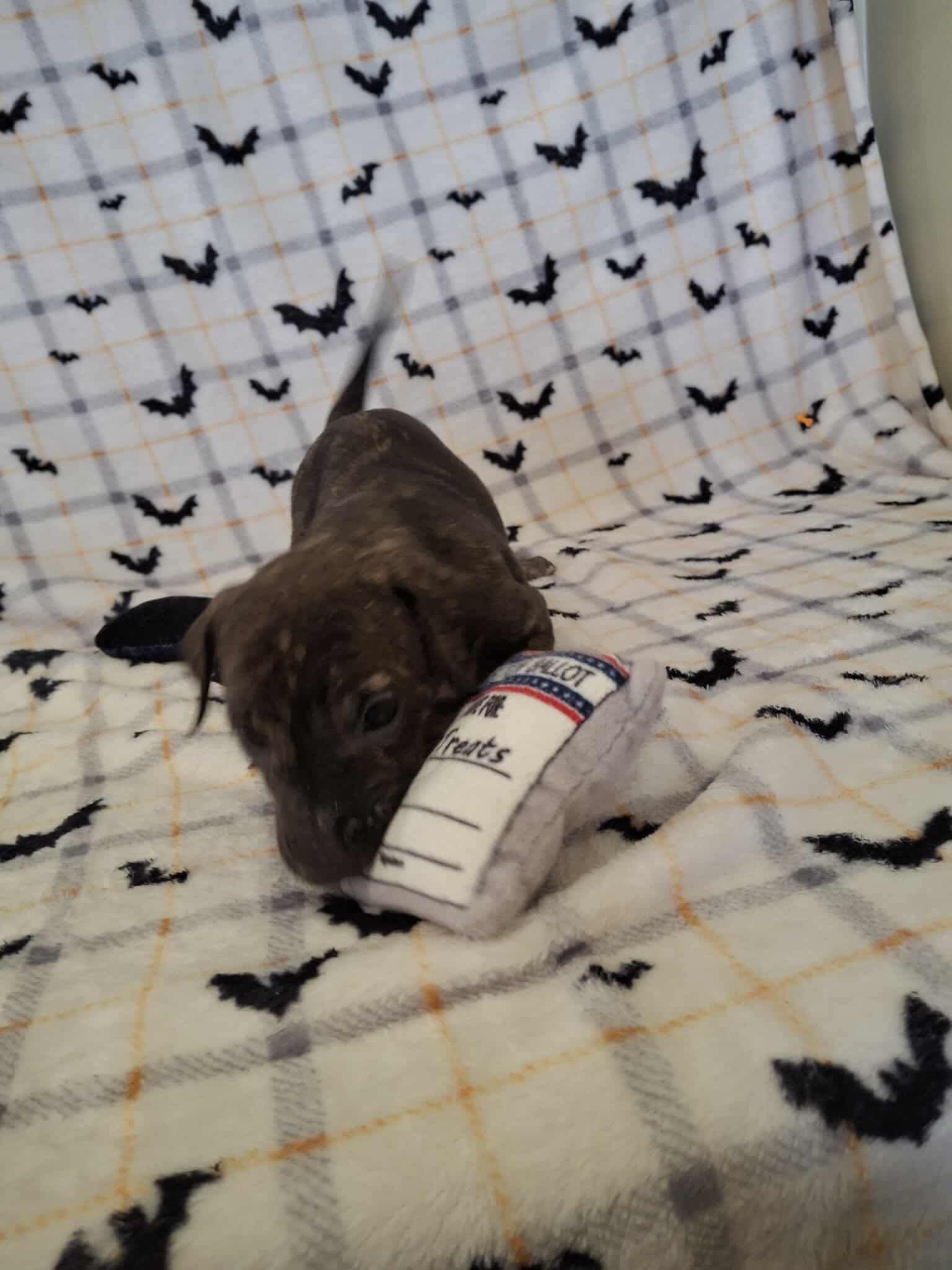She is super adventurous. Della wants to check everything out. She's curious about everything. She loves to play with toys. She's so playful and affectionate. She's not the most rambunctious, but she's not really timid either.