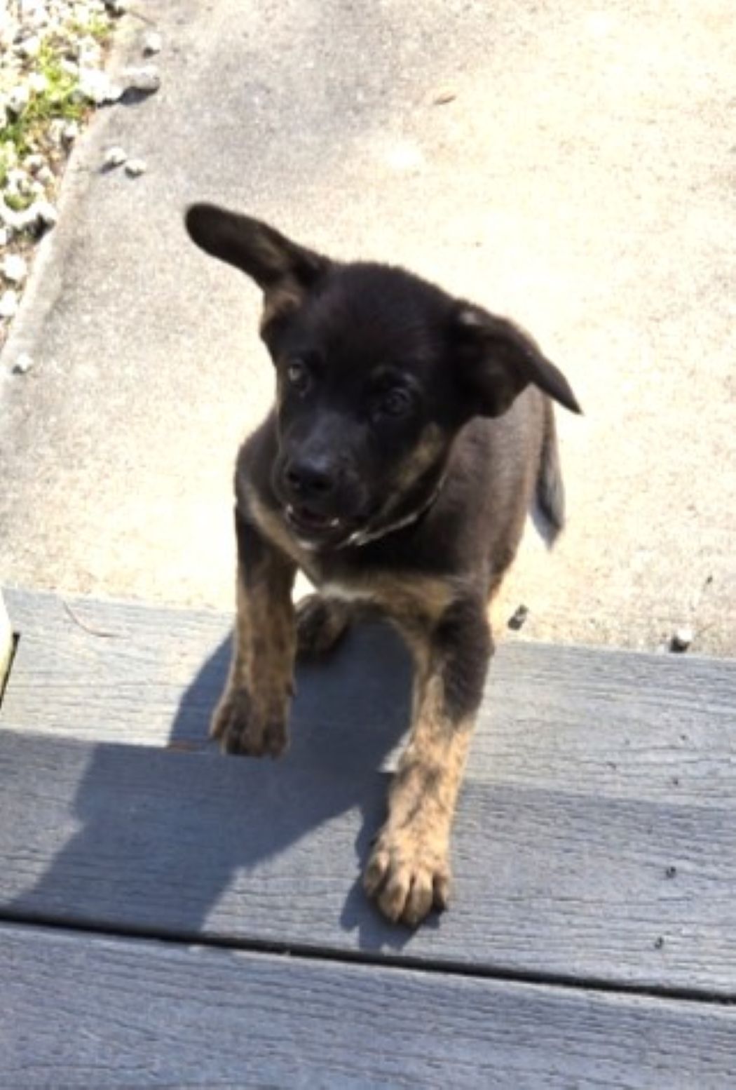 Crane came to rescue on Halloween after being pulled from animal control with his siblings and momma. He is growing fast and will be a handsome, large dog. We believe that he is a shepherd mix of some kind. Crane is in a foster home. He is just starting outdoor potty training, but has used papers well. He has not been crate-trained, but is used to being confined in a small area when not out socializing. Crane is a very sweet puppy who likes to play with his chew toys and play chase with his fosters. He has not been around cats at this point.
