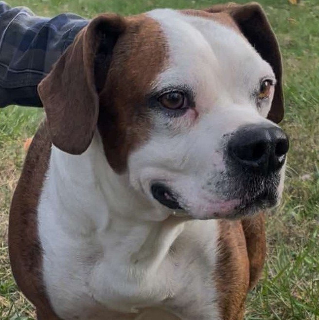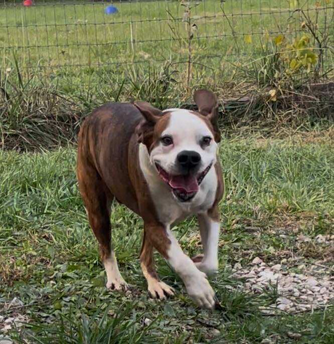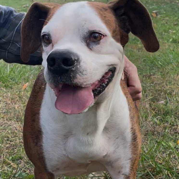 This very special 8-year-old Bulldog/Boxer mix weighs about 48 lbs and has a heart as big as his smile. From the moment you meet him, Nubbie will come right up for love—he’s friendly, affectionate, and has the sweetest temperament.