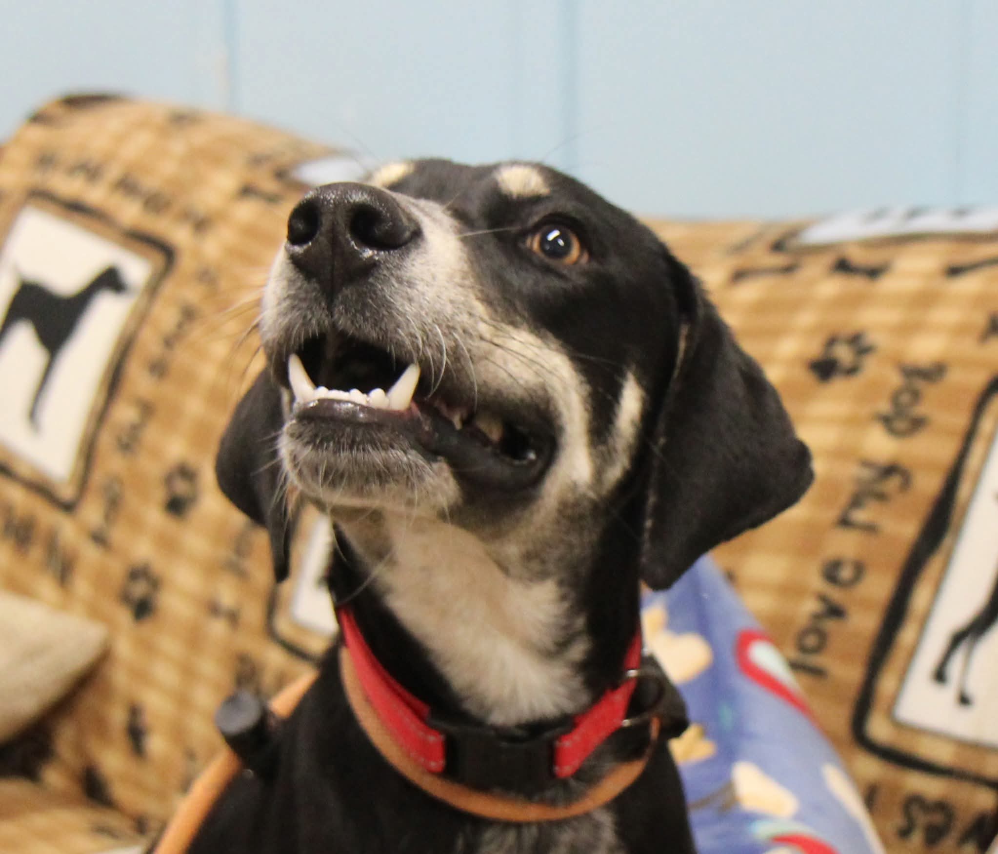 Larry is one of the Three Stooges litter and came to the shelter with his brothers Curly and Moe. He is the smallest of the three and the most outgoing. Larry is very friendly, loves human attention and takes treats very gently. He loves to play, knows “sit”, and walks okay on a leash. Our volunteer said Larry “makes silly faces, has big feet and an even bigger heart”.