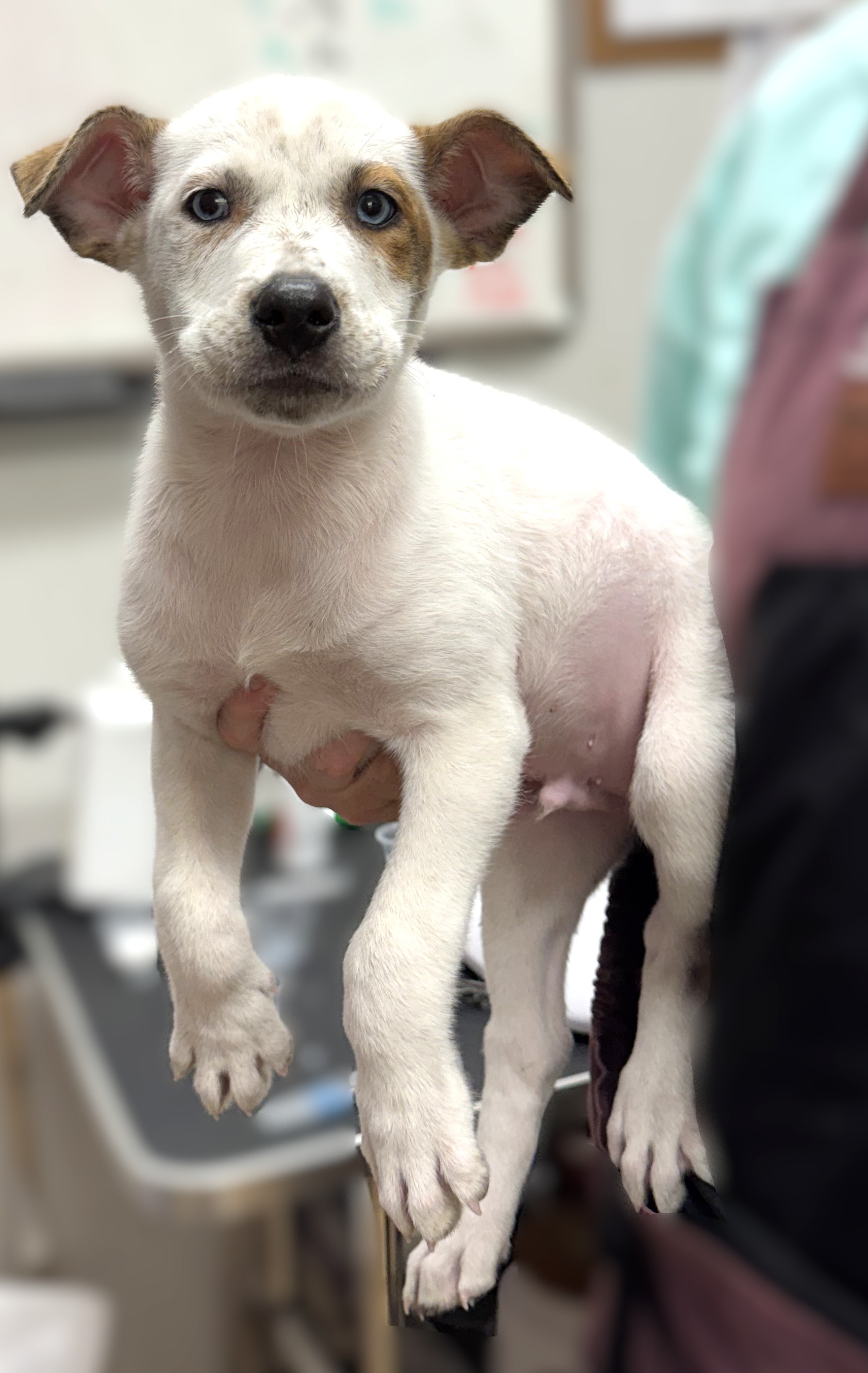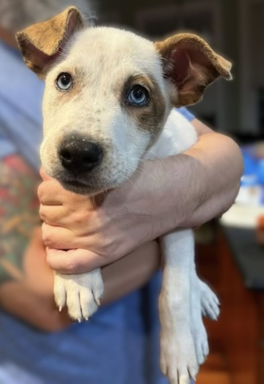 Spade has done very well his first few days with us. He loves Josh and follows him everywhere. He is very social and trying to get everyone to play with him. He is sleeping well in his crate and already housebreaking. He is relaxed around the cats. Great with our kids. He’s gonna be a great dog and we just can’t get over these eyes!!