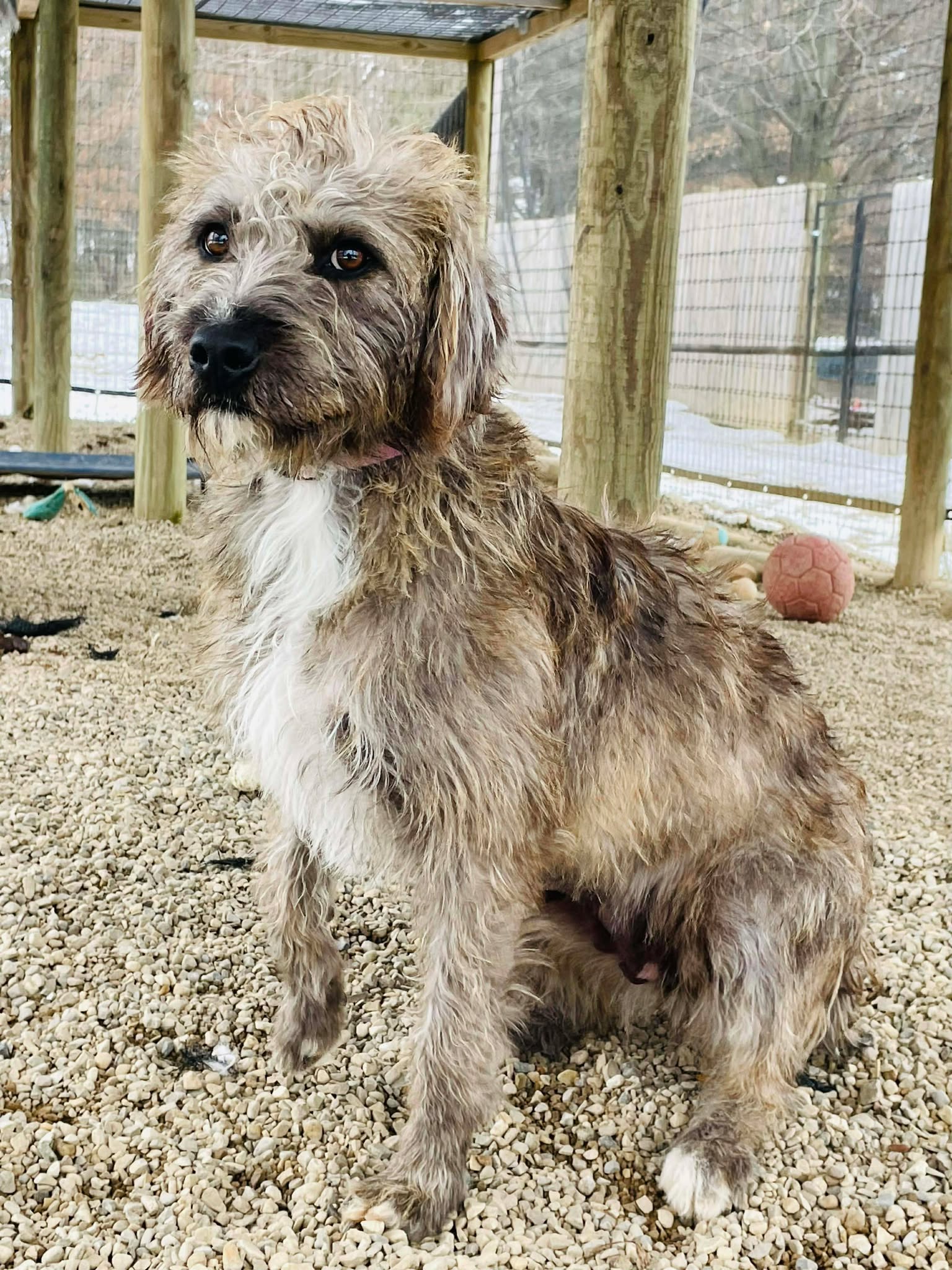 Bella is a sweet, 1-2-year-old doodle weighing about 40 lbs. She came to Canine Collective with her puppies and has done a wonderful job raising them—now it’s her turn to find a loving home of her very own. Bella is spayed, up to date on vaccines, and ready to start her next chapter. This gentle girl can be a bit shy when first meeting new people, but once she feels safe, her affectionate personality truly shines. Bella loves treats, gentle pets, quiet companionship, and giving soft kisses. She does great with kids and other dogs and would enjoy an active family who includes her in daily life. She especially enjoys long walks and does very well pottying while on leash.