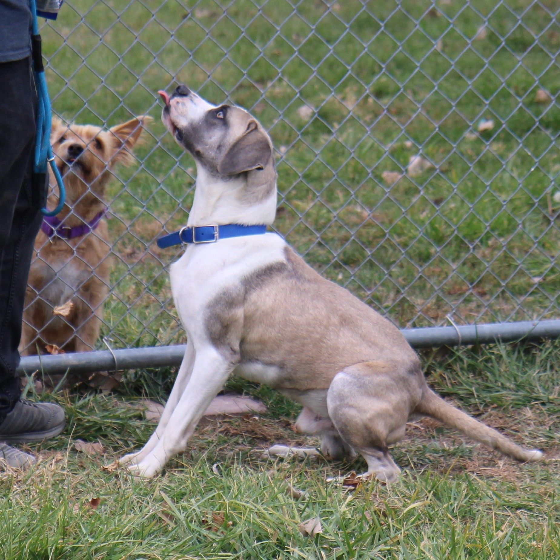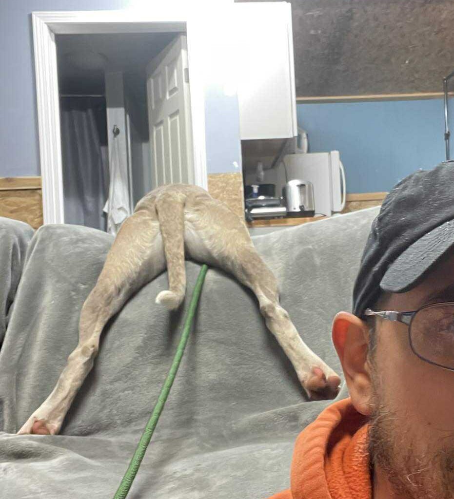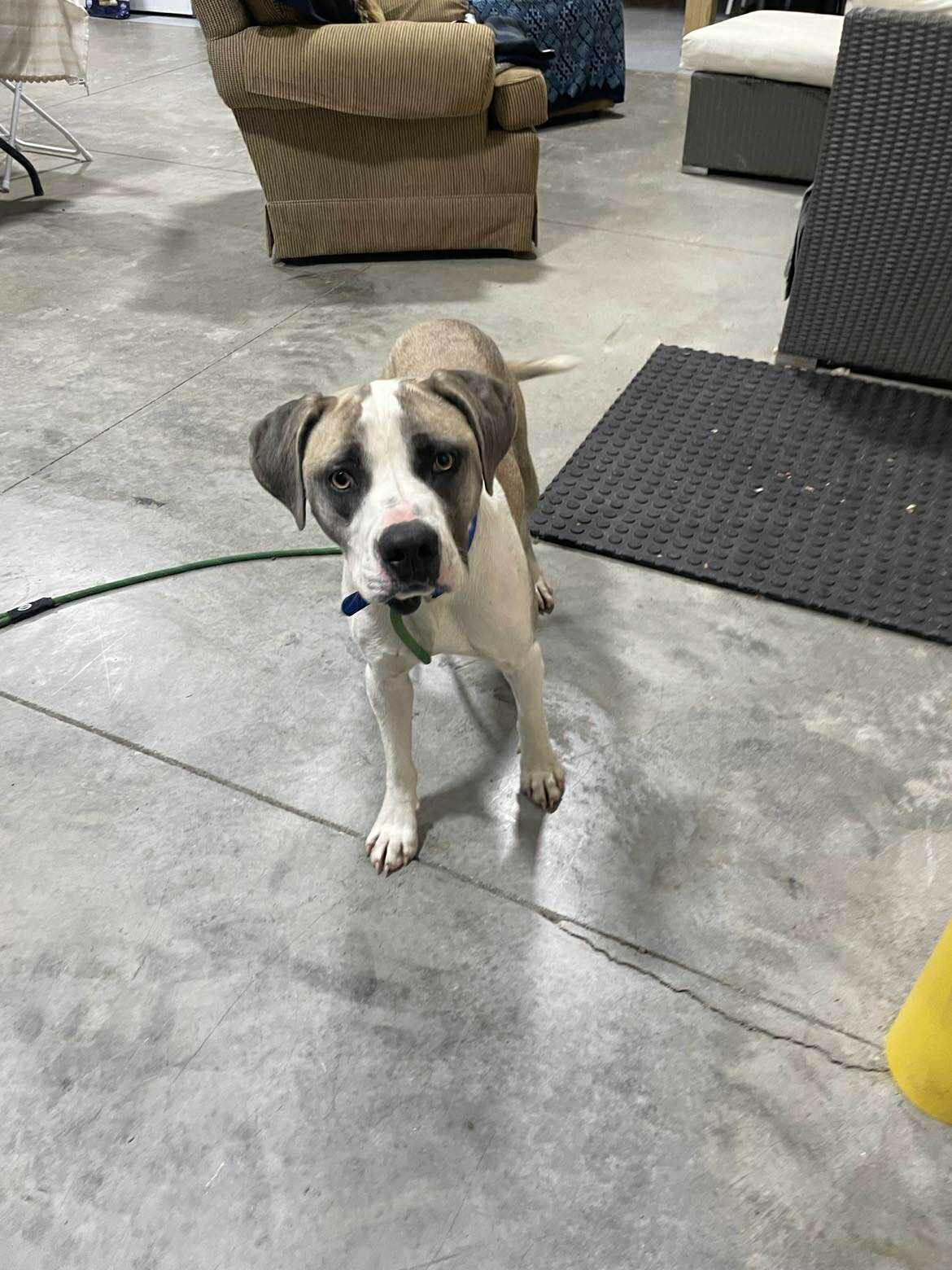 This handsome young pup — with his mix of gray, tan, and white — might be part Boxer, part hound, but let’s just say he’s 100% Supermutt! At only 10 months old and 50 bs, Morpheus is full of curiosity. He’s convinced he’s a lapdog and loves being right in the middle of the action. He is superfriendly yet doesnt jump on you. During his photo shoot, his favorite spot was hanging over the back of the couch (check out the picture — it’s adorable!). He is a happy go lucky guy that sits for treats. We think he would enjoy having another dog in home to be his buddy.