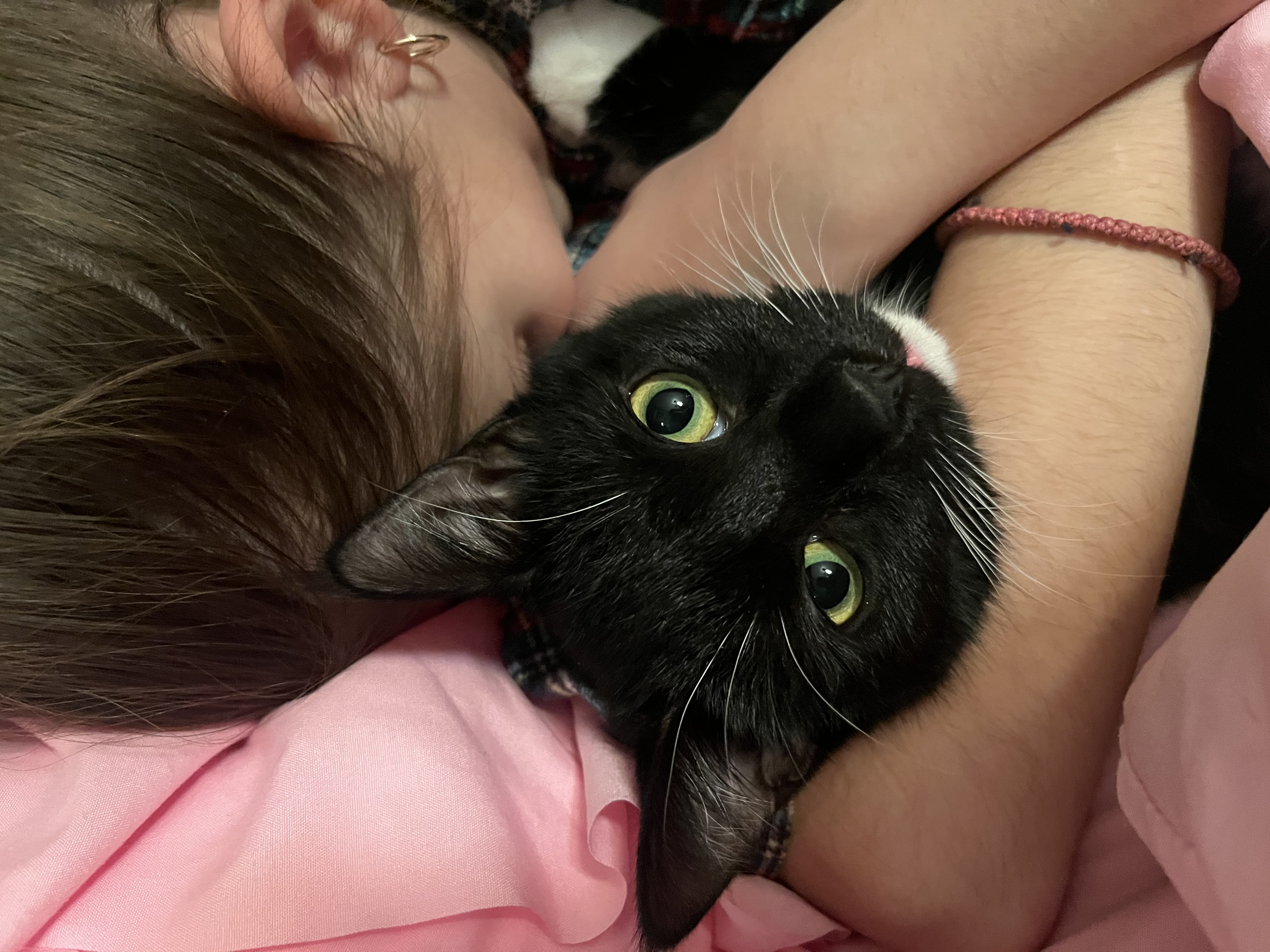 At first, she was understandably shy — after all, human touch was new to her. But with gentle care and patience, she’s starting to open up, letting you pet and even hold her. Every day, her sweet and curious personality shines through a little more.