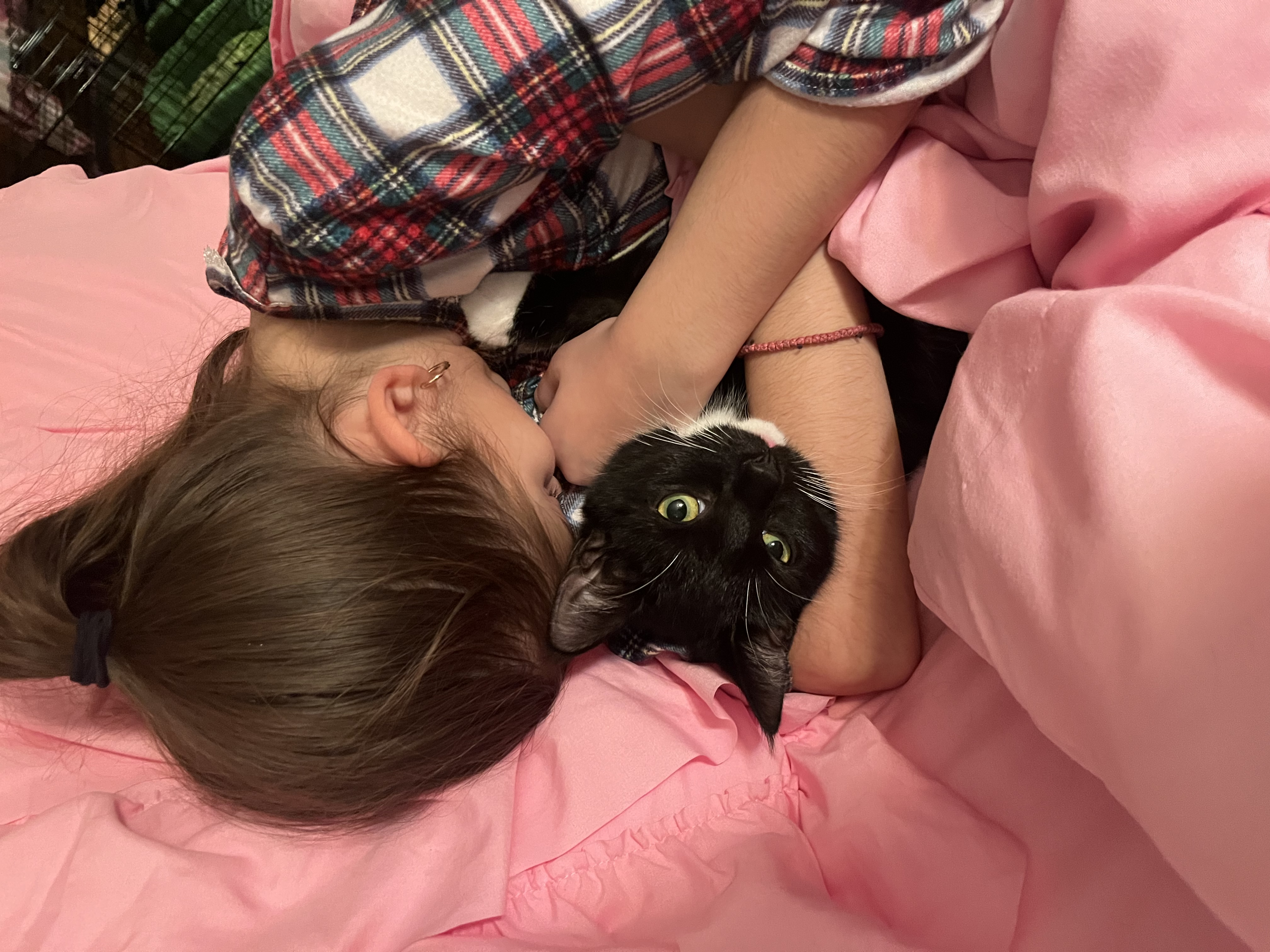 Born in a backyard shed, this precious kitten was rescued just in time before the cold winter weather set in. She’s now safe, warm, and learning what it means to be loved.