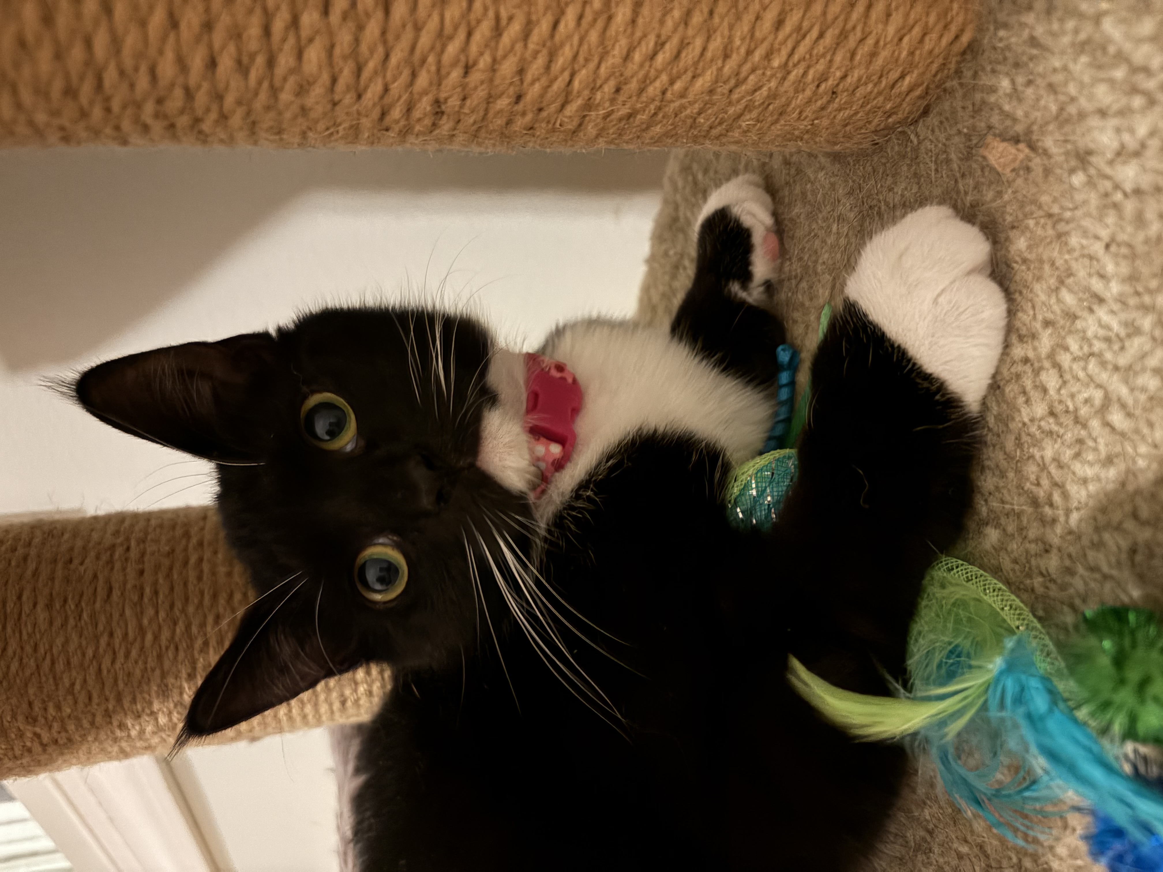 Update: Spirit is playful and sweet. She loves toys. The more the merrier. She has a healthy appetite. She uses the litter box. She gets along with other felines and with dogs too.