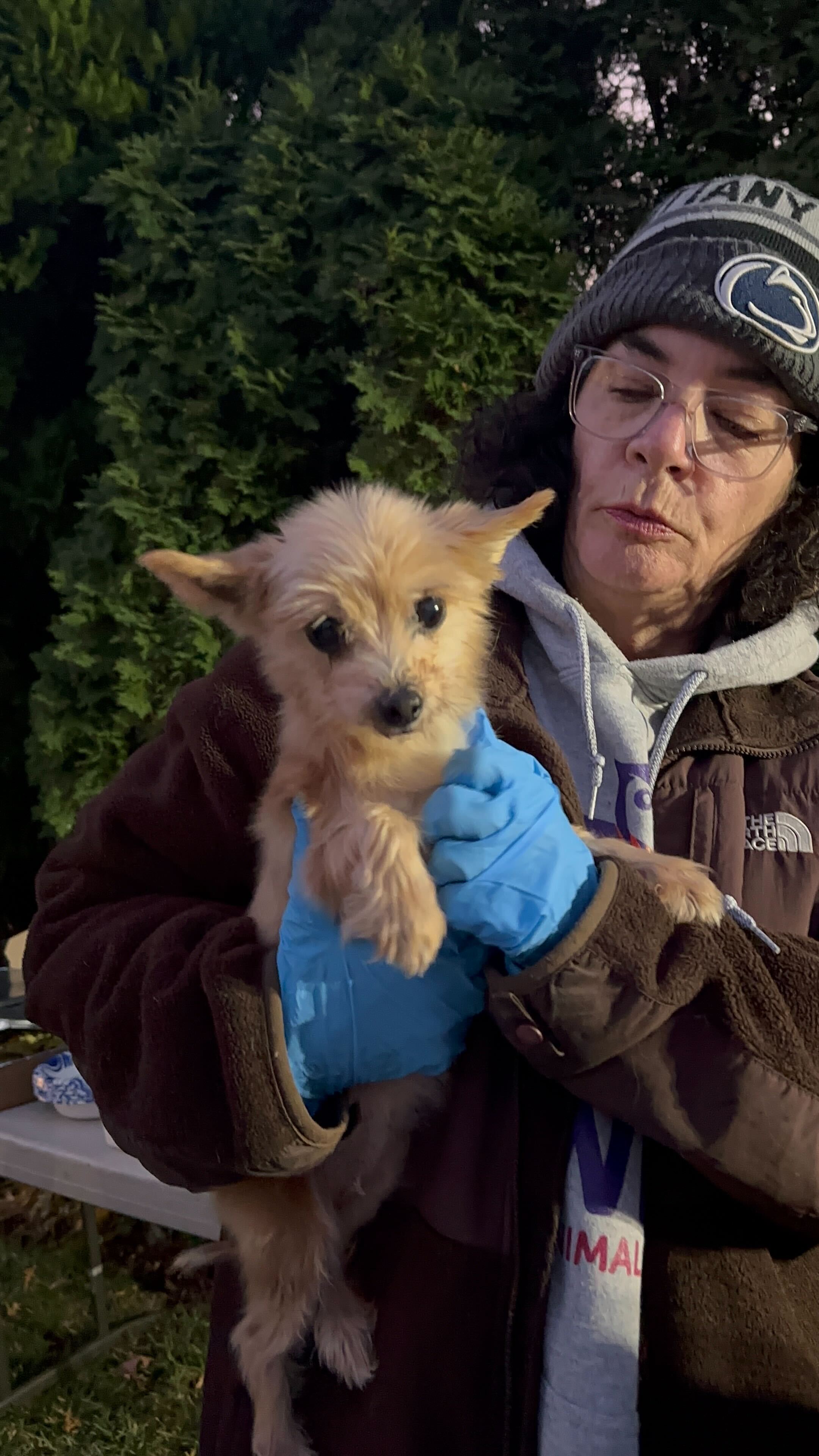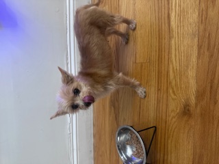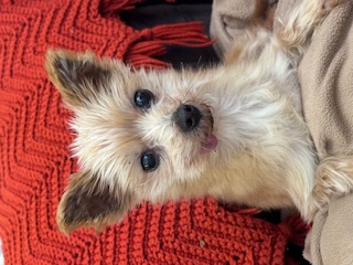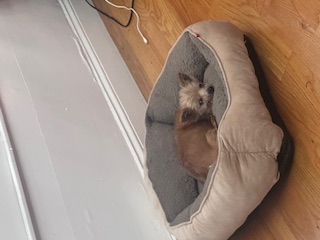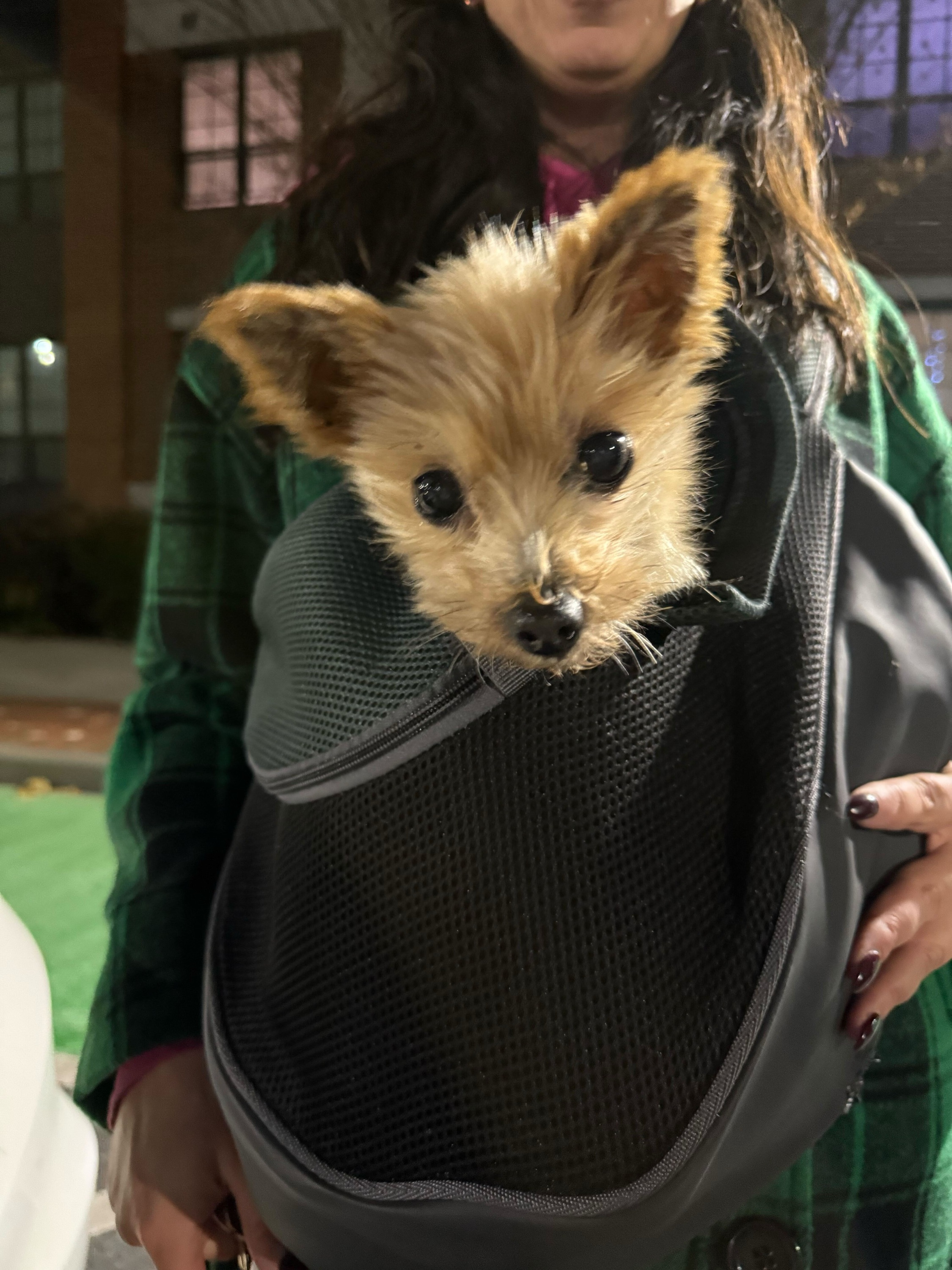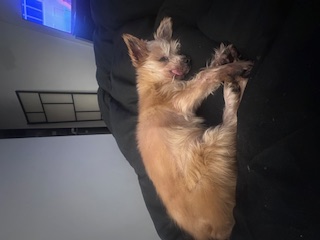 Training: Ginger Snap loves her daily walk, but it’s important to let her choose the pace and direction—this is her special time, and she enjoys exploring on her own terms. Because she can tire quickly, her person should always bring a bag in case she wants to be carried part of the way. When she wakes up, her routine works best when she’s picked up immediately and taken outside so she could go potty. She does still have accidents, and her adopter should understand that this comes from age and occasional confusion, not misbehavior. At night she sleeps comfortably in her crate, though truly she can curl up and rest anywhere and be perfectly content. With patience, consistency, and kindness, Ginger will be a loving and easygoing companion.