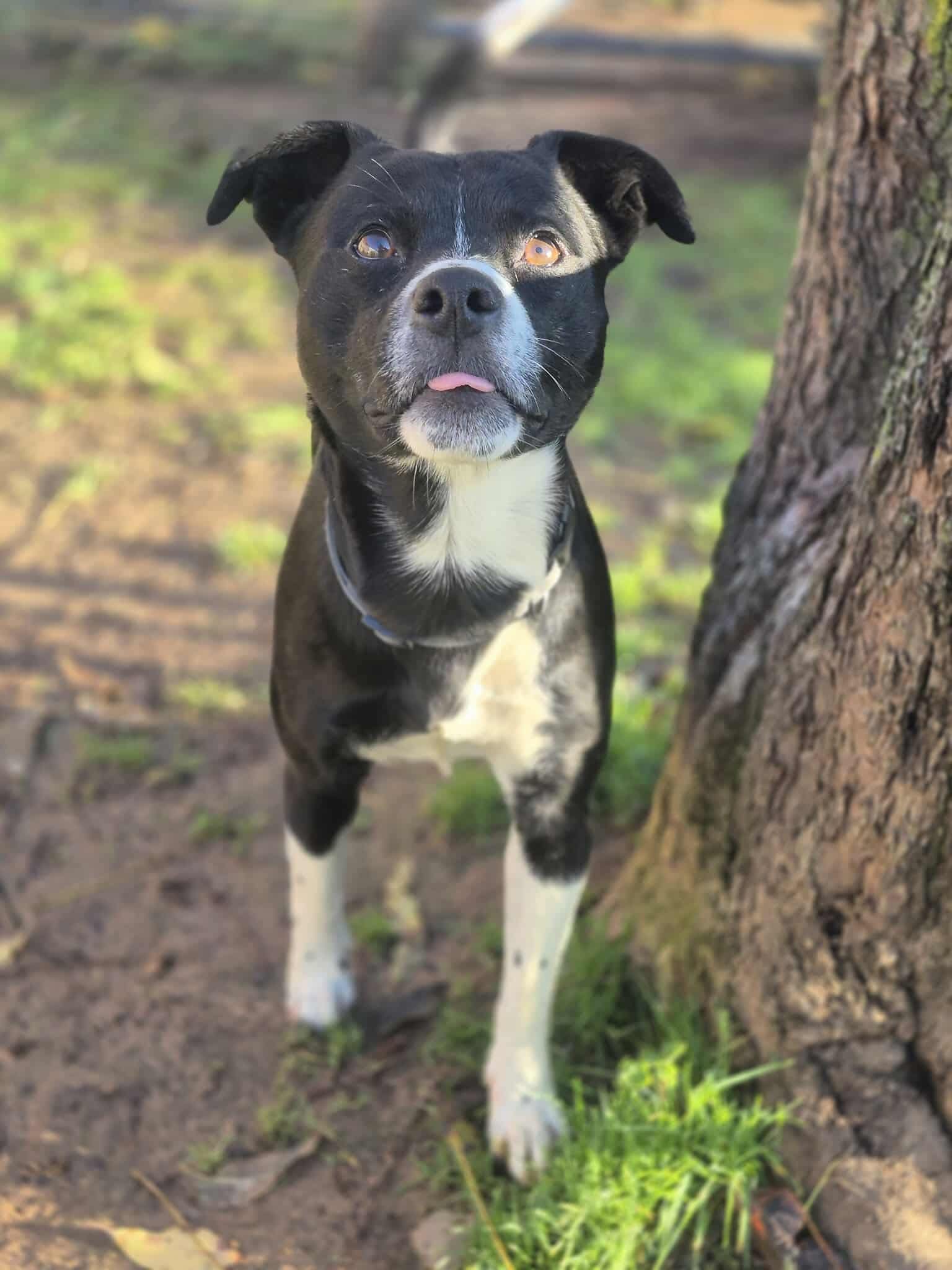 EXTREMELY outgoing and friendly ! He loves everyone he meets! He is definitely not much of a picky eater, and loves stuffed animals ! Devlin walks great on leash, and can jump for days! He is very vocal, and very sweet!