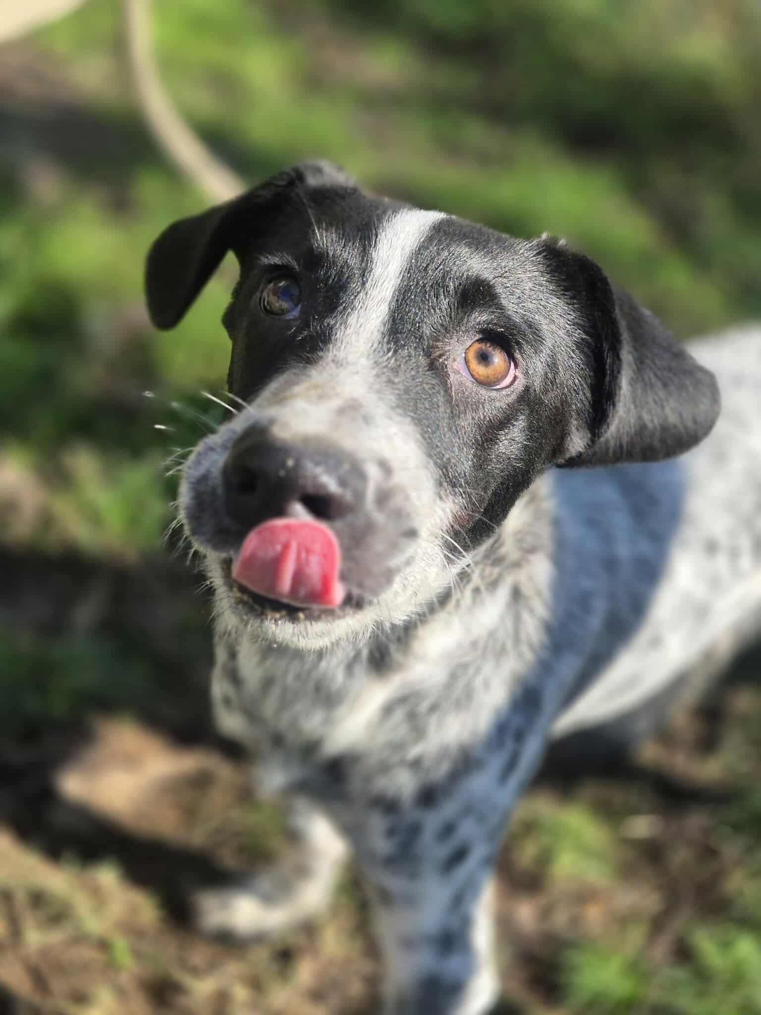 He is such a goofy, happy pup! He is food motivated, and VERY dog / people friendly!