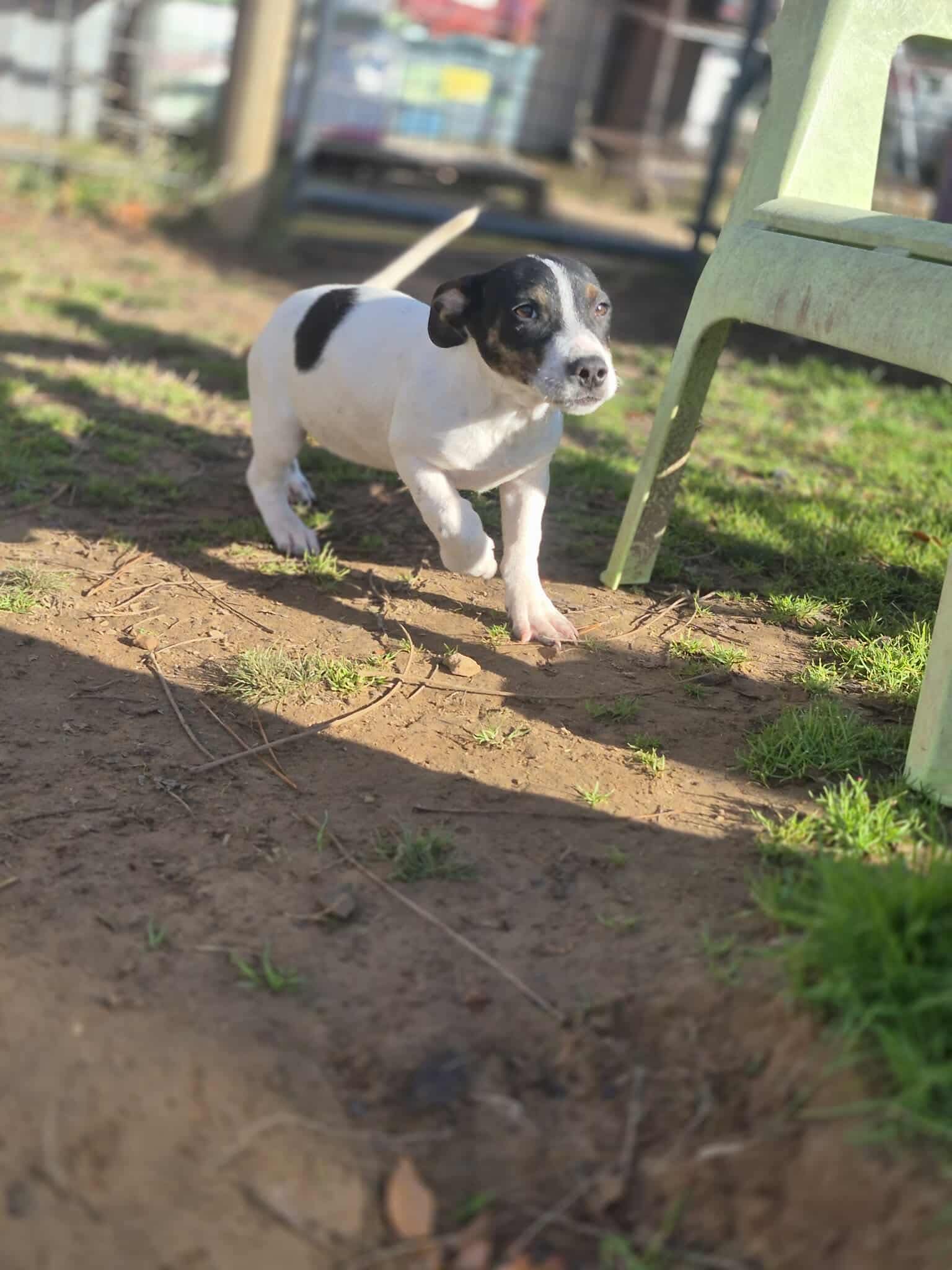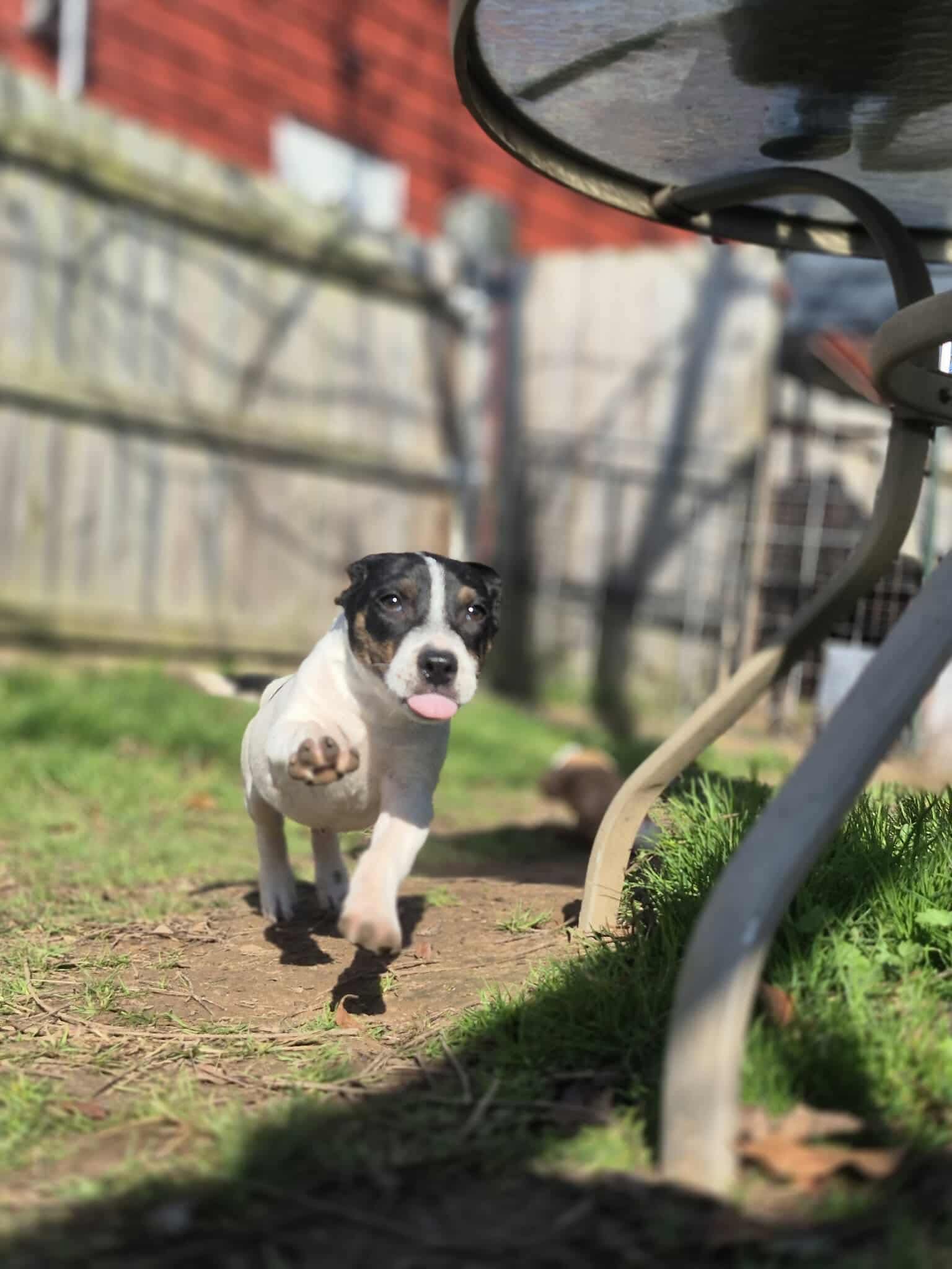 He loves to give you kisses, and really loves to run to you full speed, sometimes he stops in right on time, other times... he smashes into whatever hes running towards! He's a funny little puppy!