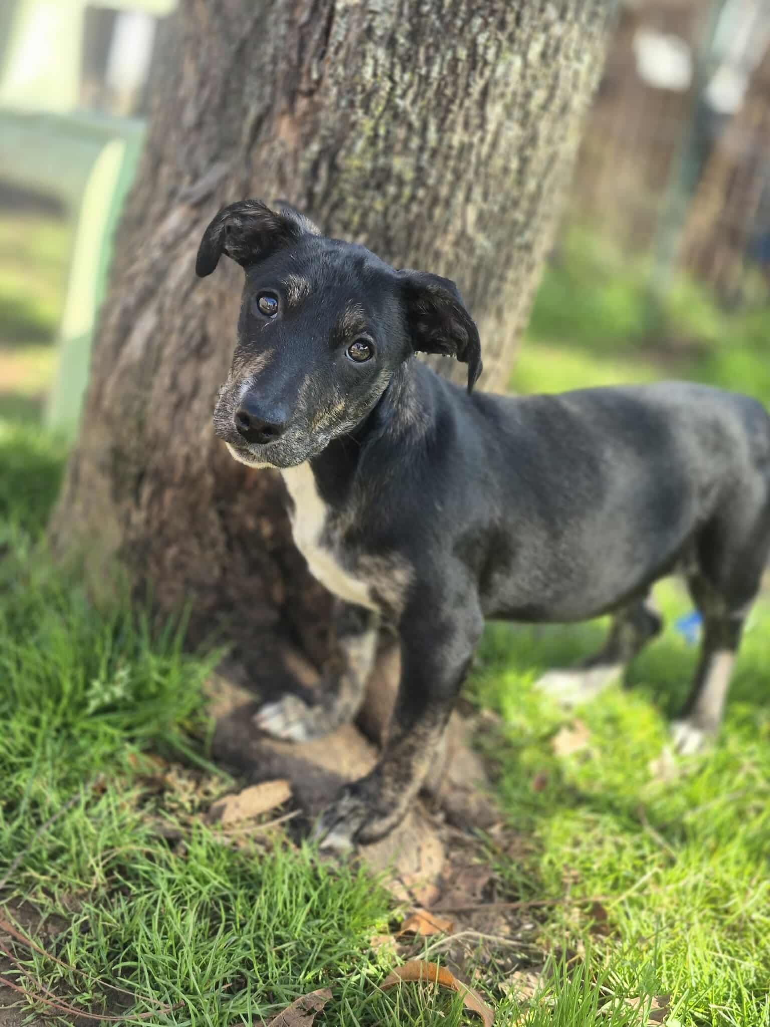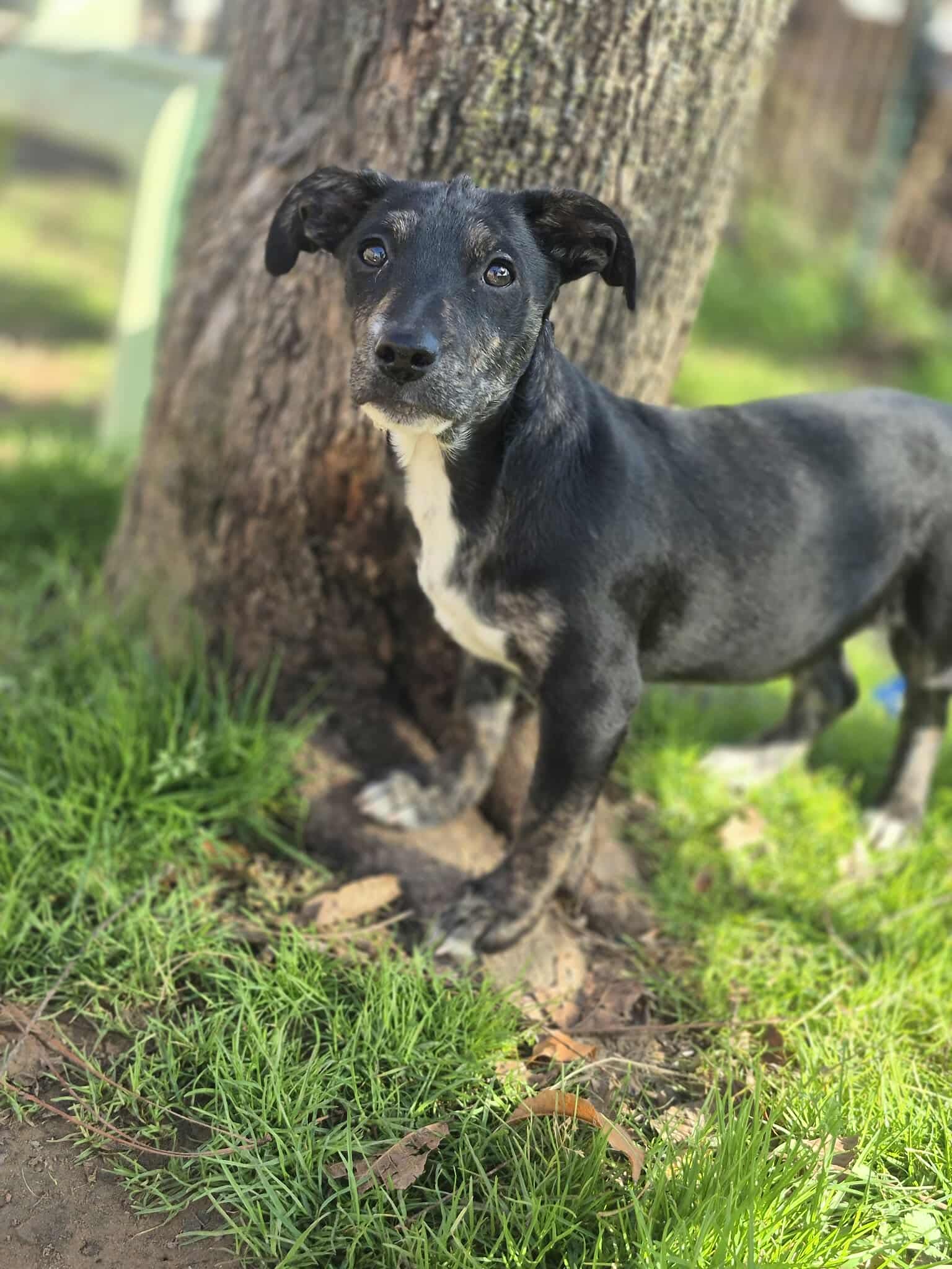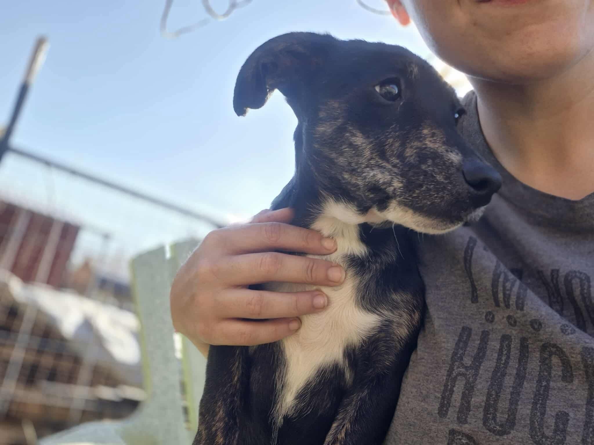 She comes off as a bit timid at first. Loud noises spook her, and she's cautious about walking around. However, once she gets in your lap, and the cuddles start, she turns into a happy little puppy with all the kisses and tail wags you could possibly imagine! She stayed in the chair pretty much the entire time, she just wanted to be held and reassured. She is very loving, just scared of the big world around her.