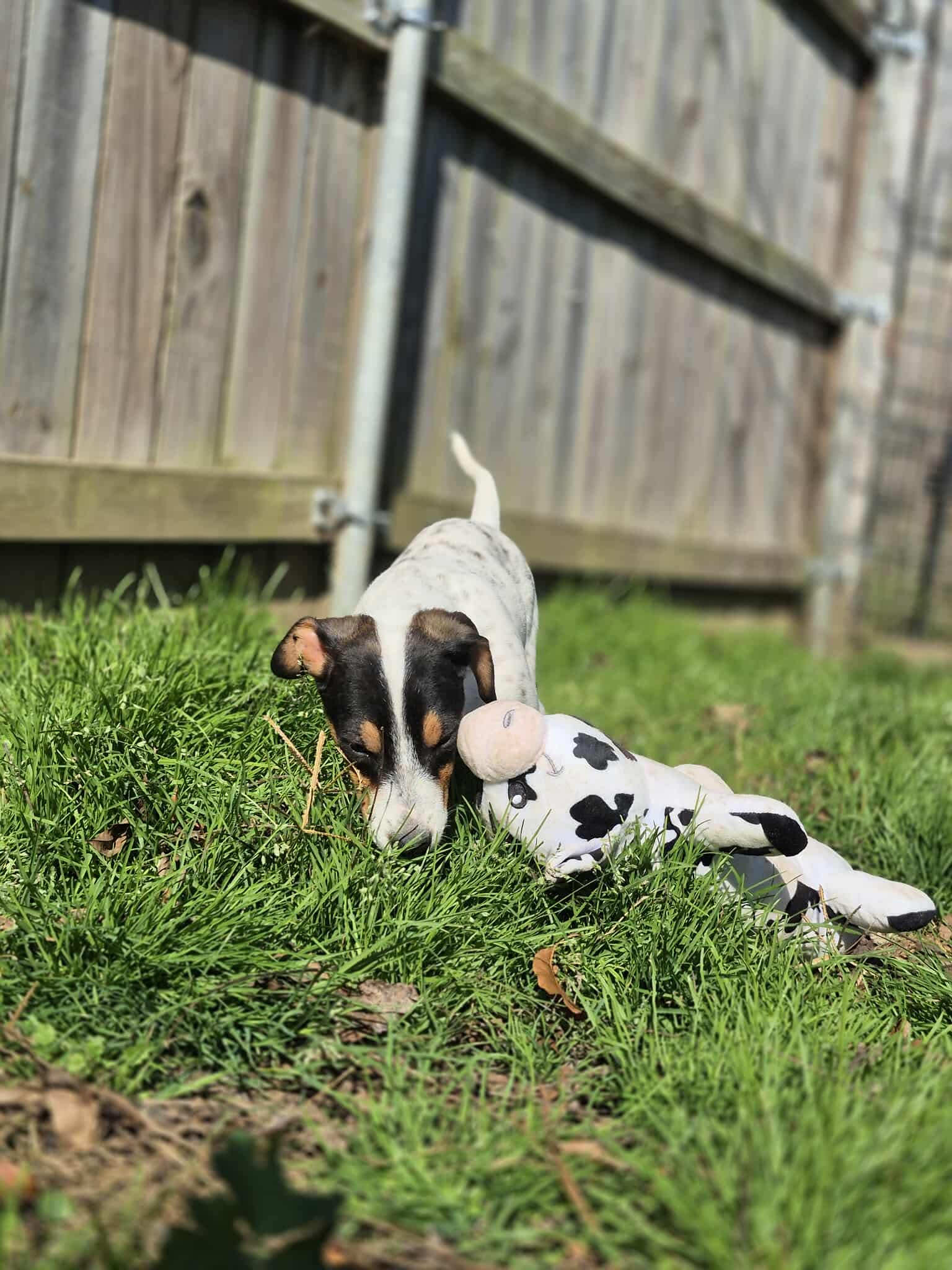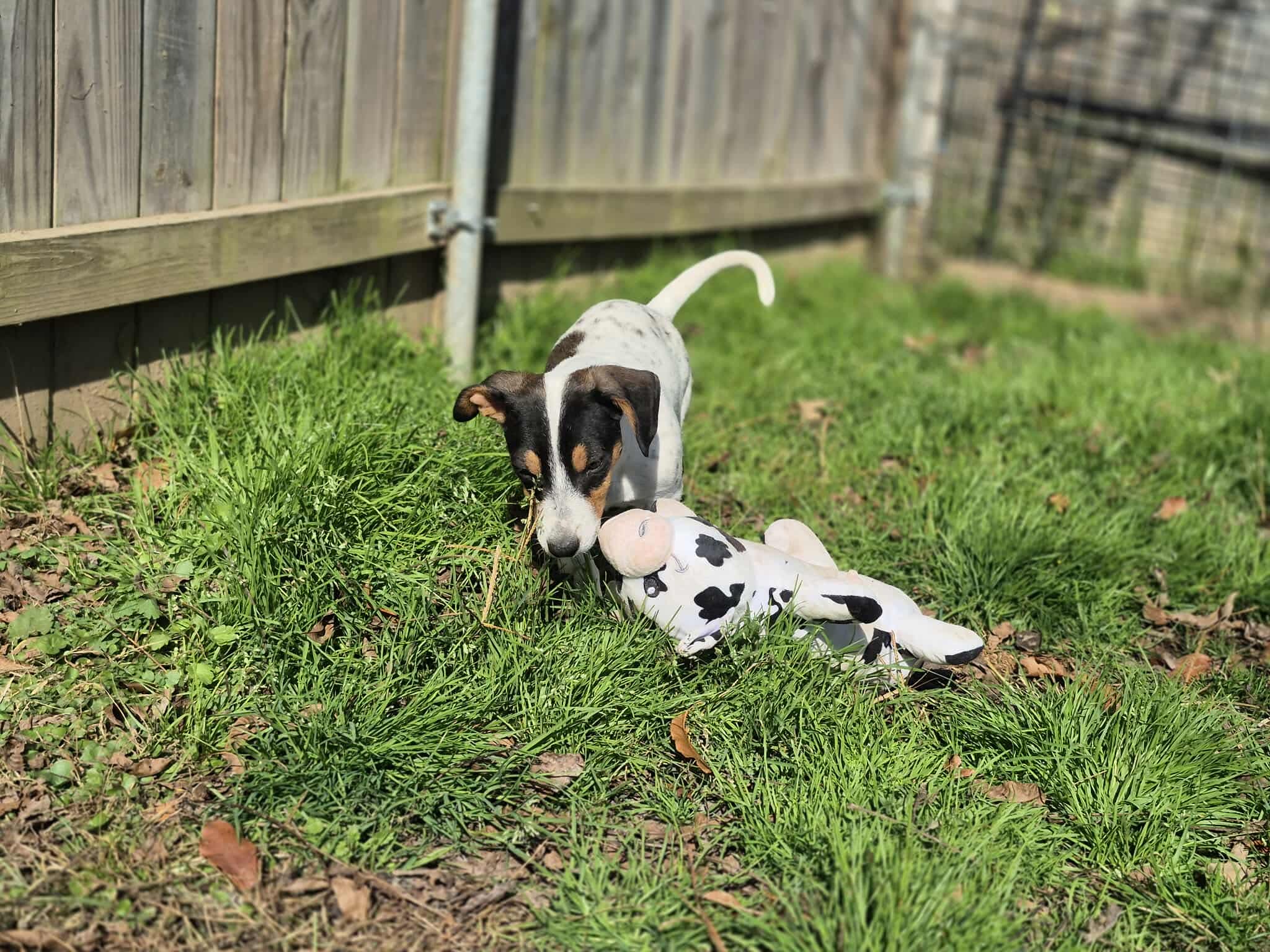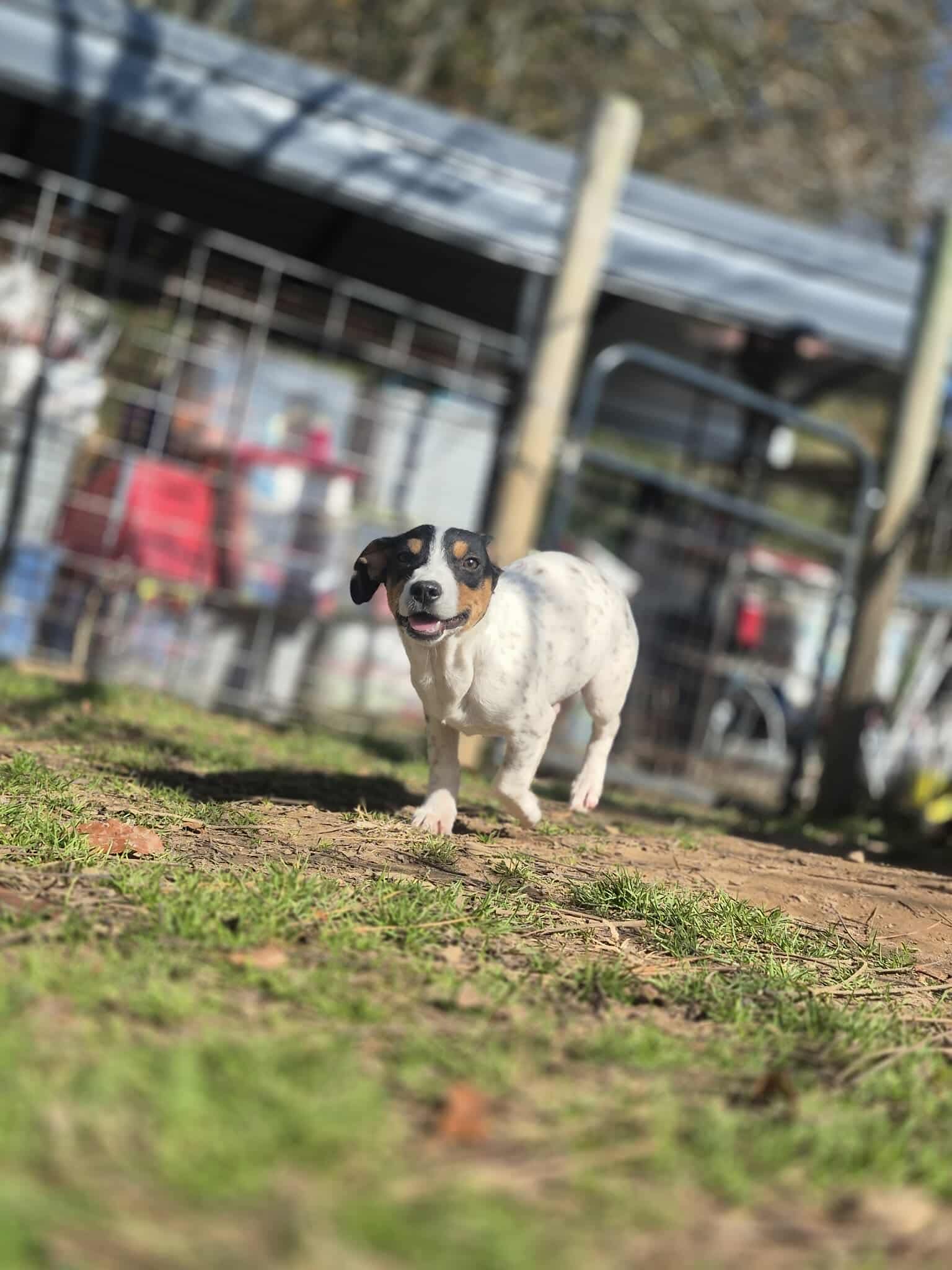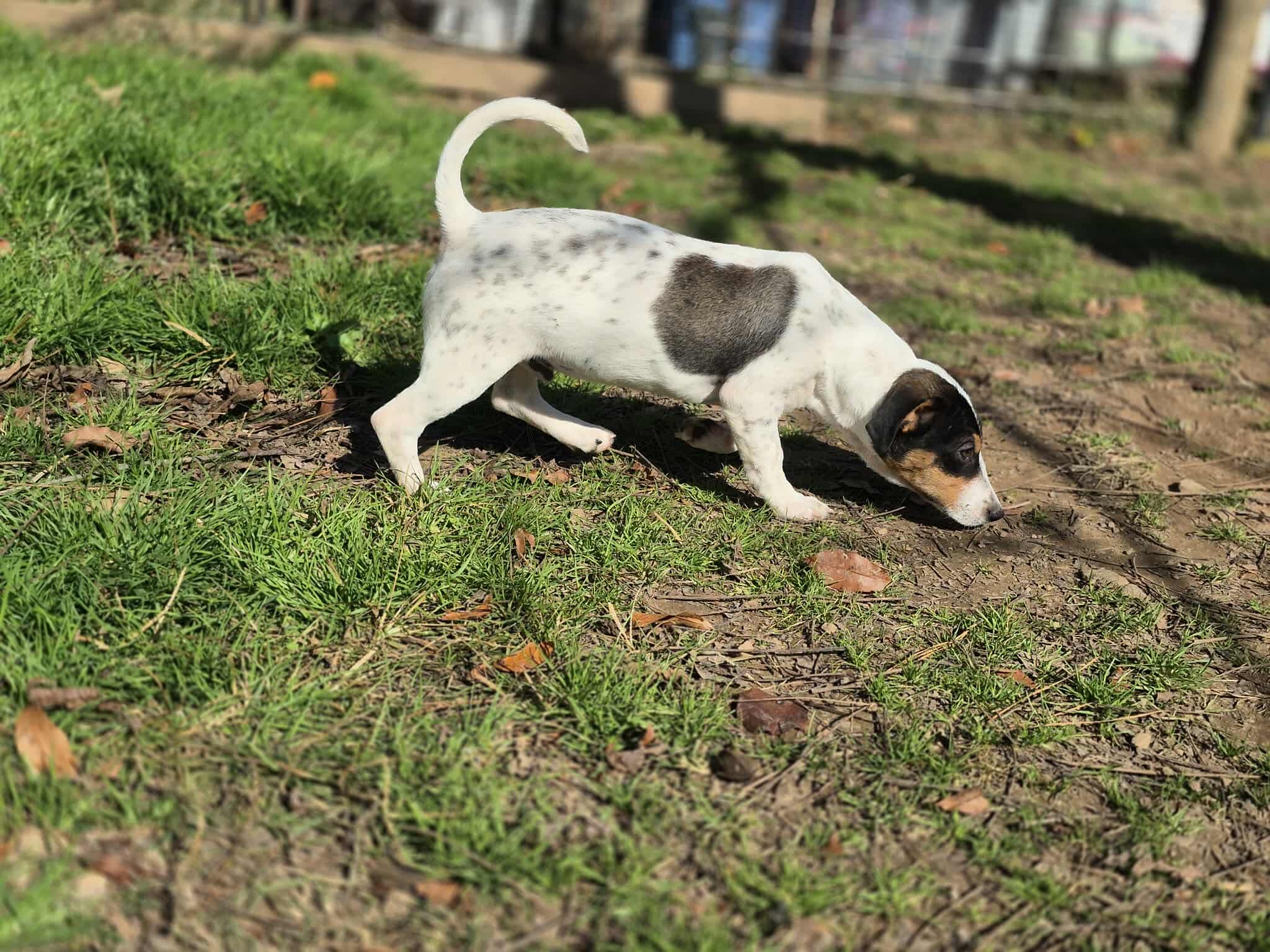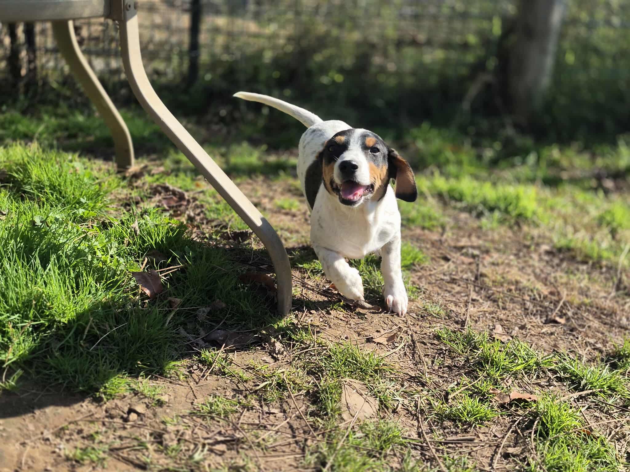 He comes off as bit shy, but it doesn't last long! He just needs a few minutes to sniff everything and get comfortable, then he comes up for love and cuddles. He's such a funny little thing, he prances around the play yard with his tail and nose held high!