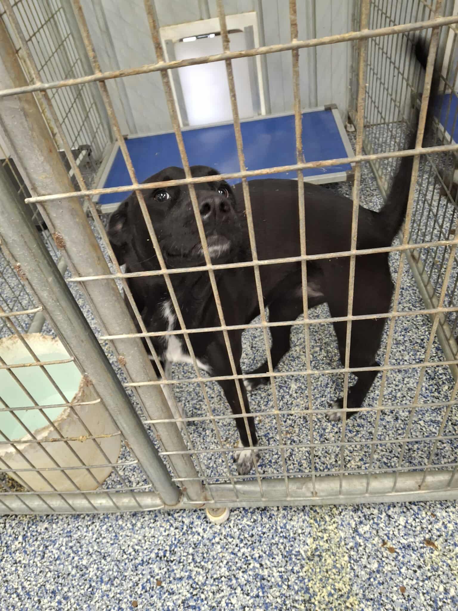 Very dog friendly, but has not been tested around cats. Dixie was abandoned at our vet with nowhere to go. She is fully up to date on all vaccines and proheart. She would love a forever home!