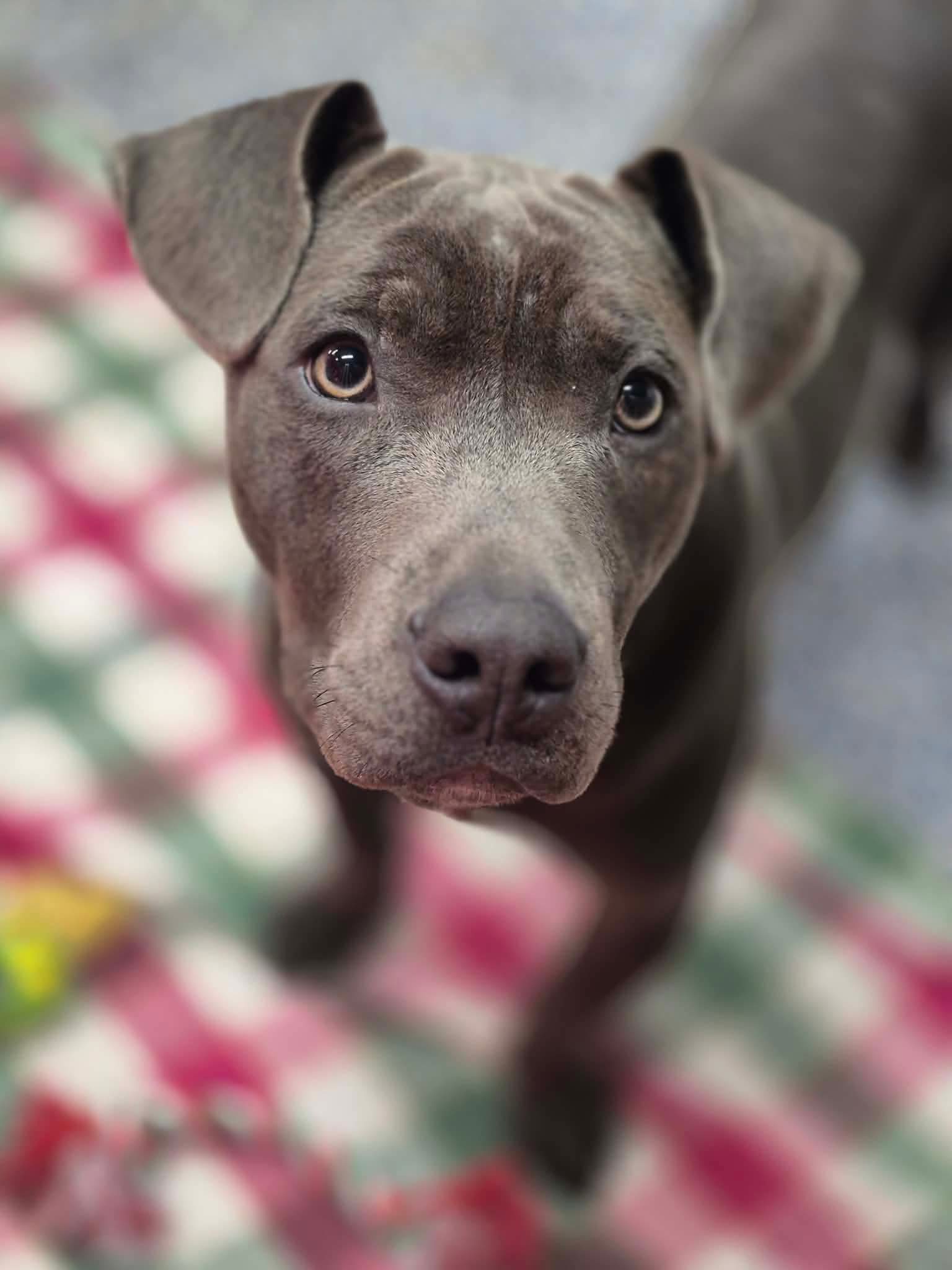 Once he realizes you're friend, not foe, he calms down, his tail starts moving, his eyes widen, he just comes to life. He is such a sweet boy. Knows how to walk on leash ( but can need some encouragement along the way sometimes ), is dog friendly, and seems to be cat friendly, he has been loose in the office with Karen 2 or 3 times now and has done really good! He loves to give kisses, theyre never super big, just enough to let you know he cares. He is going to make an amazing best friend to someone. He is wonderful 🥺♥️