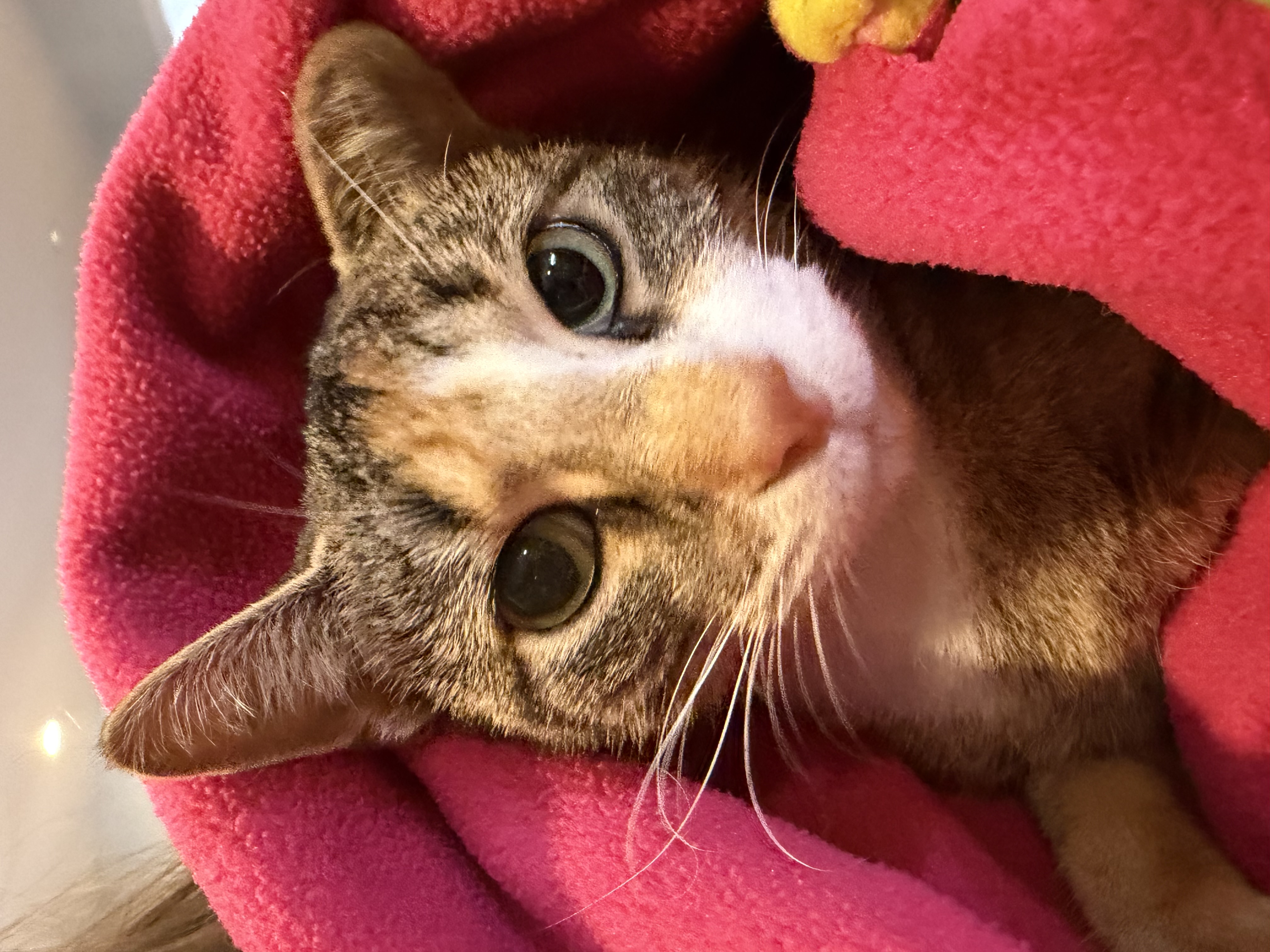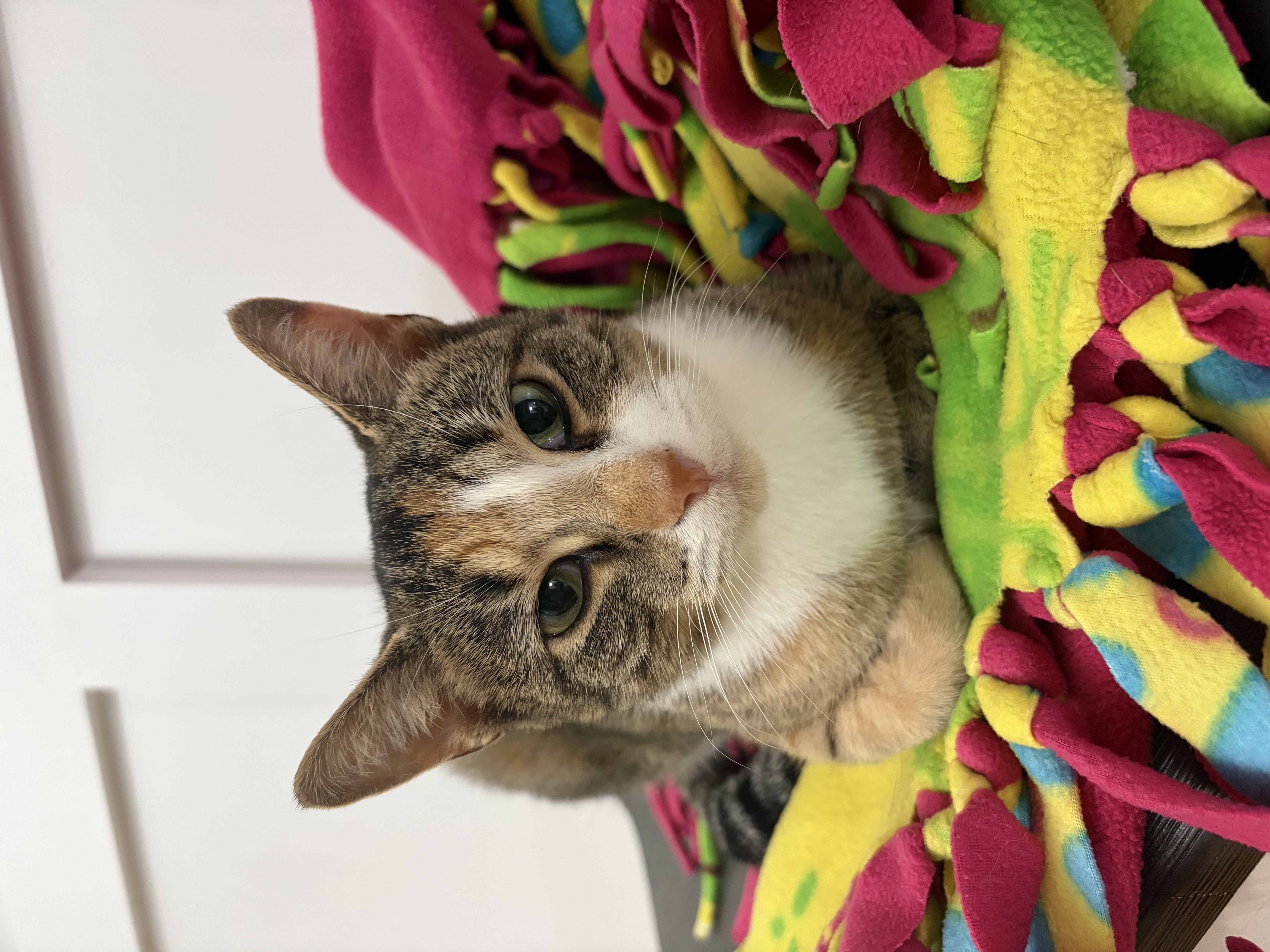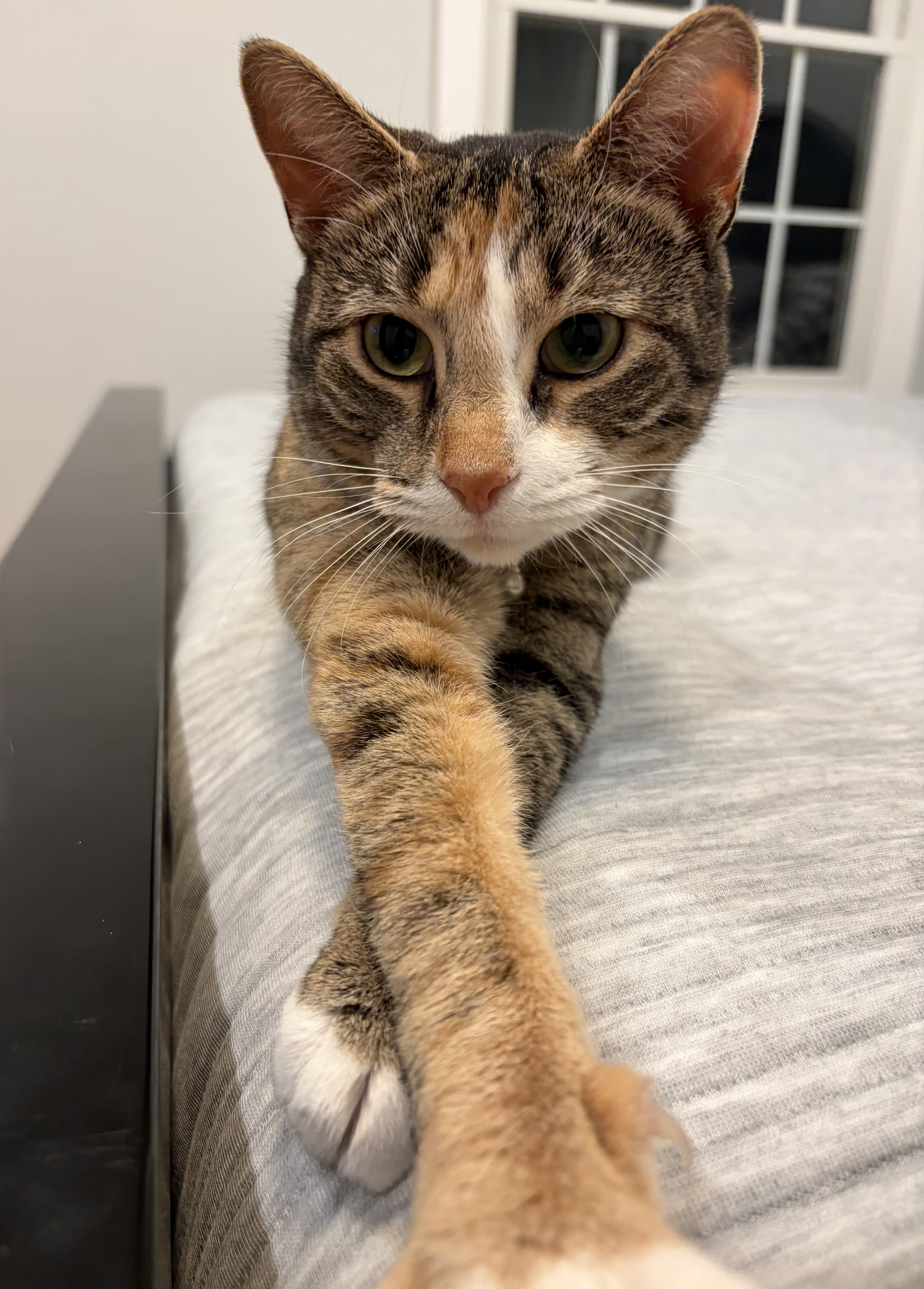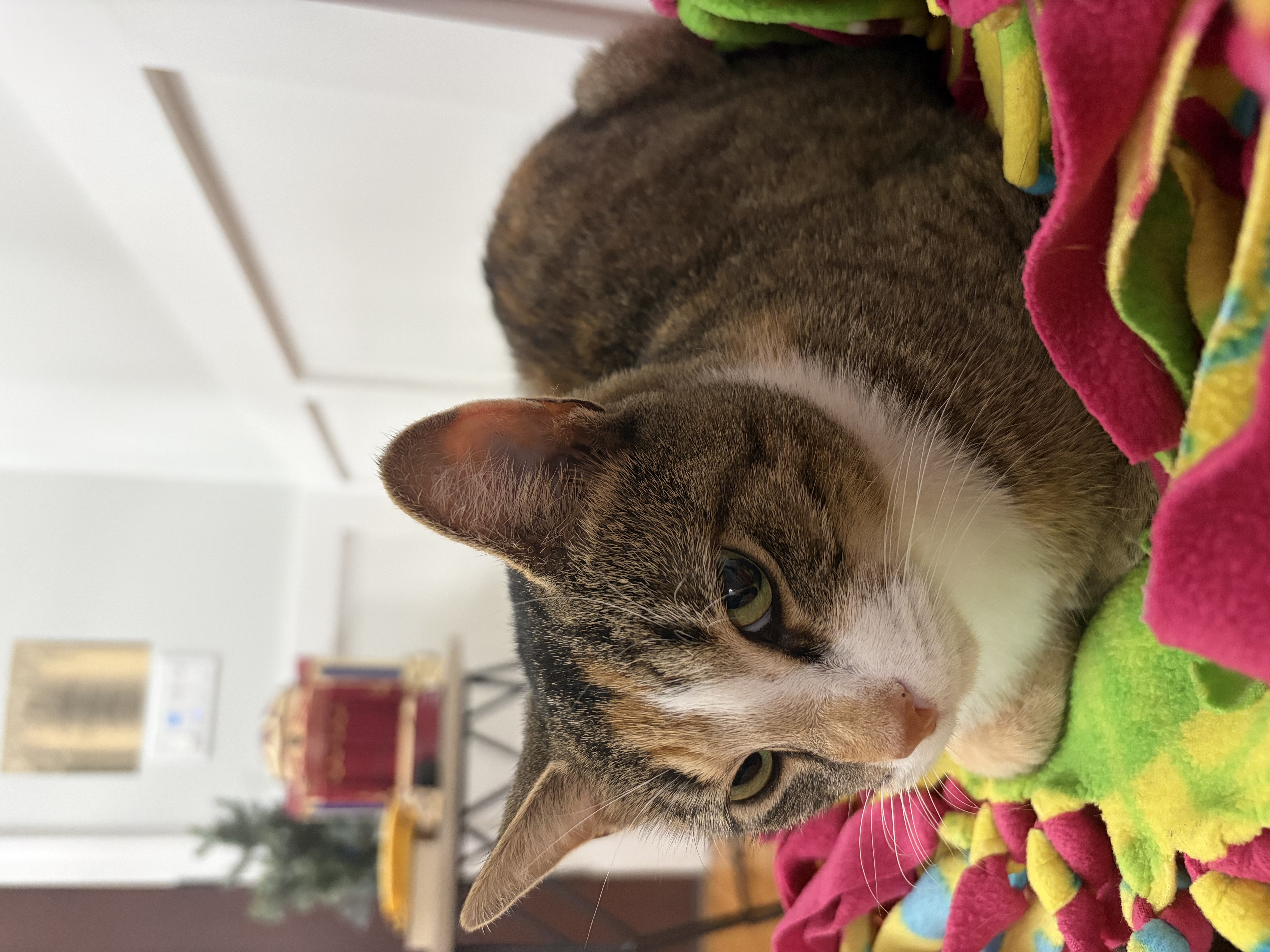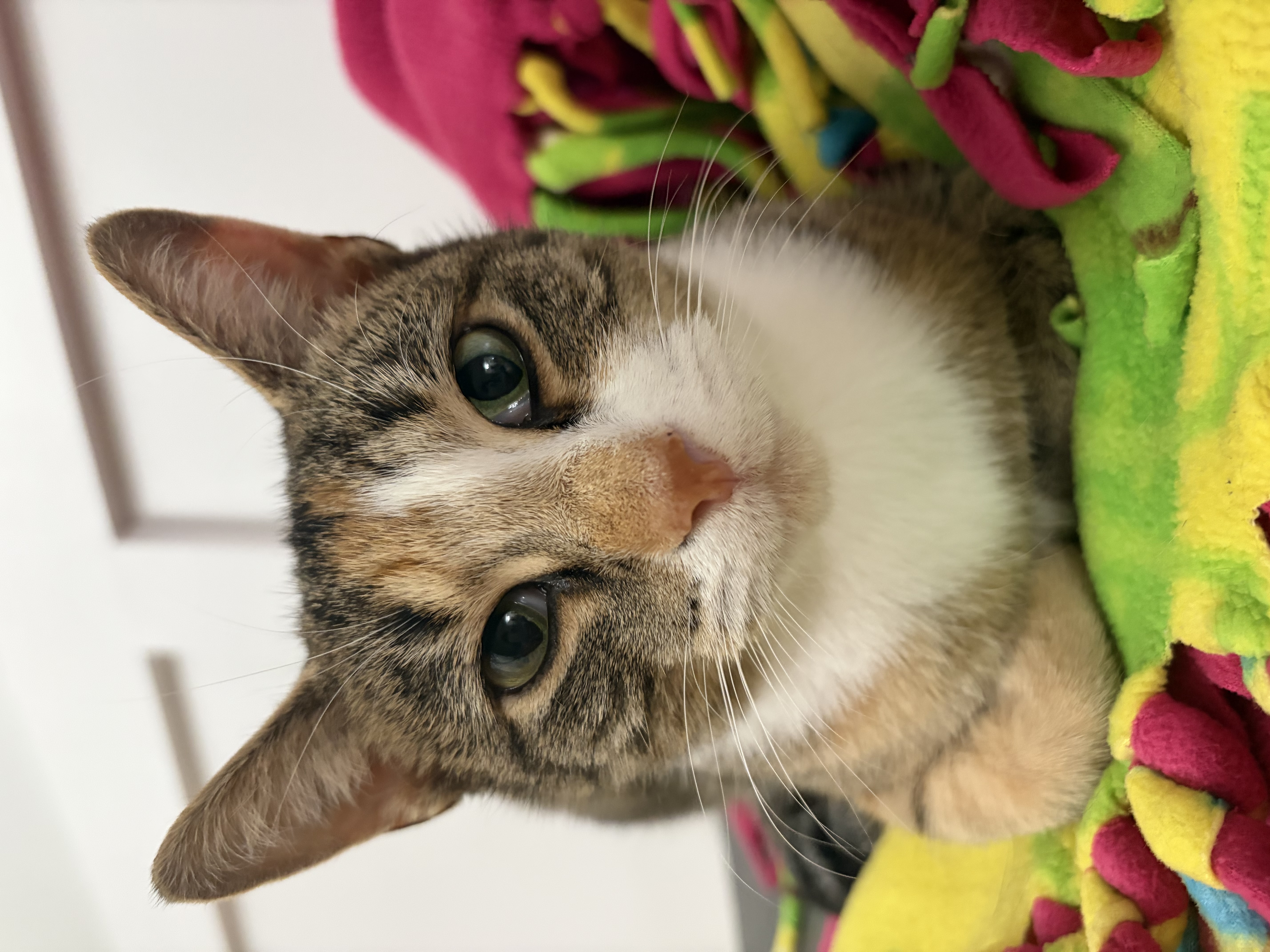 Update: Elpitha is super sweet and friendly. She loves being pet and she starts purring as soon as you go near her. She has a good appetite. She uses her litter box. She will happily live in a home with no other pets. She doesn’t immediately get along with other cats but with a slow introduction she has and is currently sharing a room with 3 other cats without any issues. She does not feel comfortable around dogs.