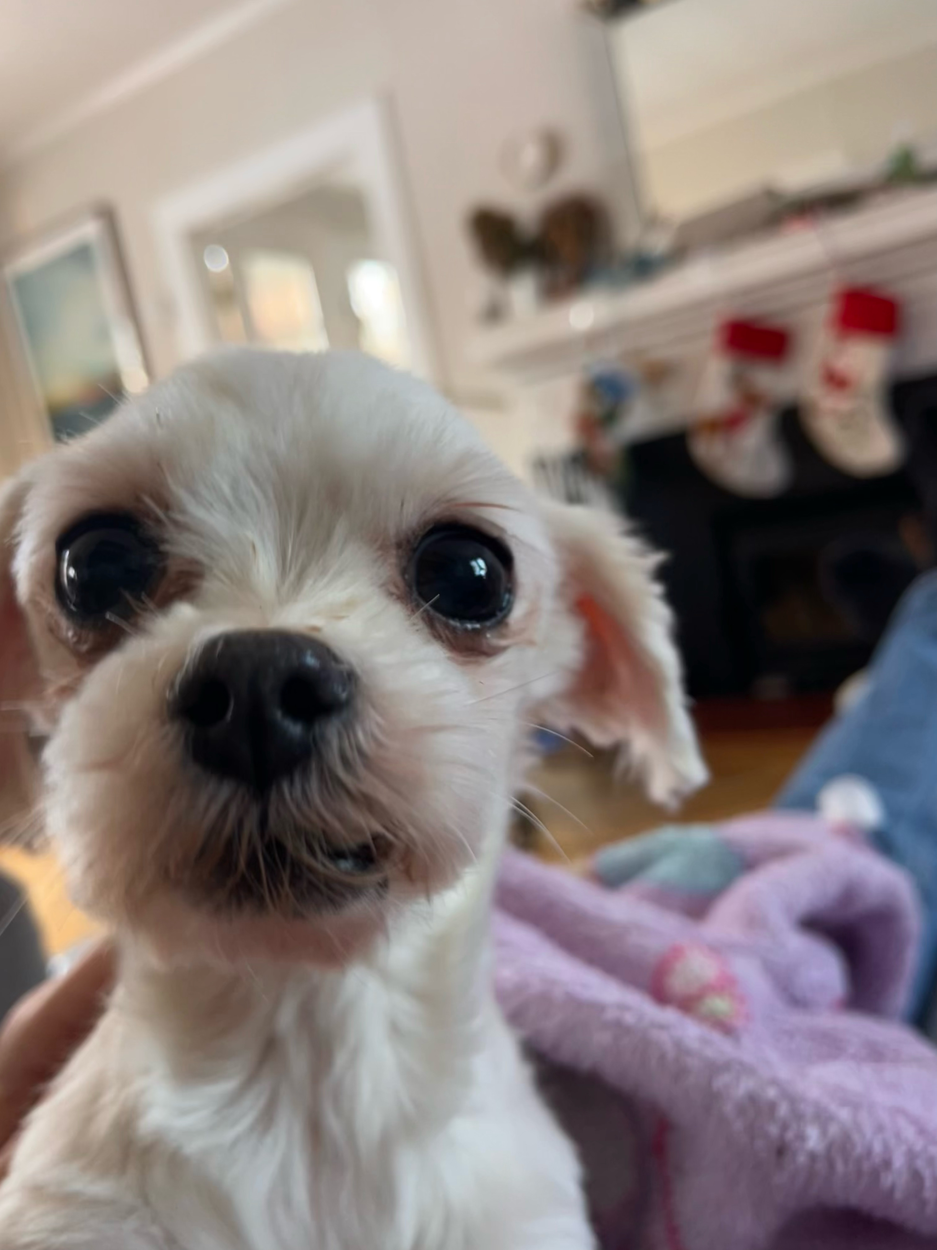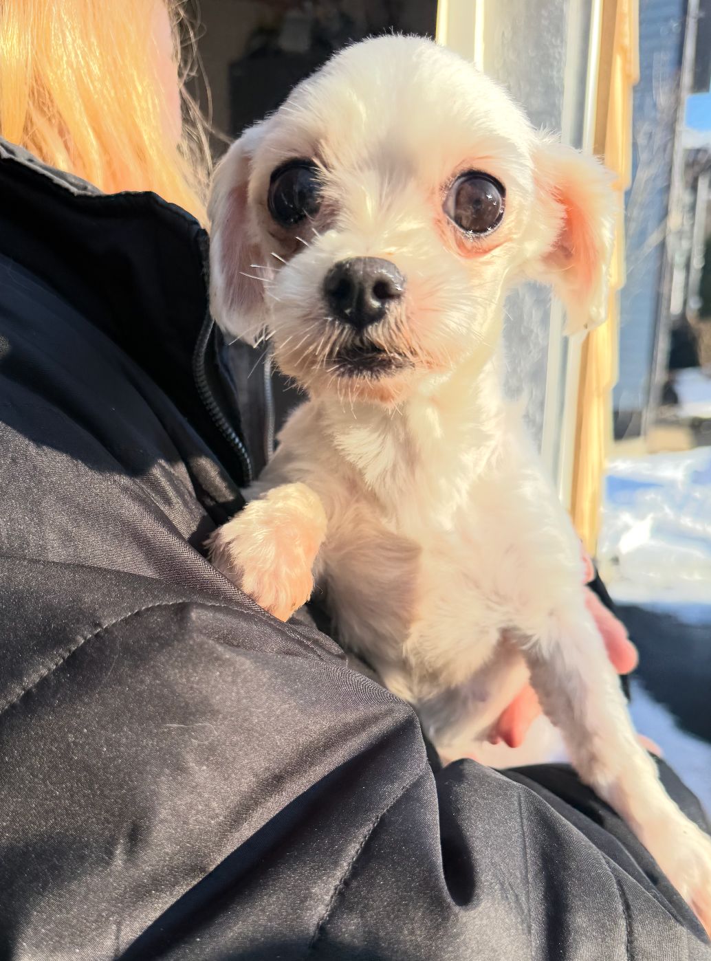 Personality: Snowflurry is a gentle, affectionate girl who finds comfort in being close to her people. She loves to feel safe in someone’s arms and will happily wag her tail when you speak to her with kind, loving words. Her favorite place right now is curled up on a warm lap, snoozing peacefully and soaking in all the love. She has a calm, tender nature and truly enjoys quiet moments of connection with those she trusts.