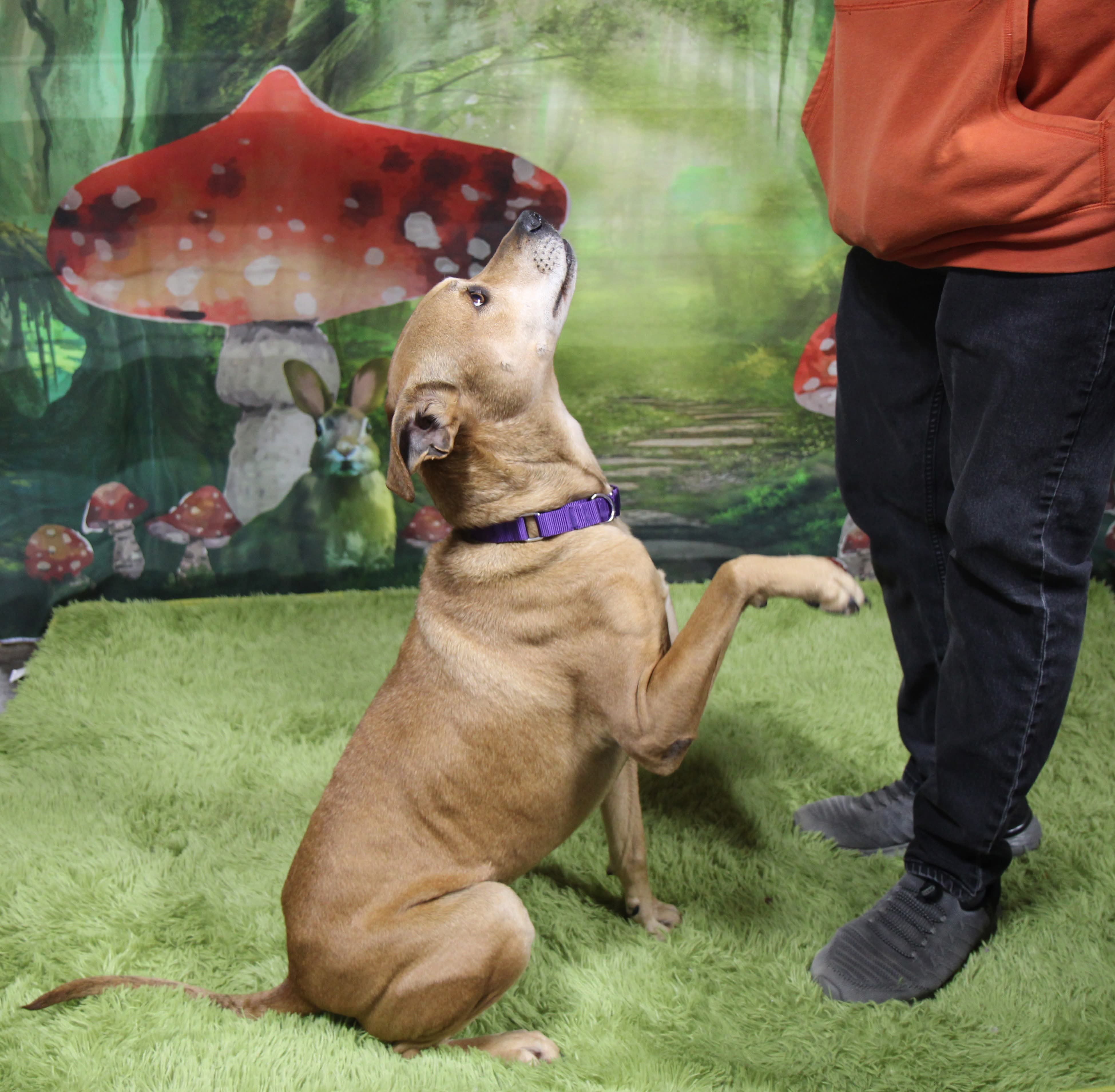 Stella is a people-loving, tail-wagging sweetheart who is always up for affection—especially booty scratches, which she considers an essential daily activity. She’s highly treat-motivated and already knows “sit” and “shake,” making her both smart and eager to please.