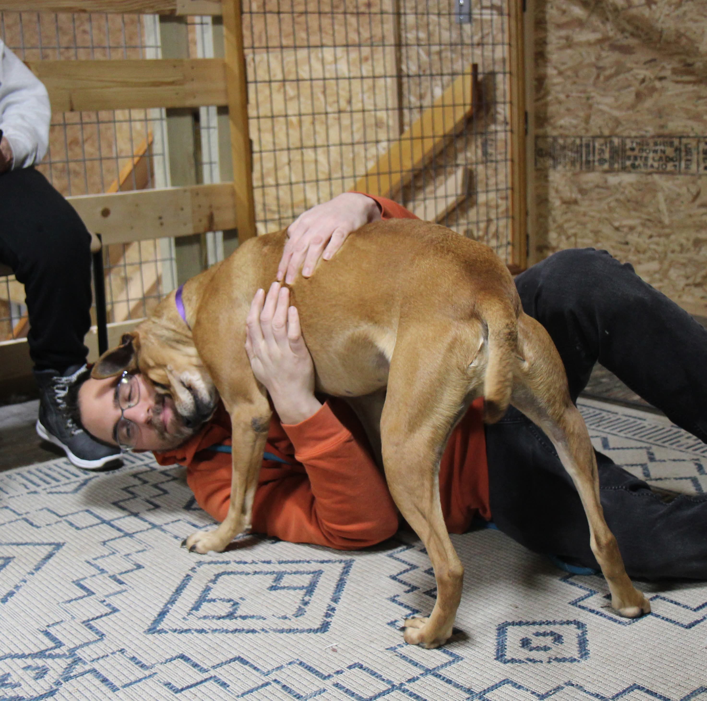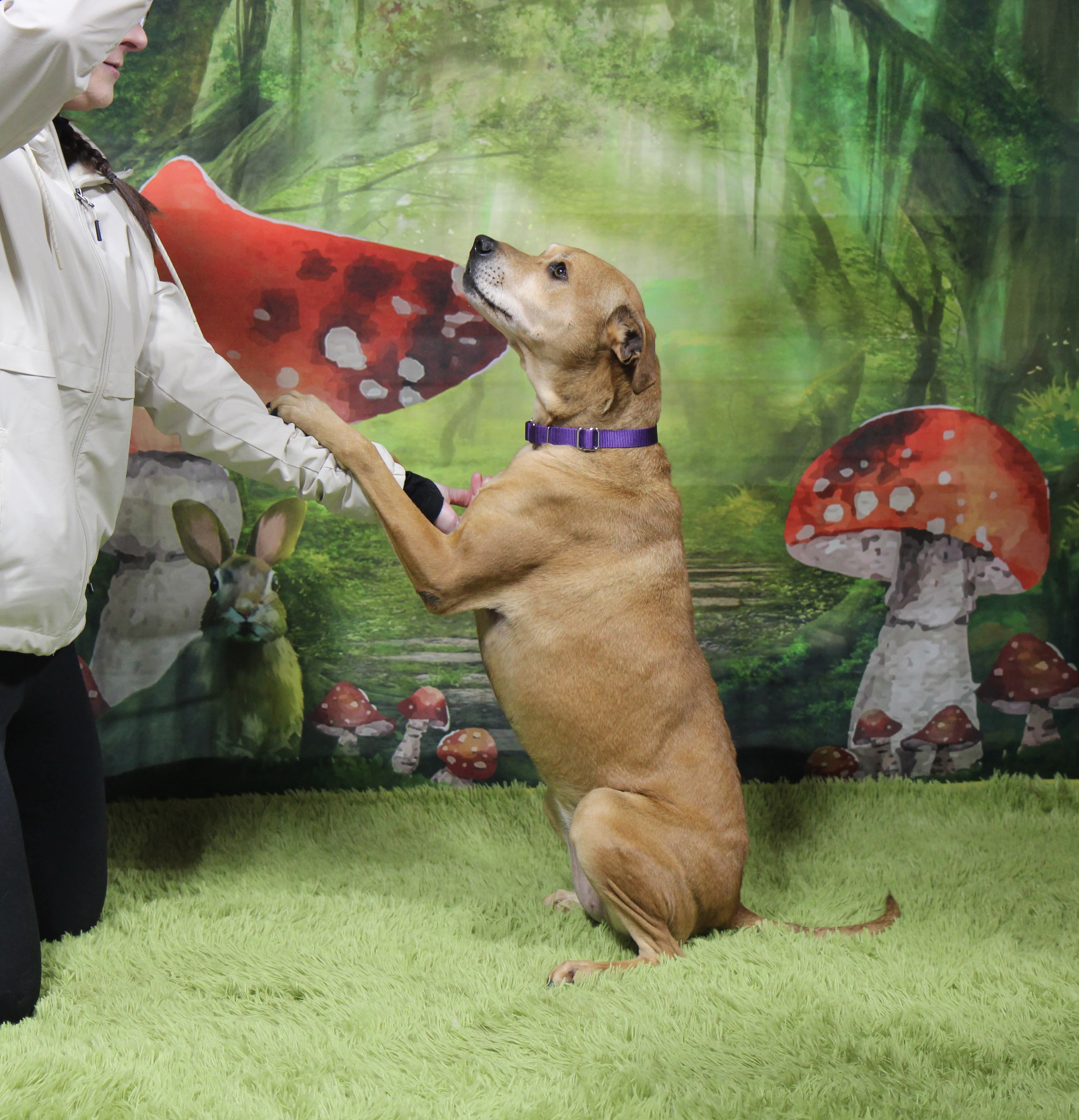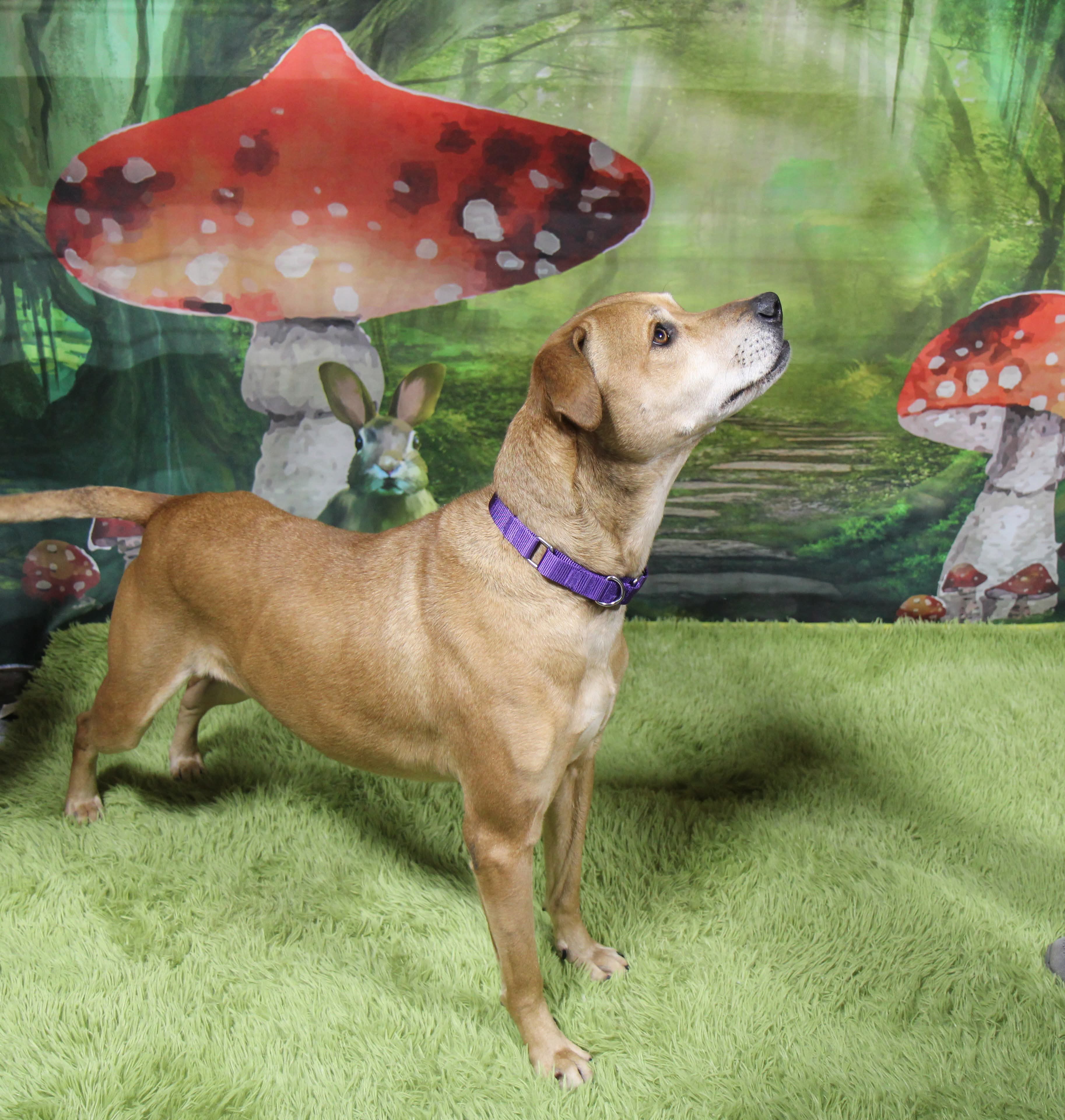 Stella is a 49-pound bundle of charm with a golden coat, a curious nose, and a personality that’s impossible not to love. We think she may be part hound, part lab and who knows what else? Whatever mixes of breeds she is, Stella is a very sweet smart gal!