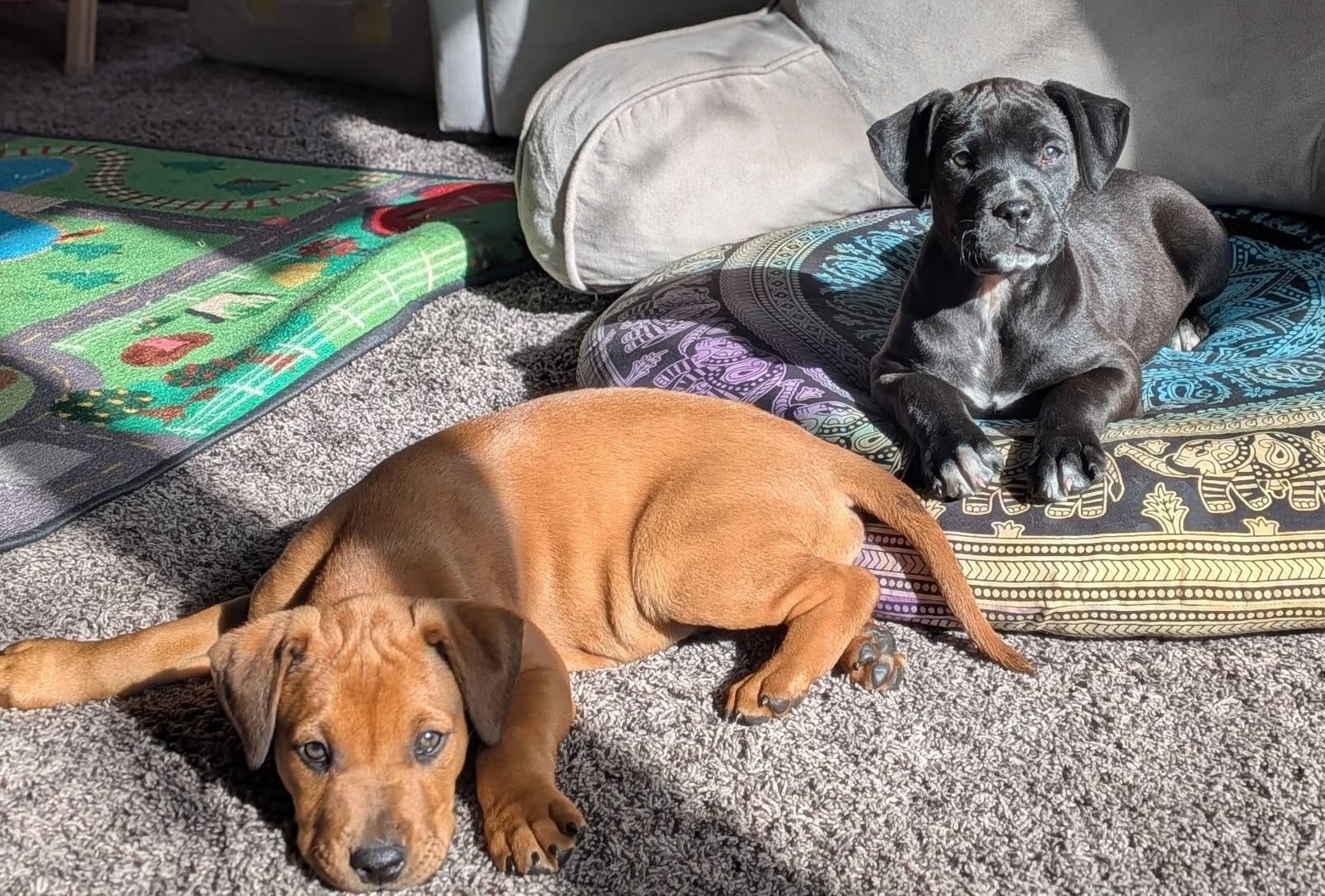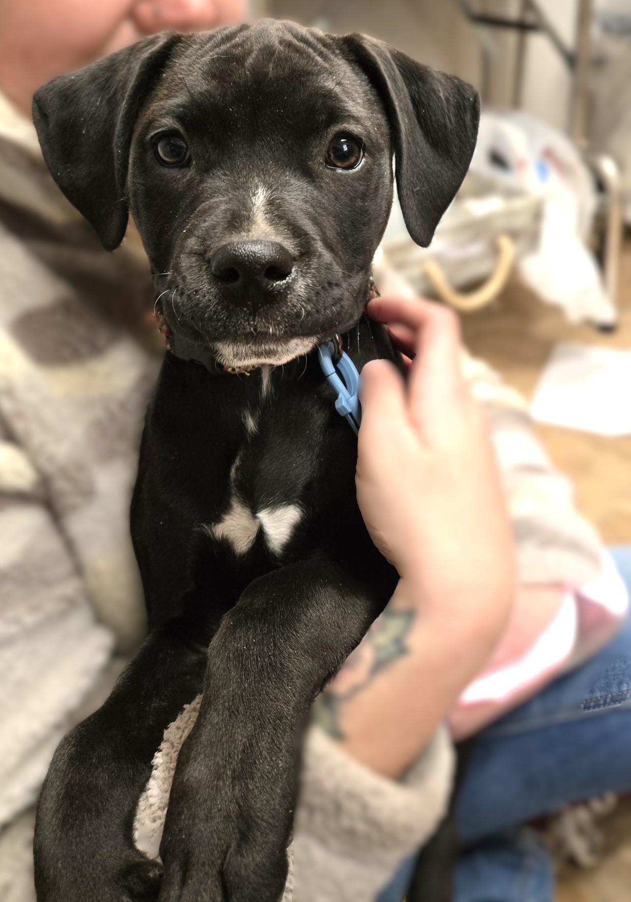 Blossom(black one) is the more chill of the two. She loves to cuddle on your lap and fall asleep but has a little more trouble walking on the leash as she seems a bit timid.