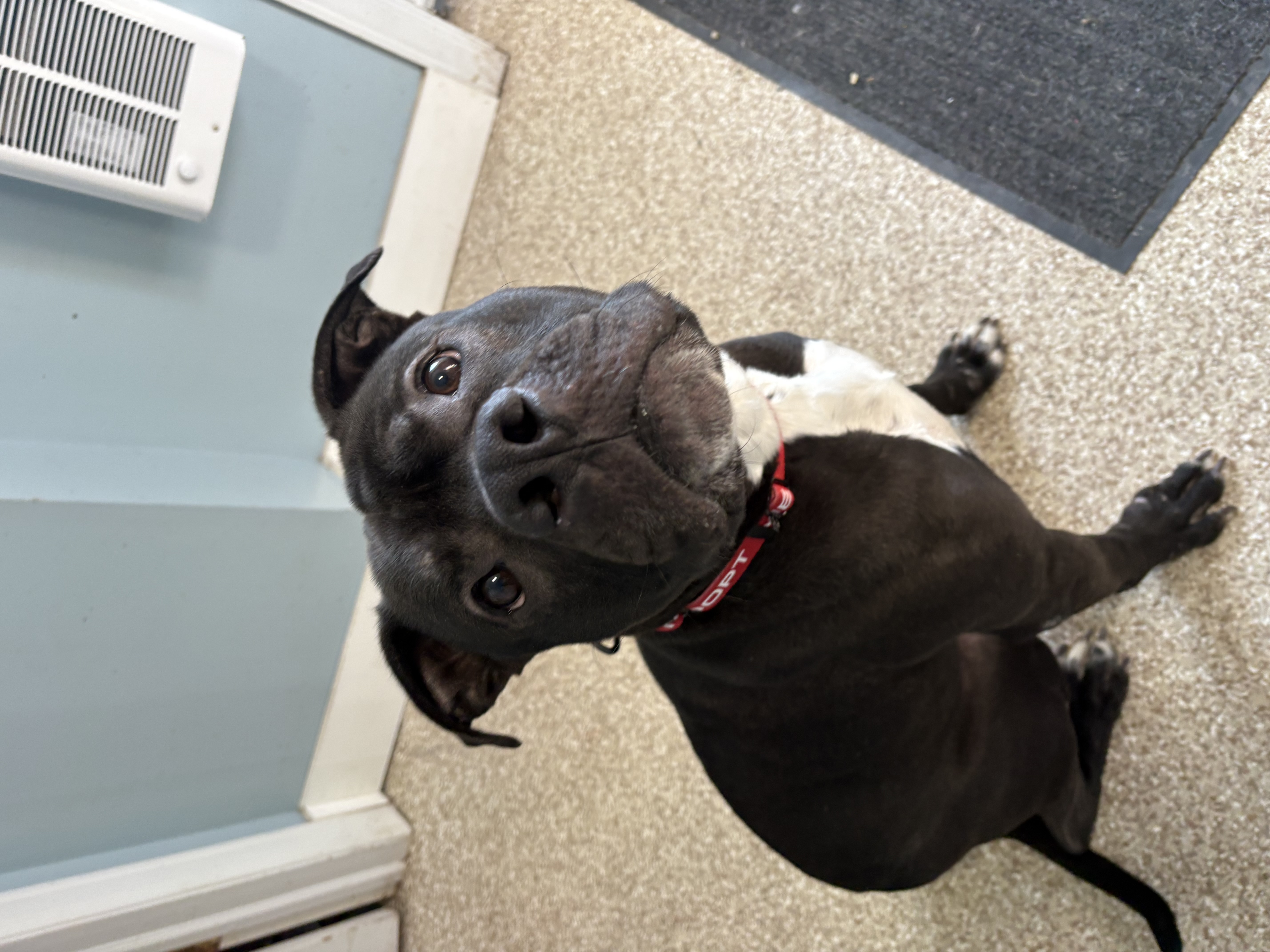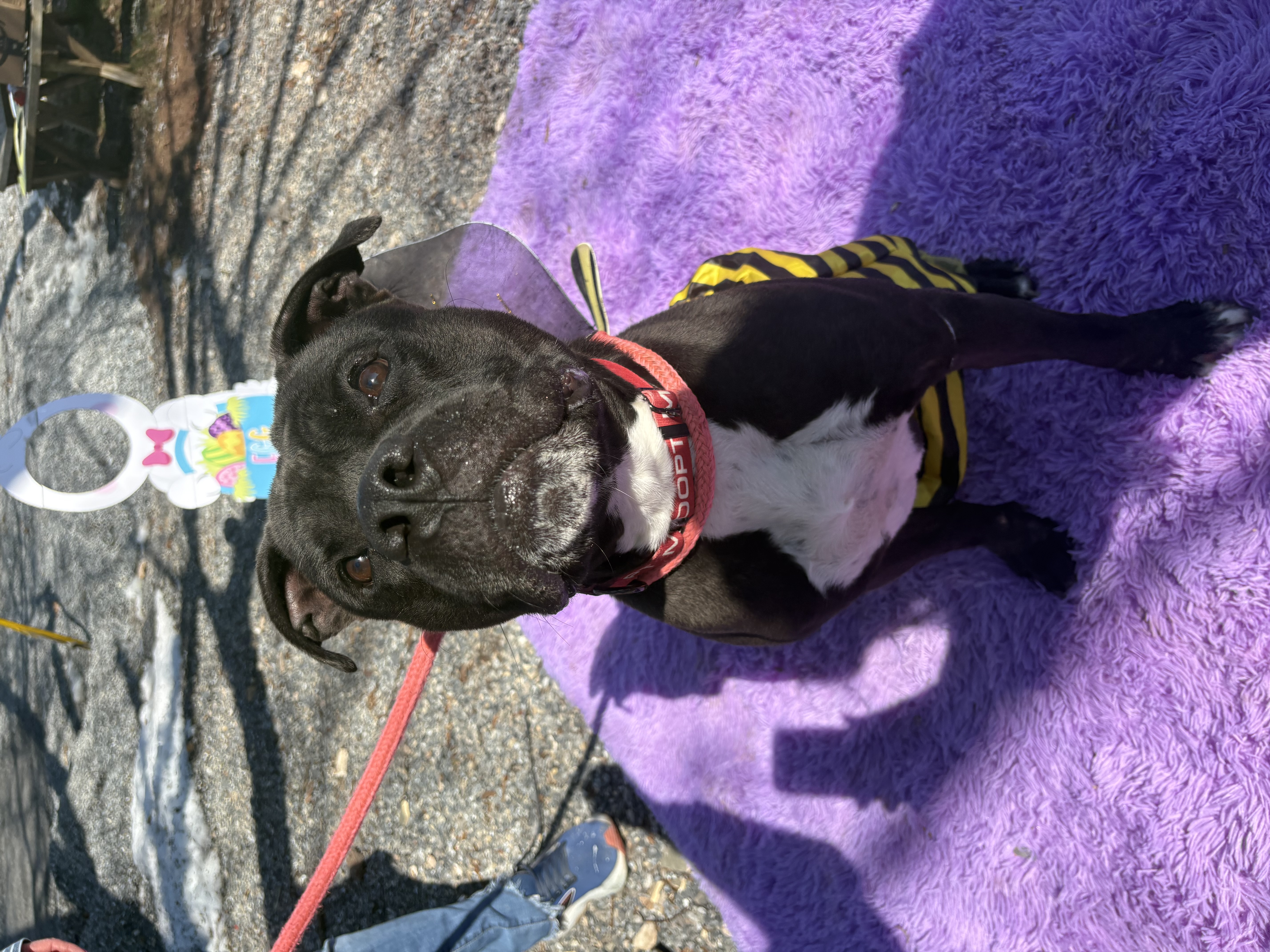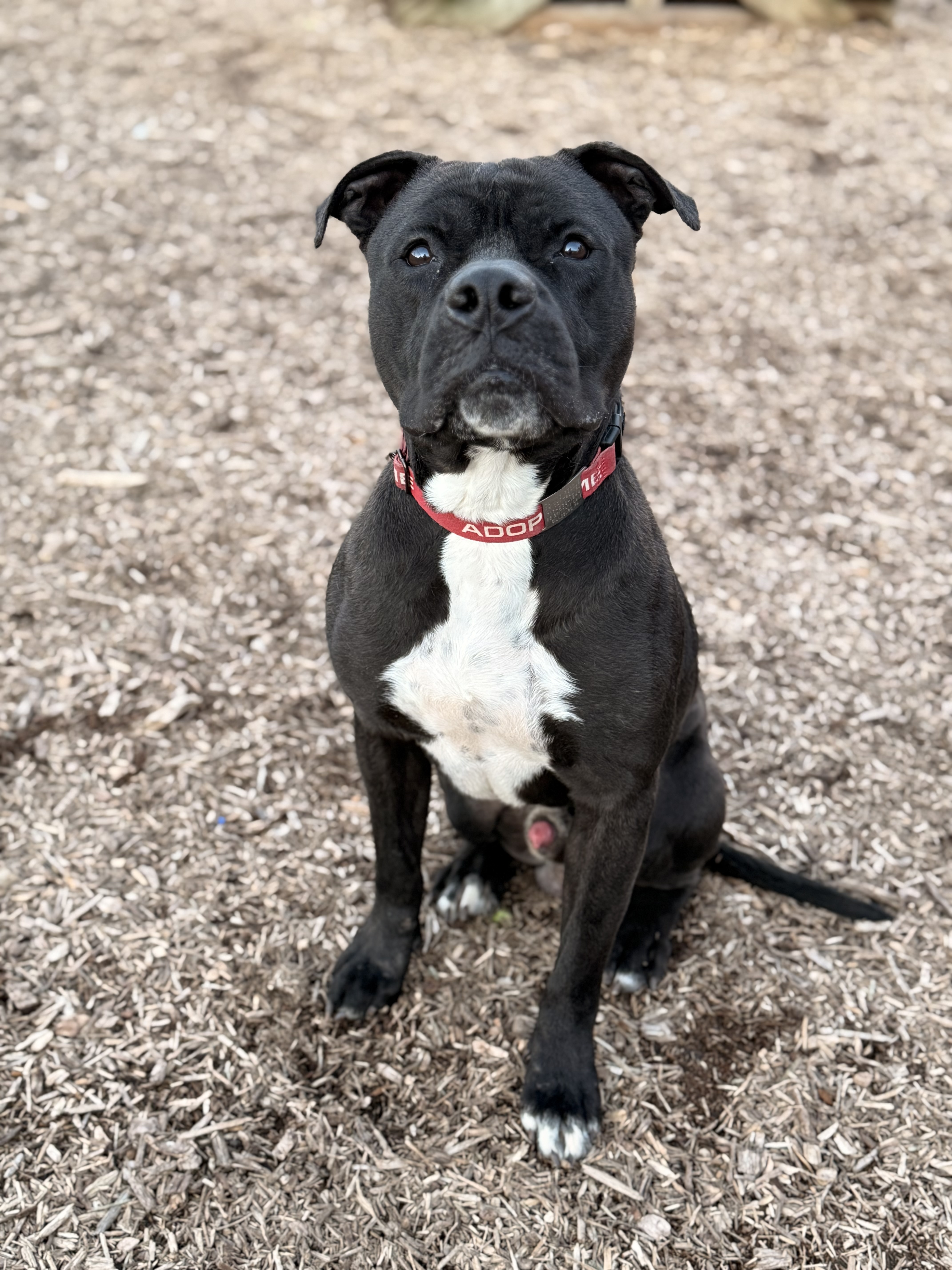 Say hello to Rocky, a 4-year-old black Pit Bull with a heart as big as his smile! Rocky is friendly, full of love, and ready to find his forever family.