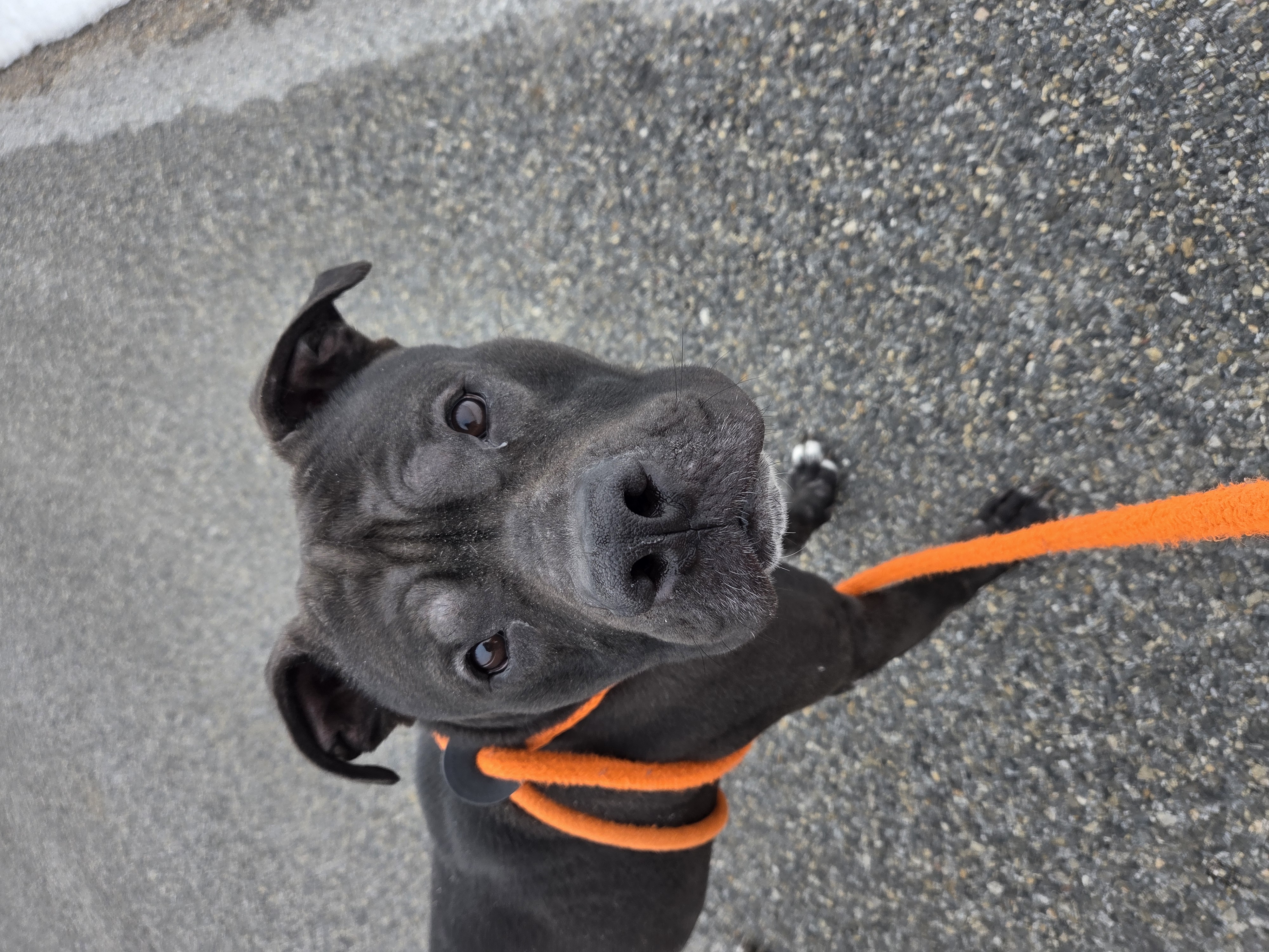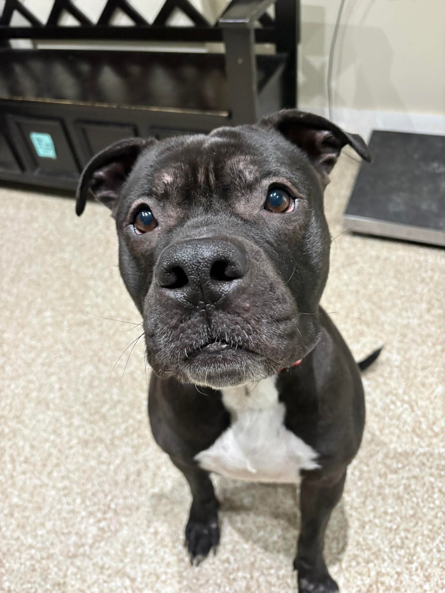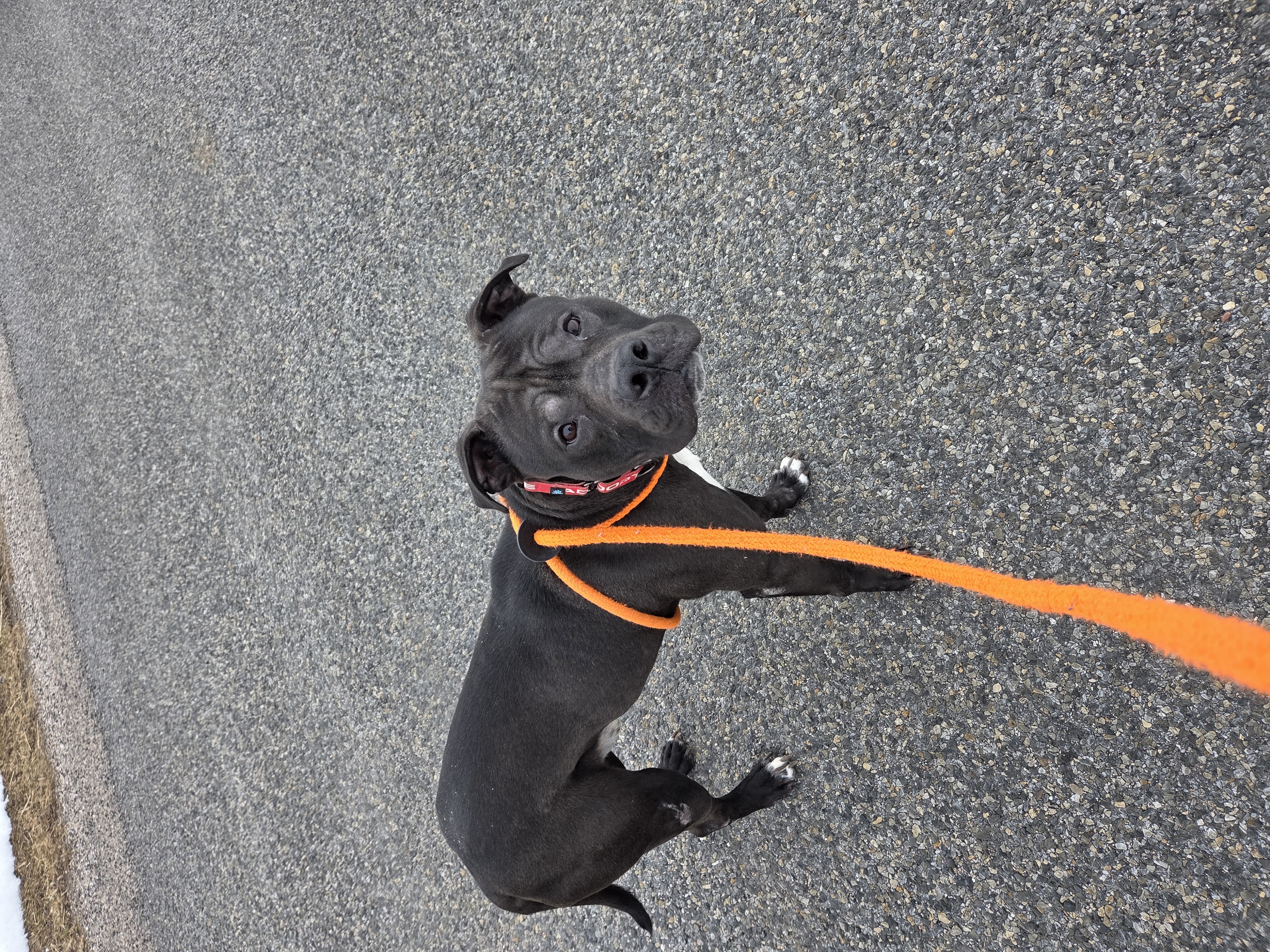 Say hello to Rocky, a 4-year-old black Pit Bull with a heart as big as his smile! Rocky is friendly, full of love, and ready to find his forever family.