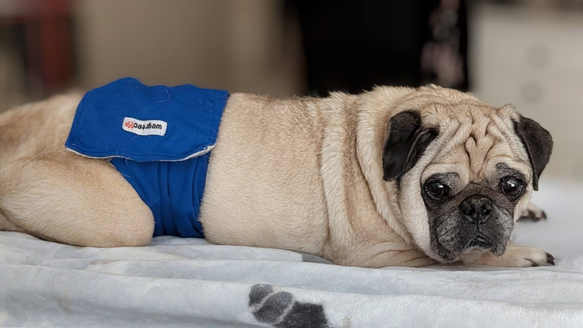 Originally rescued in 2015, Cori was returned after 10yrs due to his owner's health issues. He is very regimented (he'll let you know if you're running late on feedings). He is on a special urinary tract health food and is a gobbler. He has like 5 teeth and breath that would scare off a skunk. Cori wears a belly band at night, napping and while home alone. He cannot hold it like his younger self could but he does try and does let you know when he needs to go out, he just doesn't make it sometimes. Whether this is from old age or his bladder health, we don't know yet.
