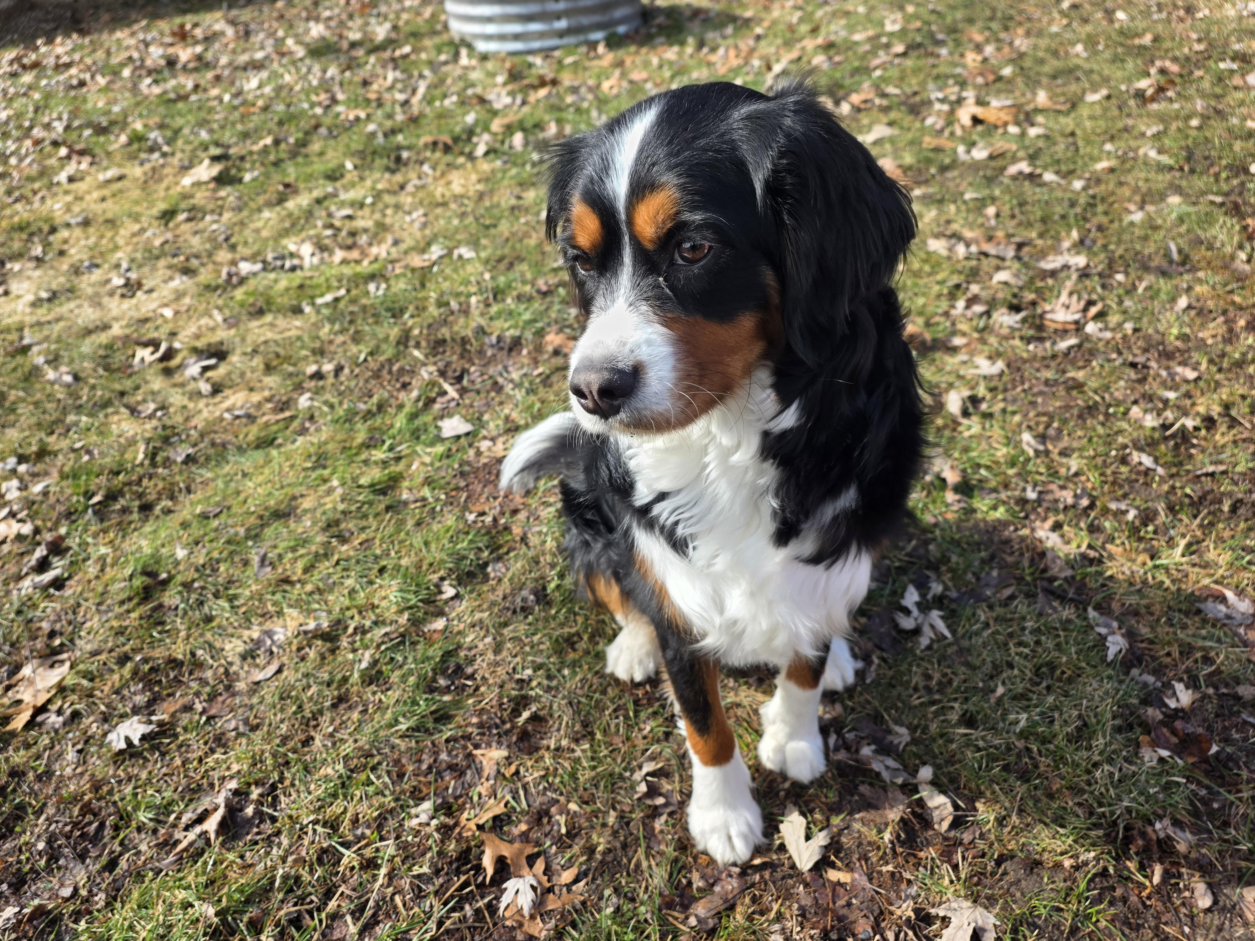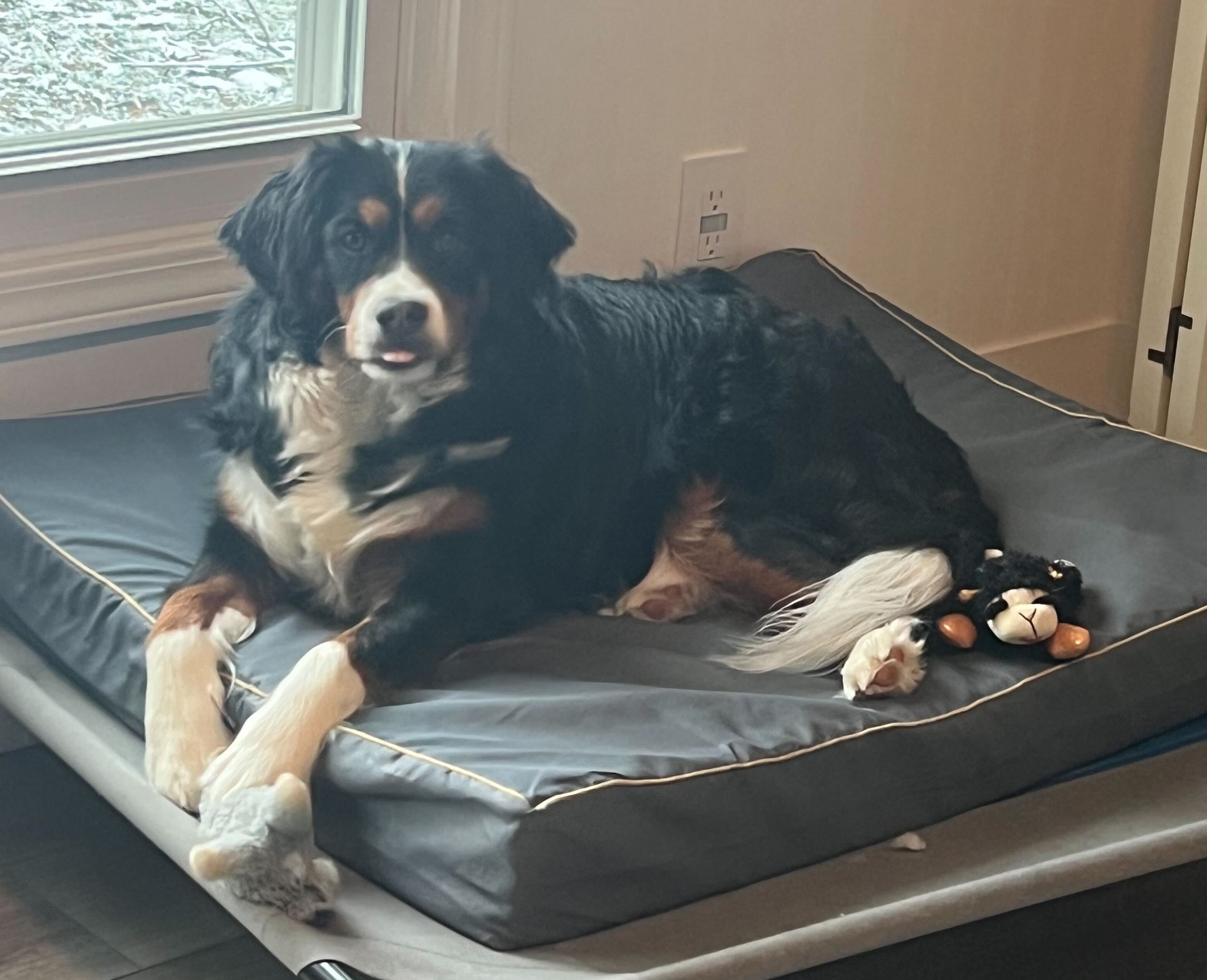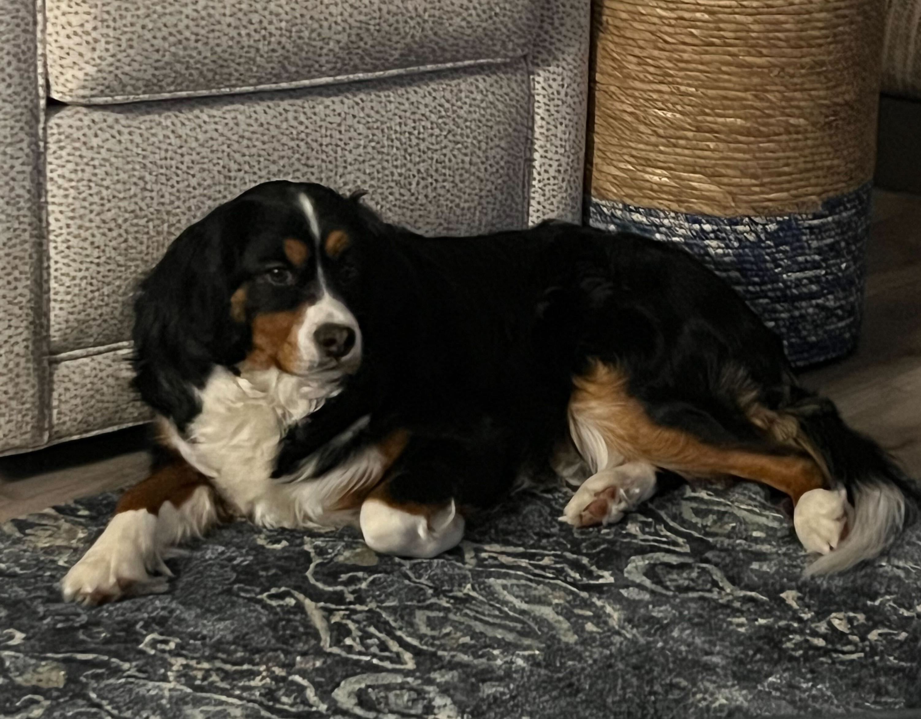 Sally is a 1.5‑year‑old Bernese Mountain Dog with a big heart and a fun‑loving personality. True to her nickname, Silly Sally, she’s playful, goofy, and loves to entertain herself with toys or play with other dogs.