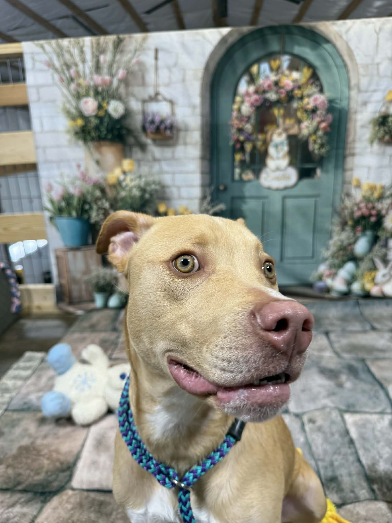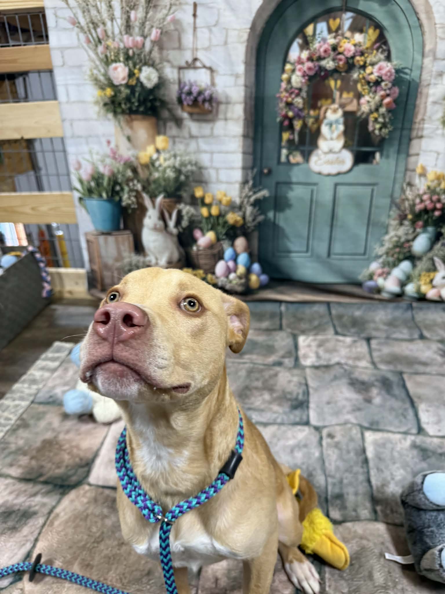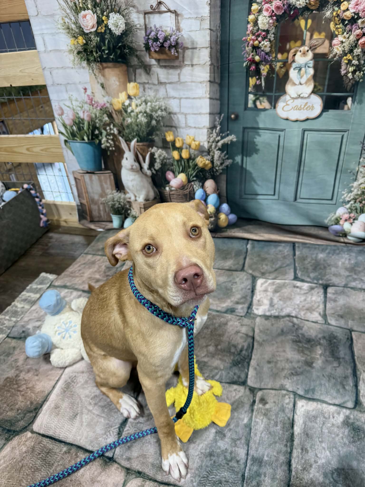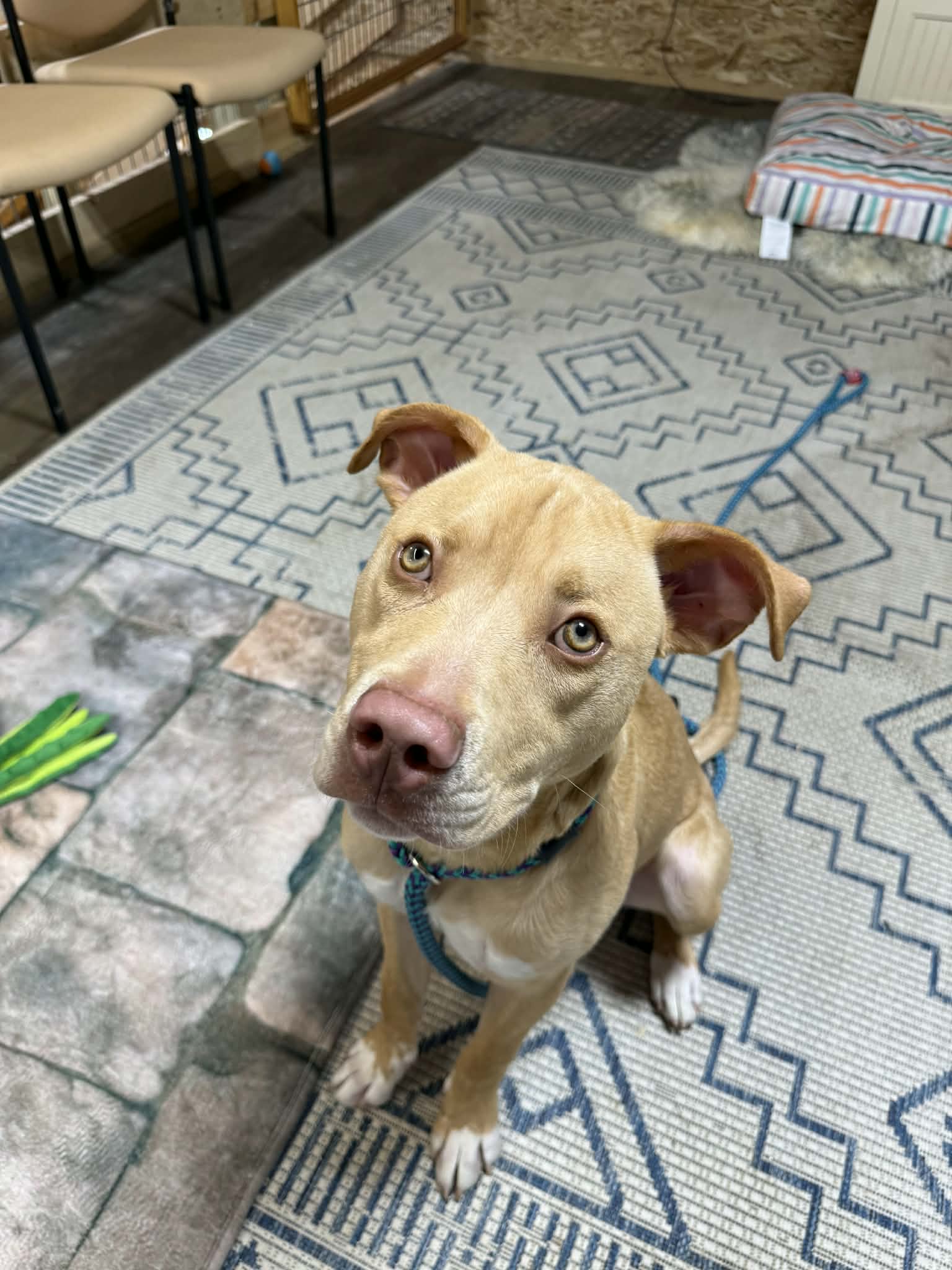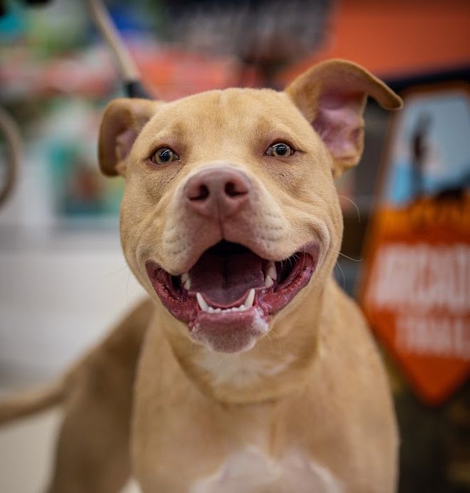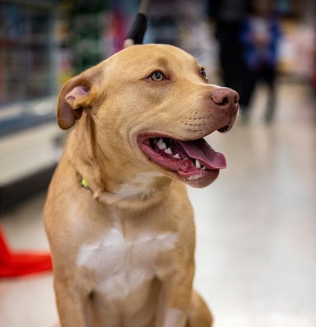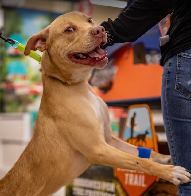 Hendrix is ready to steal all of your love, snuggles and maybe a few toys. This sweet boy is 10 months old, weighing 50 lbs and he is doing great in his foster home! He gets along well with all his doggie siblings and even enjoys playing with the cats. Hendrix loves toys and once he has a favorite he will carry it around until he finds a new favorite. Just take a look at his new video (at end of pics) and you will fall in love with his personality and sweet face!. He has gone to public events at pet stores and was not shy in inspecting the toy aisle and greeting everyone sweetly.