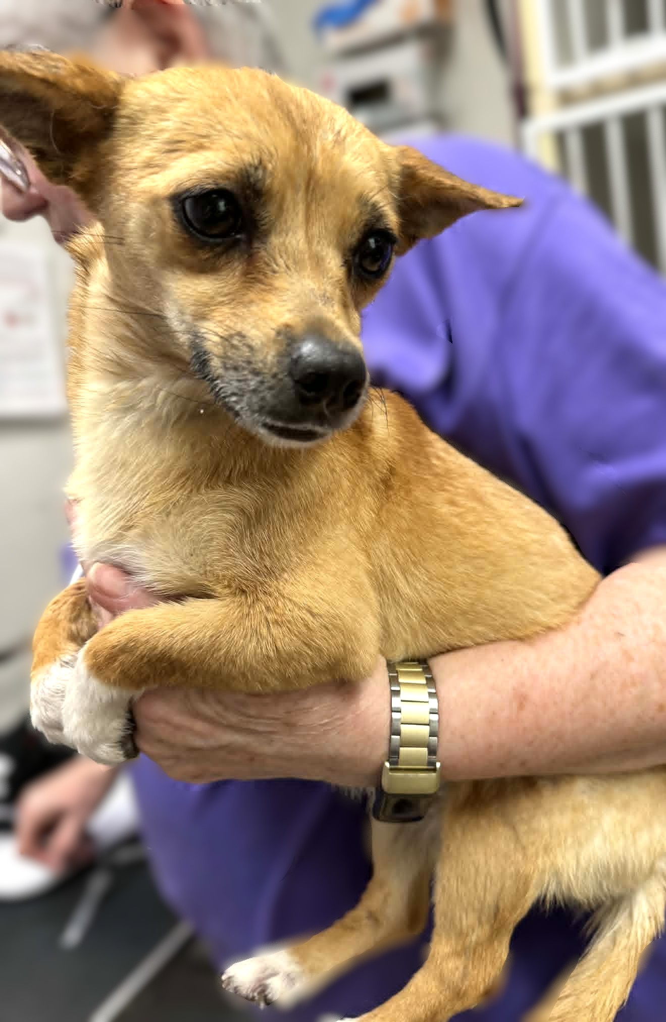 Have you ever seen the commercials where the dog seems to smile? That's Imelda. She's very timid and when you are trying to interact with you, she shows her teeth and wiggles her butt, but that is just her smile - she's sweet as can be. Imelda came to rescue with her friends Emilio and Evita from an overcrowded home. All were initially timid, but they are now interacting with our volunteers and are showing their sweet natures. Imelda will require some patience and should be considered a HIGH FLIGHT RISK - watch her when you open a door that she doesn't escape. She's really just like to tbe the queen of someone's lap. Is that you?